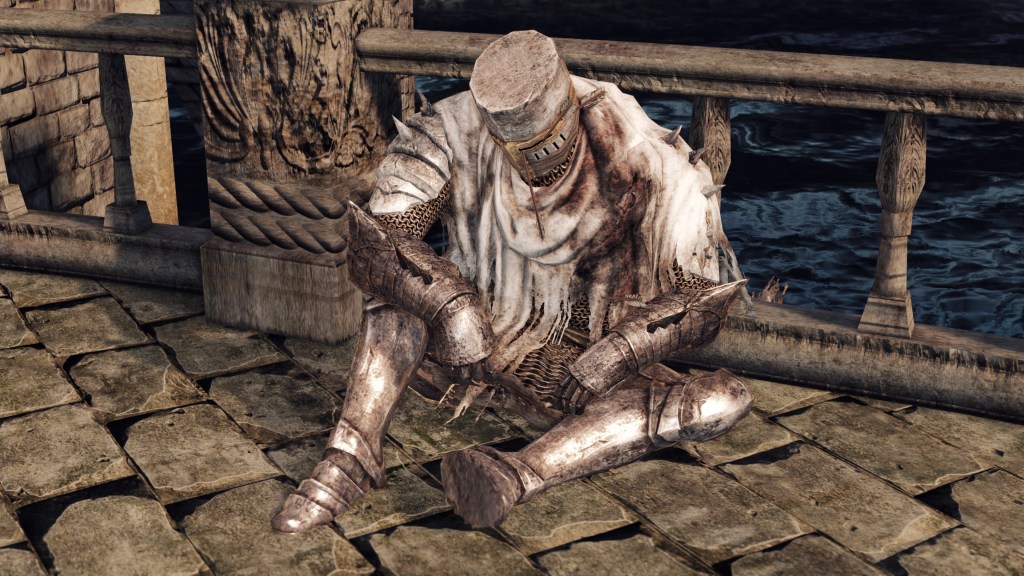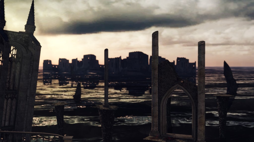 Indeed, the very nature of the sea is suspect. Dark Souls focuses on the relationship between light and Dark, but it is usually water that serves as fire’s antithesis. Flames can be doused with water, as demonstrated when using torches in waterlogged environments. Water counteracts fire, so it is fitting that the Dark be occasionally portrayed as a viscous fluid. At the same time, water can be blessed by the gods’ holy power, and it serves an important role in sustaining life whether they be flora or fauna. Add cold to water and it becomes ice; add heat, steam. And water of course rains down from the clouds. With how prevalent the substance is, where does it fit in the larger cosmology? It may be a derivative of fog, but it is just as possible that water’s mechanics fundamentally differ from our real-world understanding like is the case with lightning. Regardless, it is more prominent than ever thanks to the inclusion of the ocean, which went unmentioned and unseen in DS1 — at best, a painting of Greece hung in Anor Londo, and that water on rocky shore could easily represent just a large lakeside. This begs the question: did the sea even exist as of DS1?