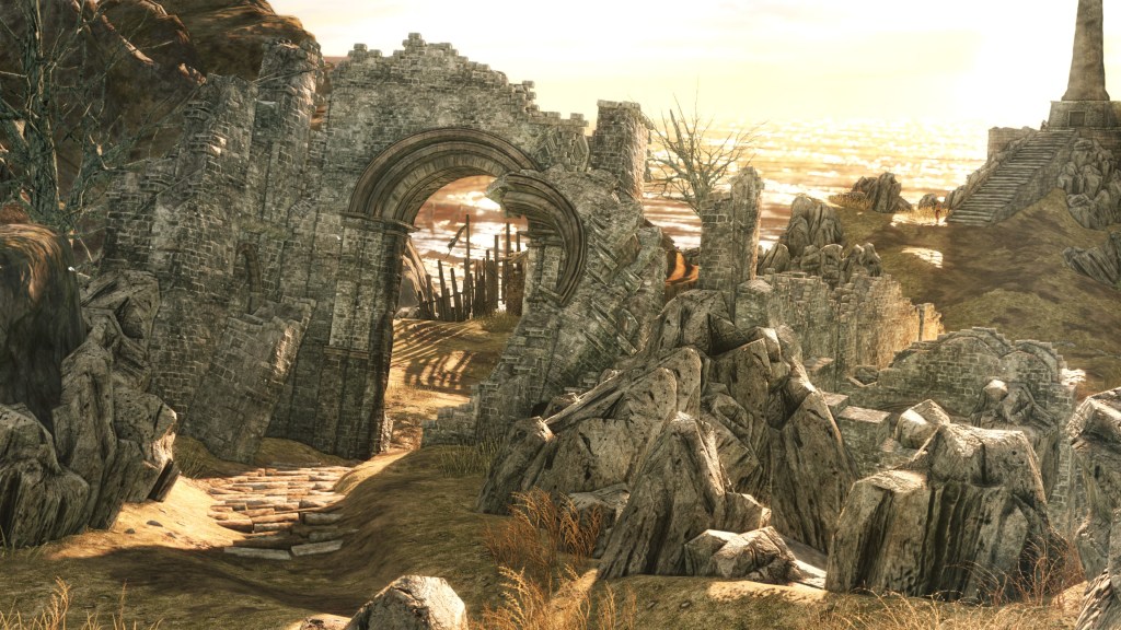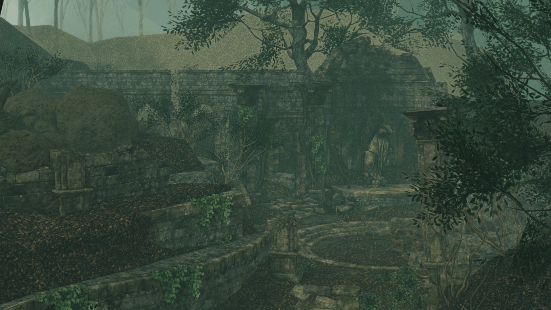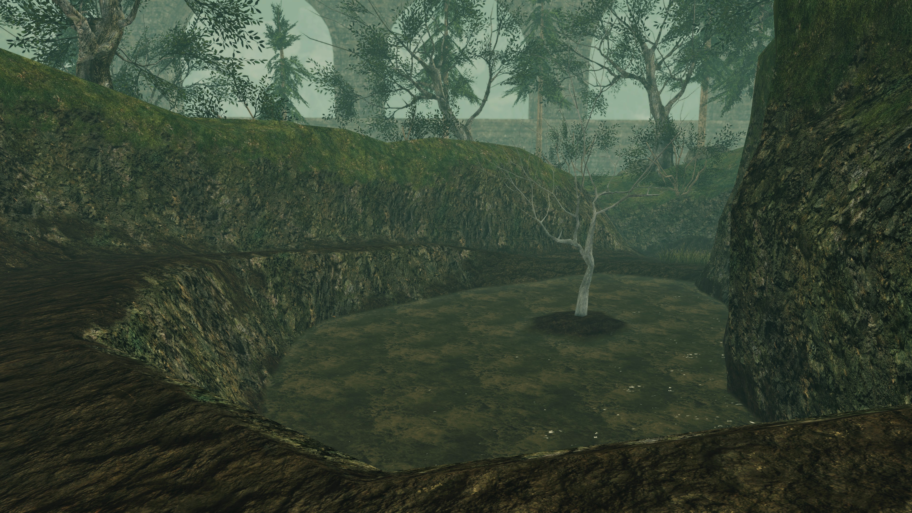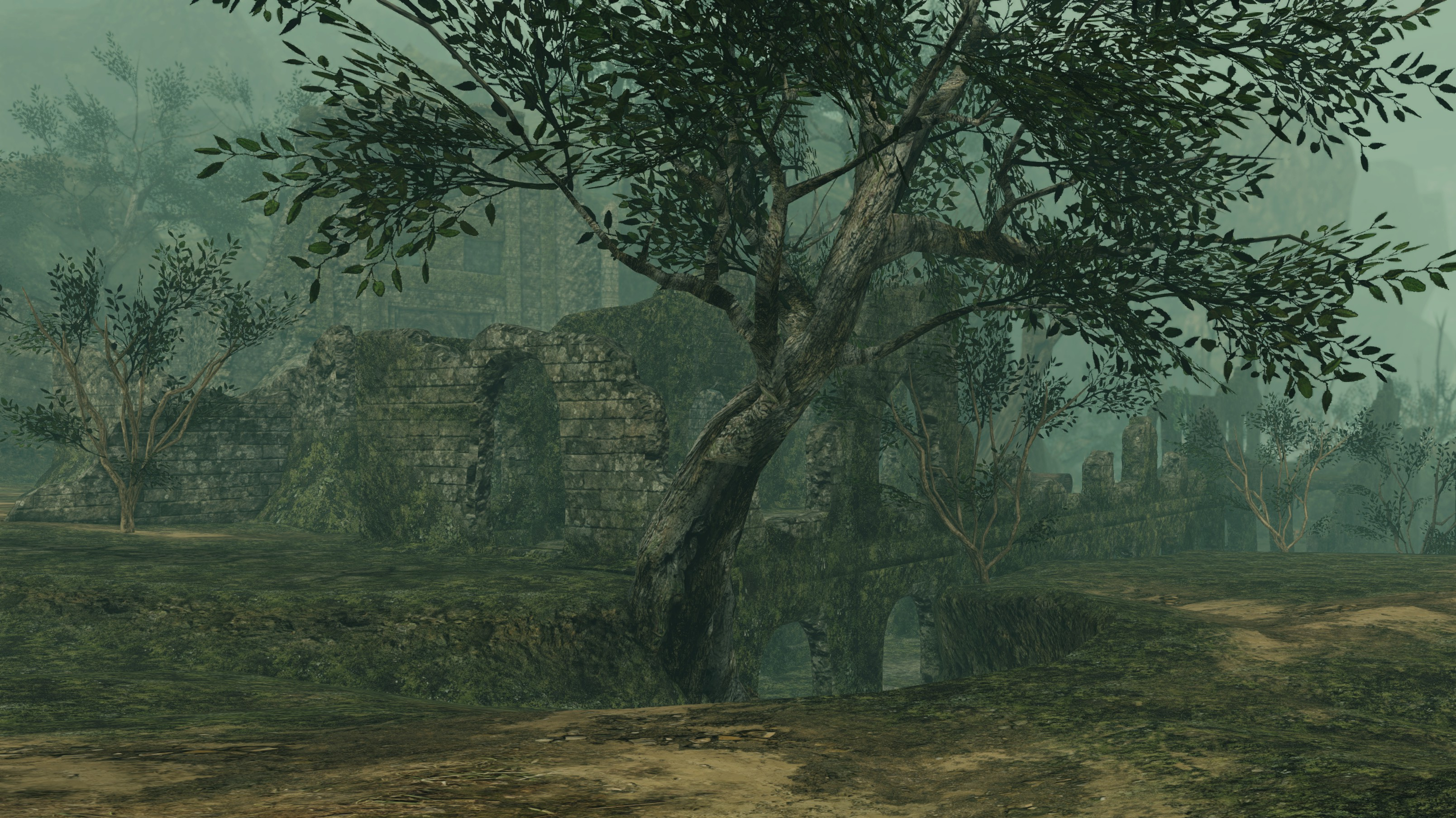 That being the case, these items and small shrine suggest that there was some religious aspect to this area before it fell to ruin — why else build a temple leading there unless it too is a holy place? The forest is largely nondescript save for a single white tree in a pond. Fans of DS1 may recall that white trees were an iconic motif of Oolacile, and cut content indicates plans to include the same orange flowers from Oolacile’s royal garden in the area. On top of that, a local chest contains the country’s Repair spell, recreated using more conventional sorcery principles based on its blue coloration. Another chest stores the Black Knight’s Halberd, wielded by one such a knight roaming the forests of Oolacile after it became Darkroot Garden in the previous game. Factored as a whole, the Shaded Woods is at least part of that Black Forest. It too shifted to this part of the world, where it was then resettled by Heide. The country’s reason likely had to do with Oolaciles deep ties to Anor Londo. The Heidens’ aimed to preserve their religious history and culture, after all, though to little effect.