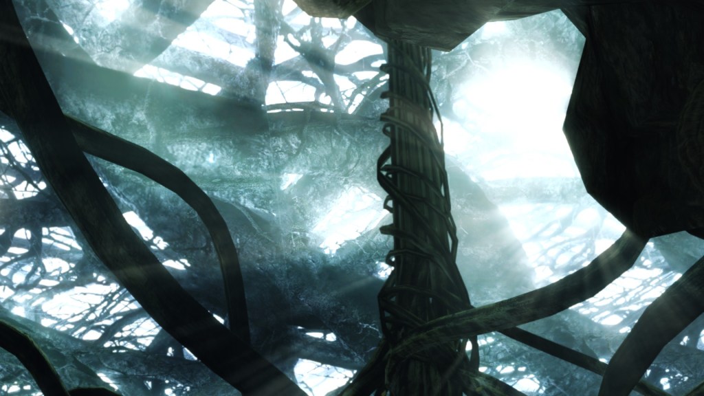 In order to reach the area, we take a long lift deep underground from Drangleic Castle. From there, we find the ruins within a massive cavern beneath roots branching across the ceiling in an intricate web. Such enormous plant life brings to mind the archtrees, which were also found underground holding up the Upper World with their entwined matter of branches in DS1. Add in the water pooling within the cavern, and it is possible that the area is a remnant of Ash Lake. Reinforcing the implication, we can use Chameleon to transform into one of the mushroom men — who thrived at the base of the archtrees in that area — so that we might “blend into” the Shrine’s surroundings. Another local chest contains an Elizebeth’s Mushroom, derived from the same fungi in DS1. If the mushroom was harvested down there, then the mushroom men must also still exist somewhere we don’t explore; the fact that Agdayne sells a bunch more in the neighboring Undead Crypt only furthers that notion. The Shrine is even home to basilisks, who were originally native to Ash Lake. It all ties back to that one area.