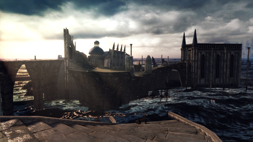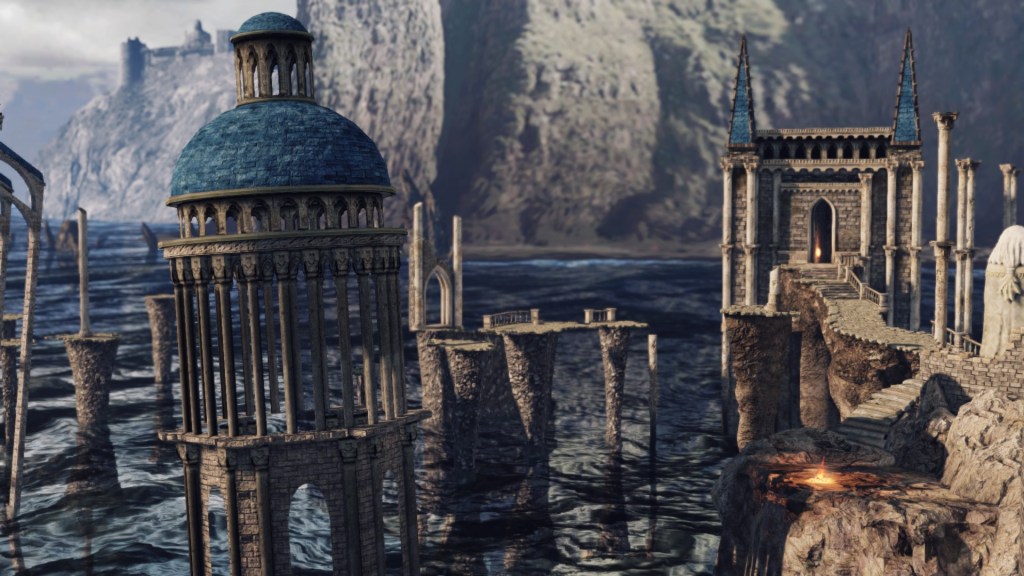If there was a sudden rise in sea level that caused Heide’s destruction, where did all of this water come from and why? There are two scenarios. Either it was just a natural disaster, or someone induced the cataclysm through magic. Whichever is the case, there is no limiting factor for how much water was added to the environment. It is therefore possible that the ocean in its entirety didn’t exist until the water flooded the world at the time of Heide’s destruction, in which case the game’s setting is a post-apocalypse. So who or what would be capable of generating that sheer amount of water? If this flooding was just a product of some natural phenomenon, then the most relevant phenomenon is the First Flame’s imminent waning as the Age of Dark approaches. Perhaps the progression of fire’s fading resulted in large swathes of the world being submerged? The Dark does have qualities akin to water as mentioned earlier. Or perhaps it is the prolonging of this perverse twilight era via firelinking that is to blame? Either way, water’s natural opposition to flame fits this explanation for the calamity.
