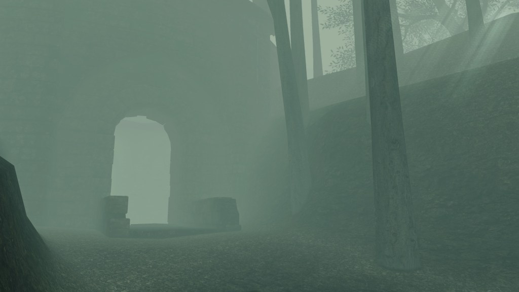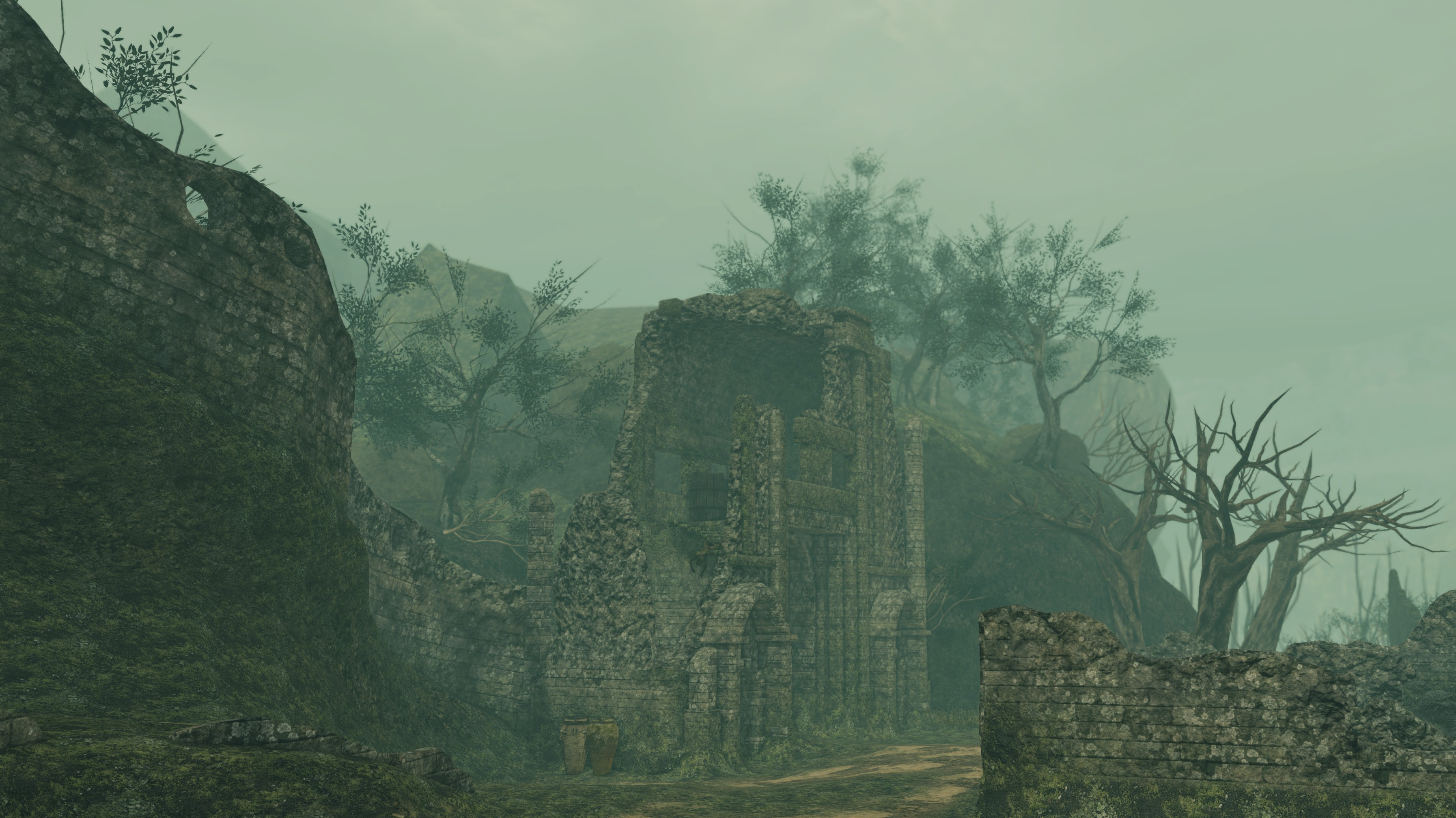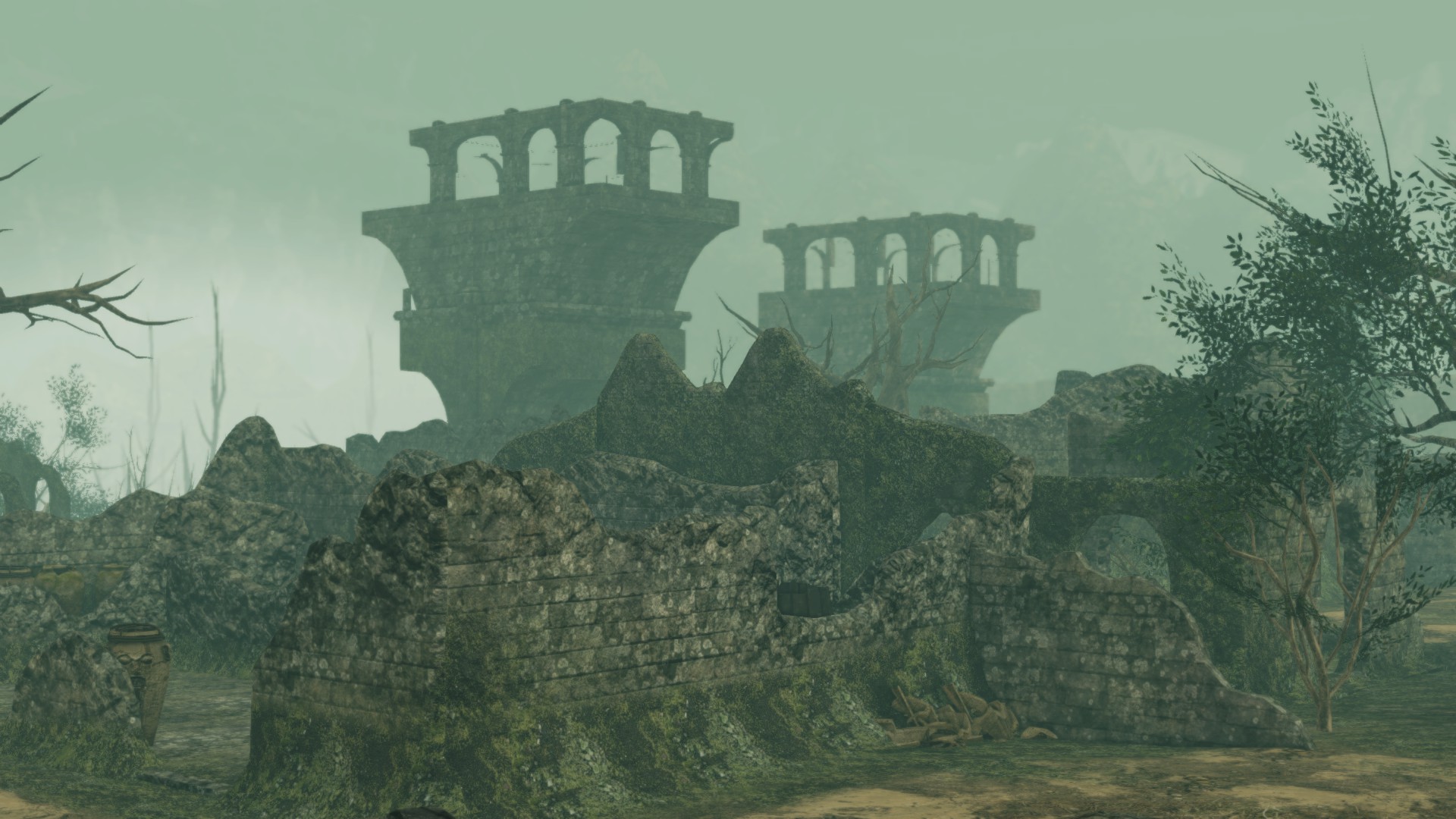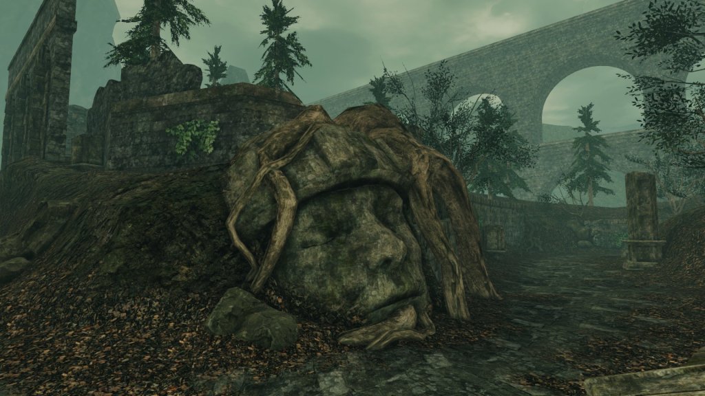 If the legendary knight of Gwyn’s corrupted body was exhumed, it probably wasn’t while Heide was erecting his statue. Even riddled with inaccuracies, the country’s efforts still emphasized preservation. Among a sea of green, one section of Shaded Woods presents us with a forest of fog. The defoliated grey trees seeming to attract if not generate this mist permeating their vicinity, making it difficult to navigate. And yet, the ruins appear to deliberately skirt around that specific zone. Clearly, Heide wasn’t willing to cut down the trees for urban development, possibly because the unique feature was originally part of Lordran. Recall in DS1 that a white cat lurking in Darkroot Garden, Alvina, manipulated fog. Despite hints to the ancient feline’s true nature, it was never clarified where exactly she picked up her mastery of fog during her years in the Black Forest. But if there was a small wood of fog trees elsewhere in that same forest, then the cat had plenty of opportunity to learn. At the same time, it provided Heide another landmark of the Old World to safeguard even if not of obvious religious significance.