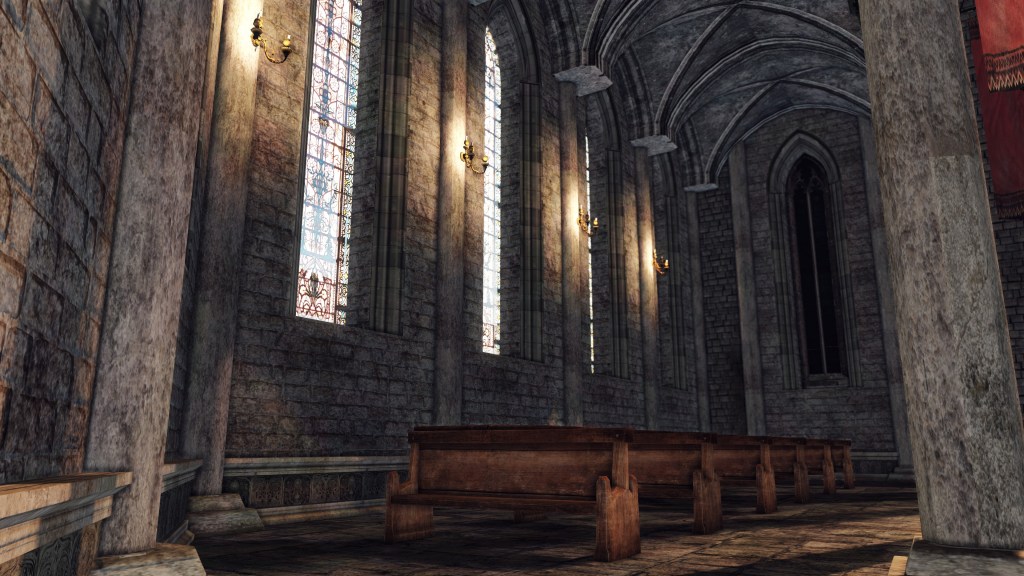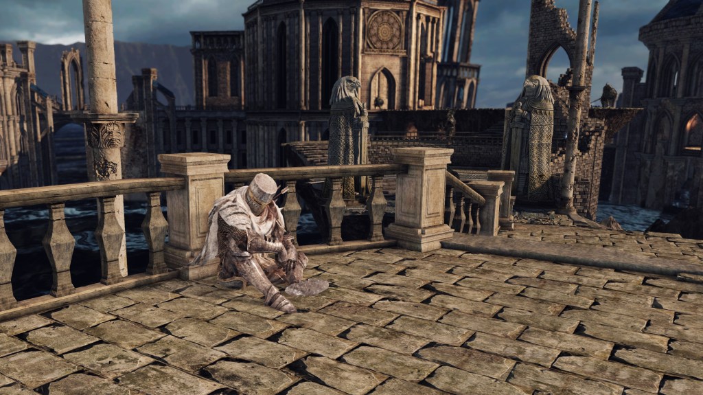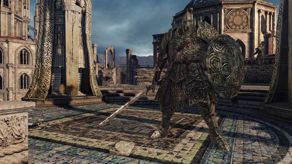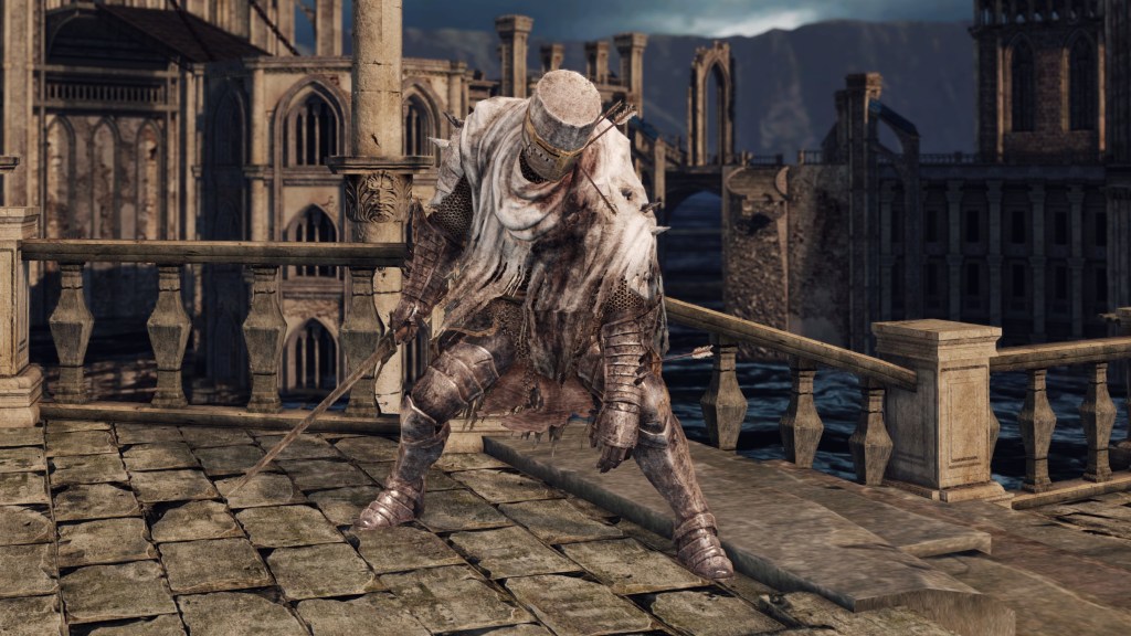 This cataclysmic event is one of the only two things known about the country, so someone lived to pass down knowledge of these events to later generations — it is just that few made it out of this period with their sanity intact. For a civilization spanning so much of the continent, the coinciding complexity to maintain everything became its downfall. And while we see much of its legacy has survived, dead — and Hollow — men tell no tales. Back in the main city, the Heide Knights loiter around the ruins, largely uninterested in our intrusion until the boss in the Tower of Flame has been slain. The two exceptions block our way to the Cathedral of Blue, still standing tall amongst the destruction. Even when all hope is lost, the knights’ faith moves them to act, as does their pride following our victory in the arena. The arrows they have withstood from raiders or former countrymen have yet to bring them down for the count, and their crestfallen spirits may still be rekindled. Even when an entire civilization is lost to time, its people keep the embers alive.