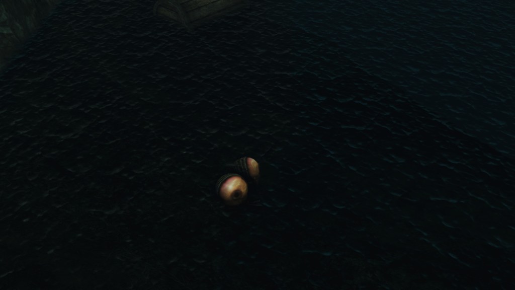 Because we are unable to swim, it is difficult to determine the viability of undersea life. The Sea Bow’s description acknowledges the existence of sea monsters, but these creatures may not necessarily refer to demons of the deep; the multi-headed lake beast of DS1 surfed the waves with only the occasional brief dive beneath the surface. The developers did plan to include “yellow jellyfish pills” (黄海月の丸薬) at one point, which might imply a complex ecosystem existing under the sea — though FromSoftware previously had swamp jellyfish living in shallow waters in Demon’s Souls. There would have also been a giant hermit crab boss nesting in Lost Bastille by the ocean. However, these were ultimately cut, leaving us no hint to potential marine life in the final game. DS1 had likewise insinuated that water possesses anti-time properties, which would make their proliferation all the less probable. And if life hasn’t evolved deep below water, then there is no reason to believe that the sea is anywhere near as old as land biomes. Could such a large body of water in the Upper World be only a relatively recent phenomenon then?