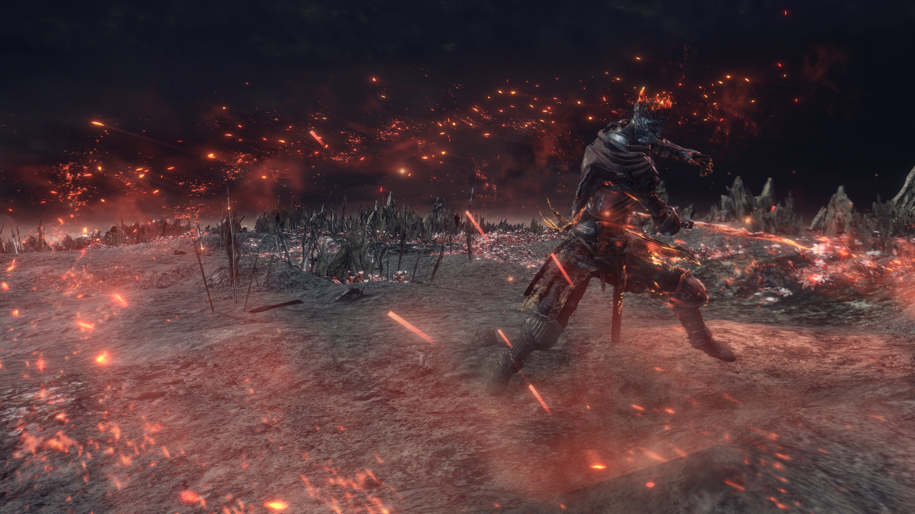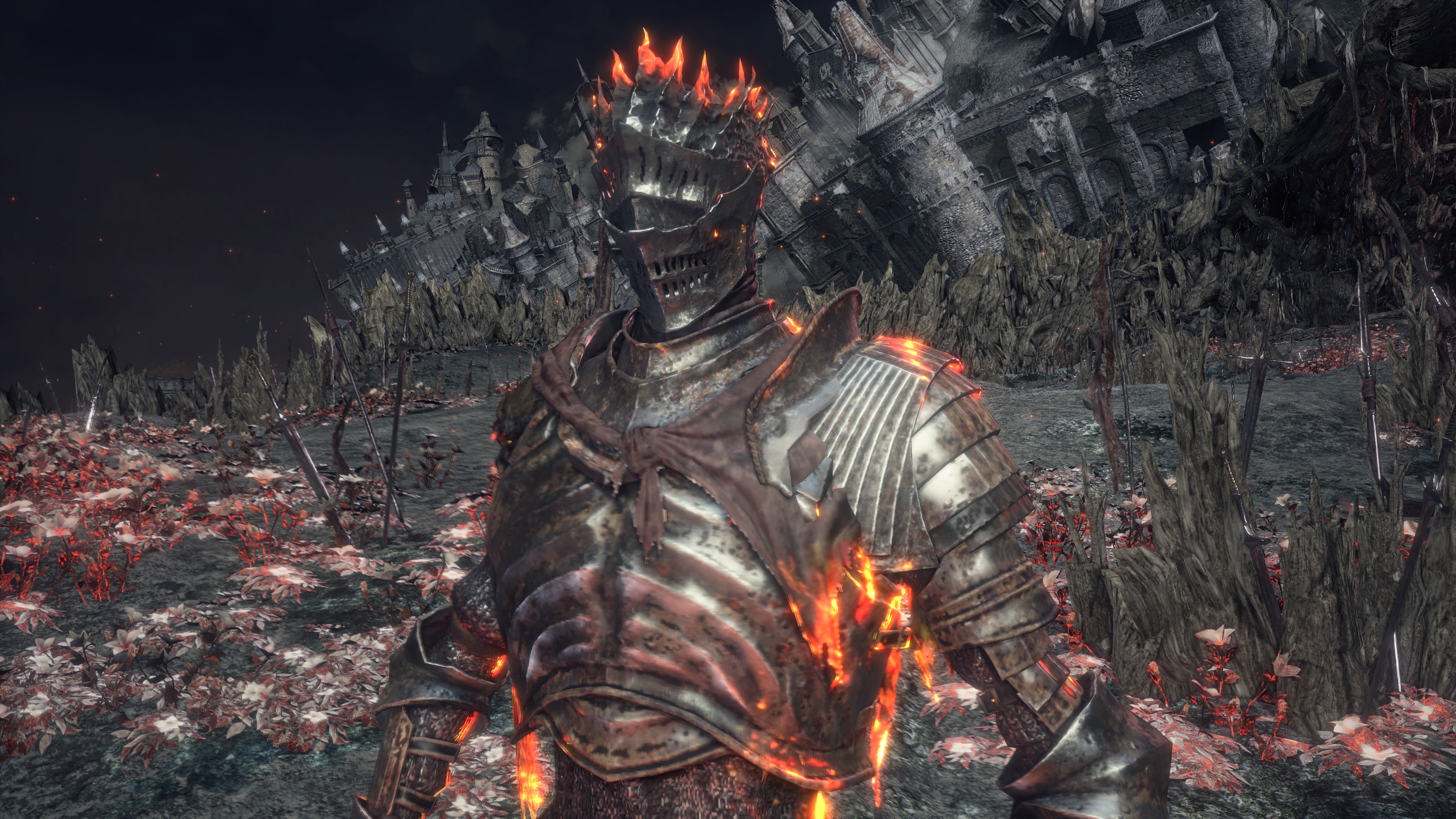 Lothric’s haste to keep up with the high turnover is understandable. If we elect to link the fire, the flame we ultimately inherit is pathetic compared to the roaring blaze that engulfed the Chosen Undead in DS1. Although the Lords of Cinder prove that the First Flame still possesses tremendous power, its strength has clearly waned in spite of the ever-growing soul fueling it; even flowers now flourish around the bonfire, infused with glowing embers wafting in the air as the only consequence. This can be attributed, at least in part, to splitting fragments of the First Flame amongst the various Lords, but it nonetheless shows that inheriting the throne is no longer as bombastic an affair as it once was — for either the new king or the world order that he or she preserved. In fact, the stagnation resulting from this unnatural order likely correlates to the current inadequacy of the Flame.