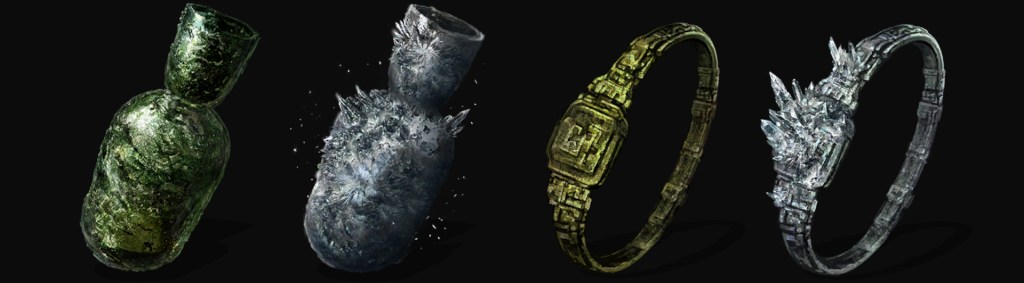The dull green glass comprising Estus Flasks have been occasionally mixed with ash to fashion a new kind of bottle. Naturally, the Estus collected in this dull grey vessel goes cold, turning from yellow to blue. But rather than nullify the effects of a bonfire’s liquid heat, this Ashen Estus Flask only changes its properties. Instead of restoring HP, cold Estus restores FP: focus points which Andre’s Japanese dialogue clarifies to reflect our willpower. As a matter of fact, the stat governing FP, attunement, has actually changed from past games; while the number of memory slots for spells were originally decided by “memorization power”, (記憶力) they are now determined by “concentration power”. (集中力) Will is the defining factor for life, and our ability to focus that will toward a singular goal affects how many complex arts we can remember and perform at a given time. Nevertheless, the fact that ash turns a bonfire’s physical healing powers into mental restoration implies that it is more metaphysical in nature.