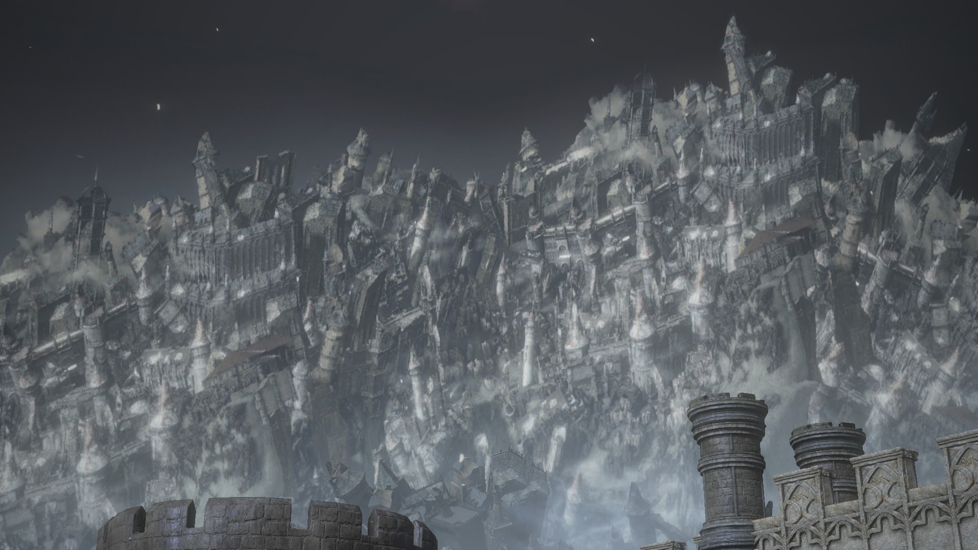 Time and space have always been inexorably linked, so this escalation in spatial changes is the logical outcome of fire’s perpetual waning. The presence of the First Flame was the implied cause behind such stagnation in Dark Souls (DS1) and Dark Souls II, (DS2) so it would naturally be responsible for this phenomenon as well. The source of all fire has apparently moved to a new part of the world, only this time drawing other lands outside the spacetime bubble into it. This likewise confirms the implications behind seemingly random parts of Lordran being found all around Drangleic in DS2. The prequel was already exhibiting early signs of the stagnant flow of time spreading to space, and its continuation into the present era has only exacerbated it. Like the parts of Lordran in Drangleic, what lands do drift seems to be random, as is where they will end up and when they will appear. But the eventual outcome is that everything in the world will be dragged into the bubble, and we see this result play out in-game.