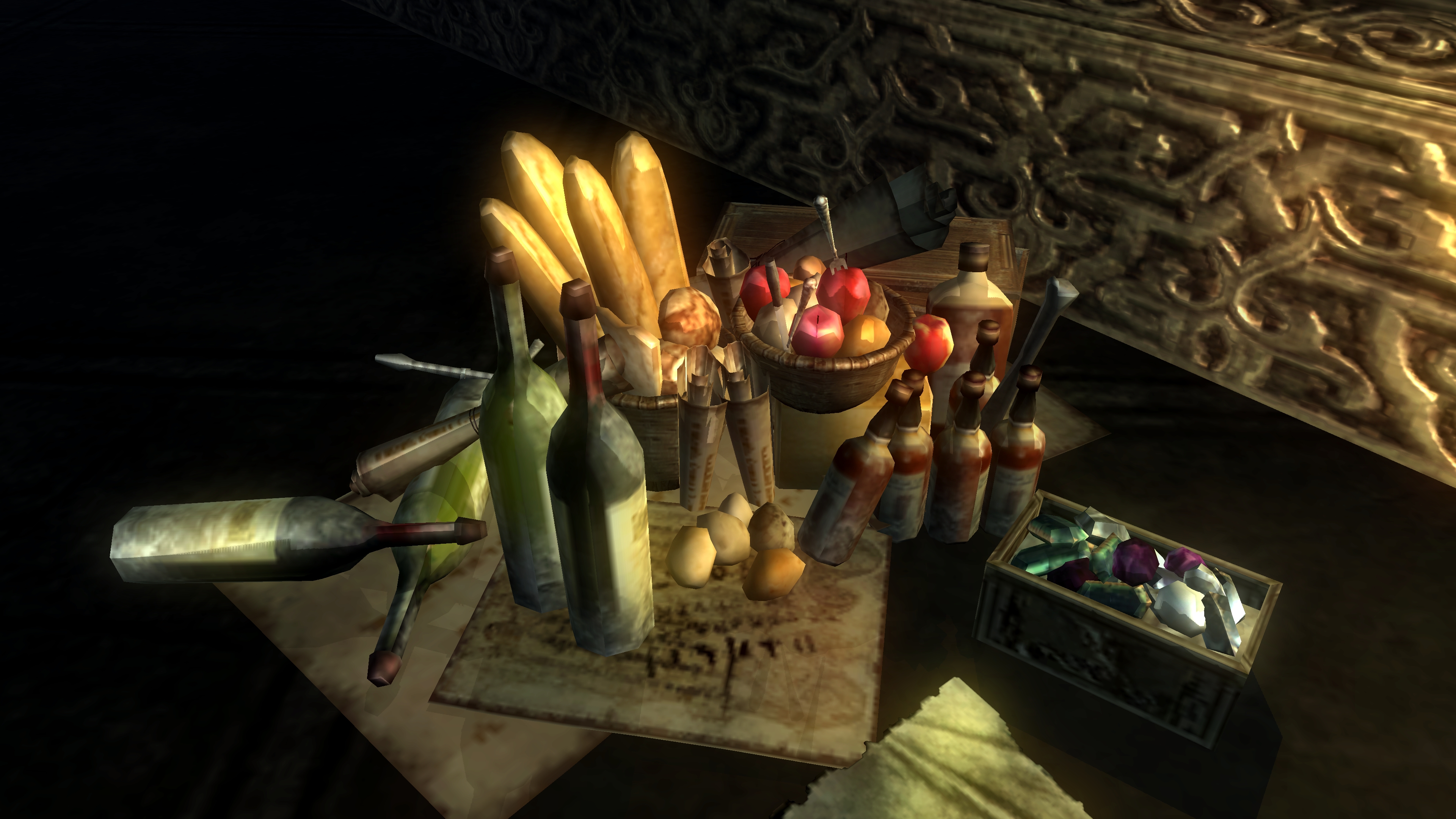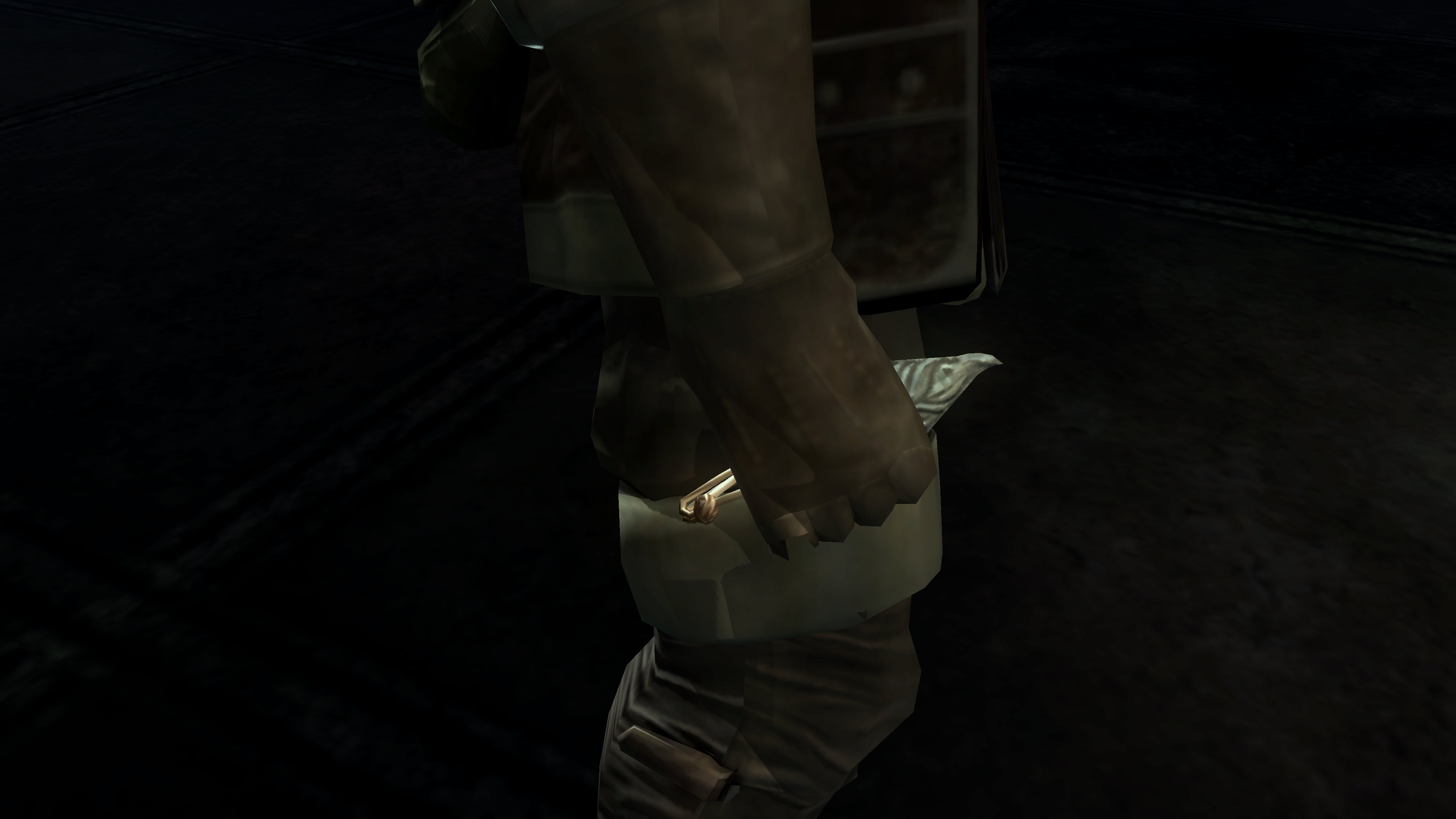 Urbain and the congregant assisting him eventually went to the Shrine of Storms, presumably to exorcise the pagan land of dead. But there they encountered Patches, who tricked the pair and kicked Urbain into a dark pit, where he would remain trapped and eventually starve to death. Rather than confront the trickster and help free the priest, the adherent fled to the Nexus, but his cowardice doesn’t absolve Urbain of all blame. Patches attempts the same trick with us, claiming that the pit is filled with treasure which he needs help retrieving, only for our avaricious curiosity to land us upon a skeletal pile of many more presumably prior victims. If this setup is Patches’ routine, then Urbain fell victim to the same lies. And if so, then why? Shouldn’t a man of the cloth be above such petty things as worldly riches? Apparently not. When recounting Urbain’s cries from within the pit, Blige notes that something smells fishy in Japanese dialogue, namagusai (生臭) doubling to mean a worldly and thereby corrupt priest.