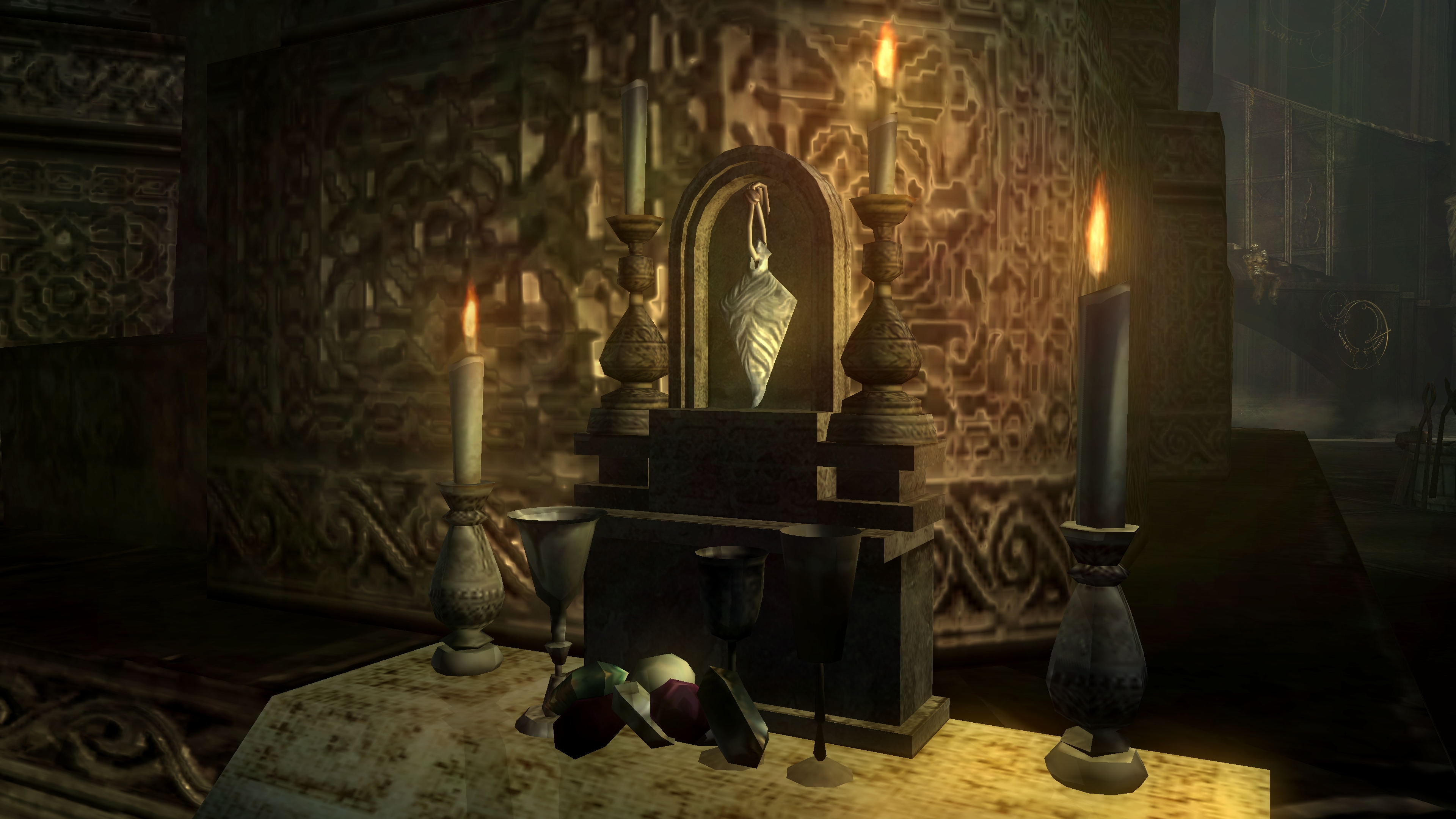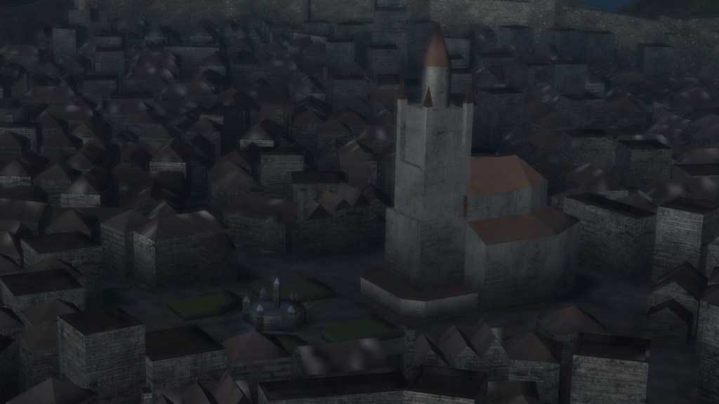 The first temple was built in the now defunct land of Mird, which had most likely been situated somewhere west of Boletaria. Both Astraea and Selen come from the West, so the temple already has a major presence in that area, and the cinematic map confirms an unknown expanse of land in that direction. Based on the description for Selen’s equipment, highlands make up the region’s general topography, and nowhere else do we see nearly as concerted a temple presence. Oceans lie to the east and south, and no humans live to the North. Therefore, the concentration of the faith in these western highlands suggests that they are where the temple originated and first spread before extending to the rest of the continent. And at the heart of this spread was Mird.