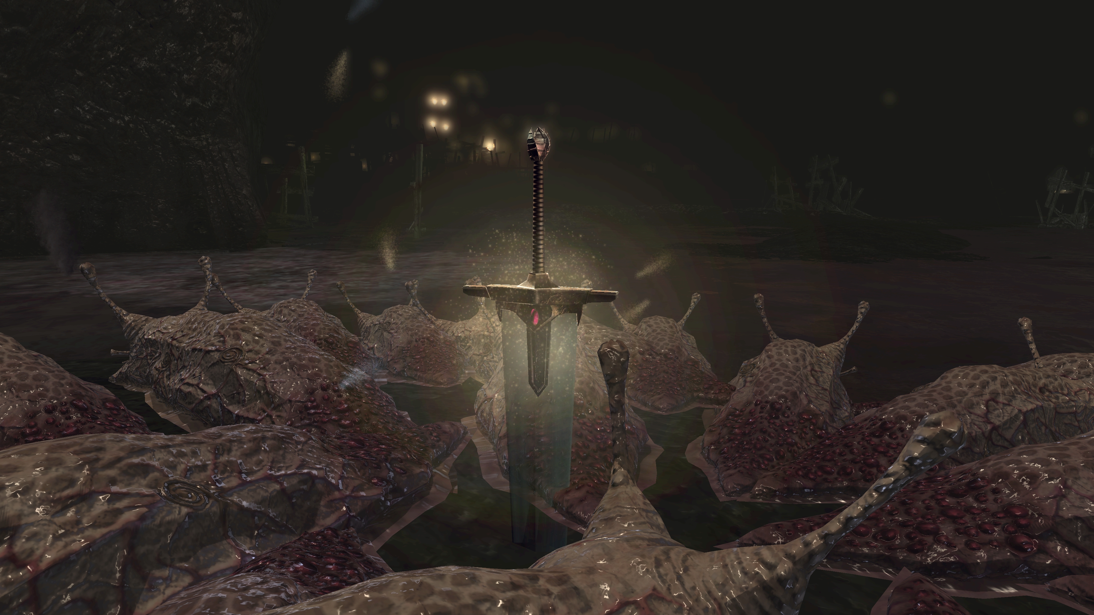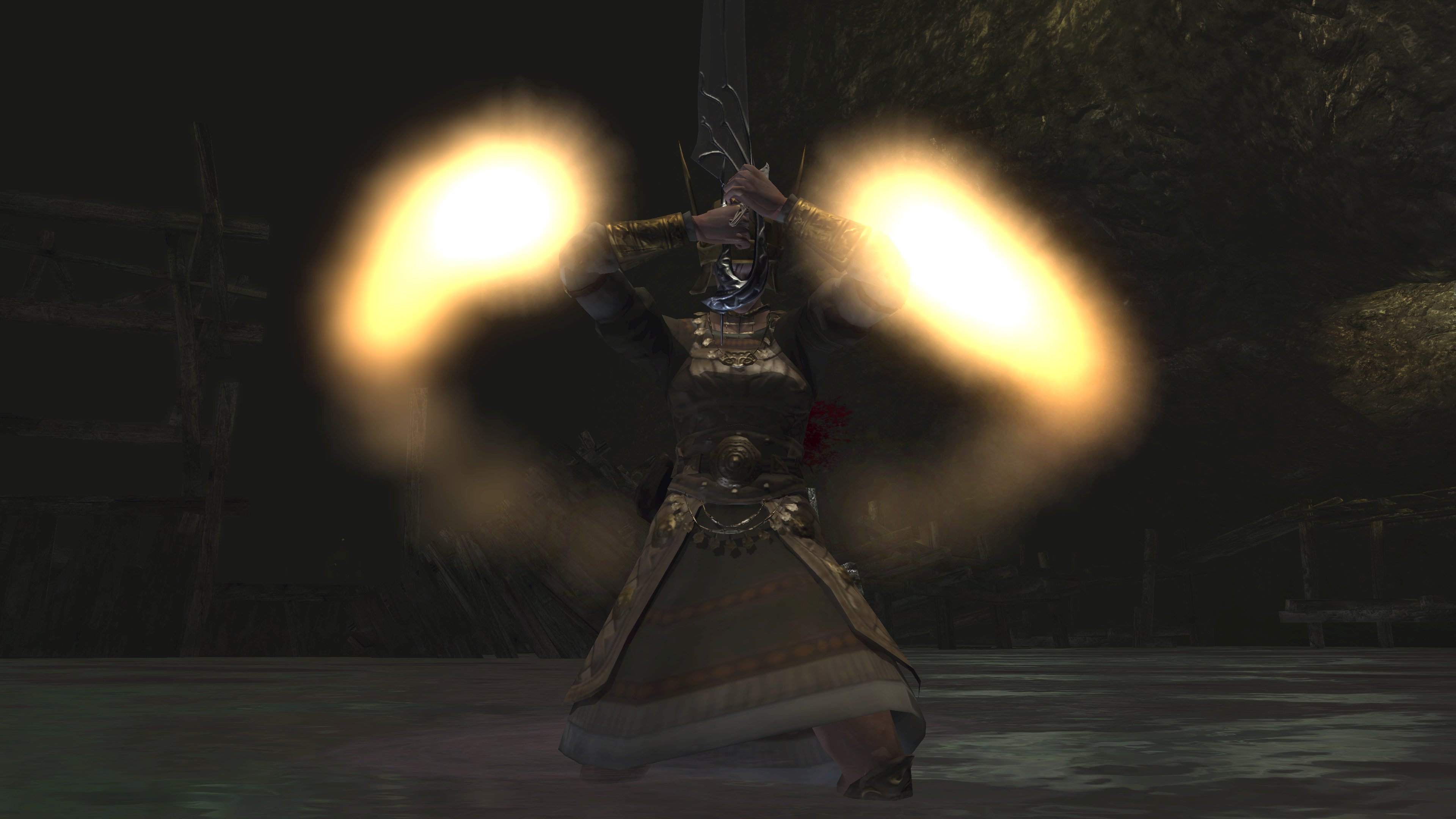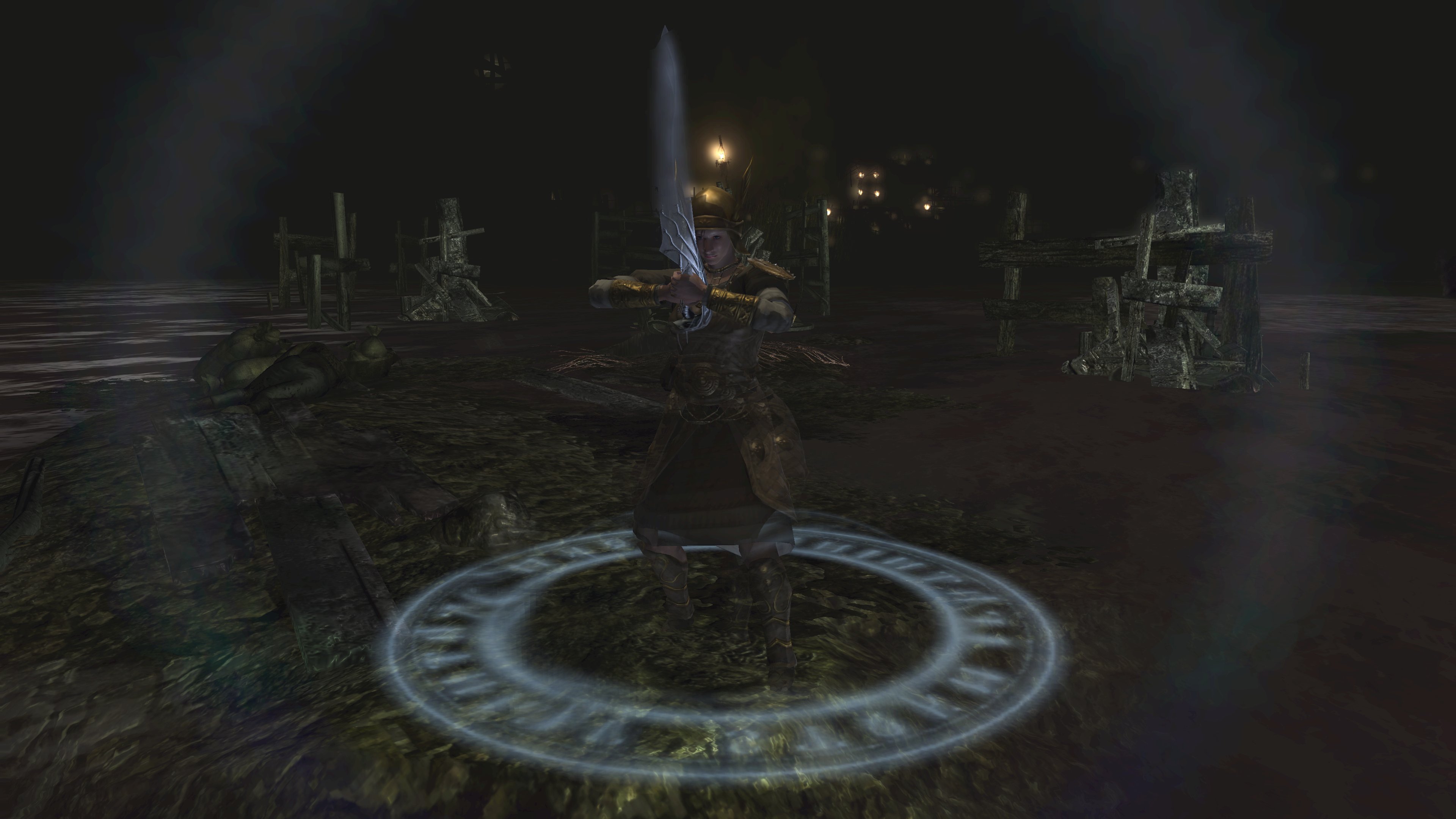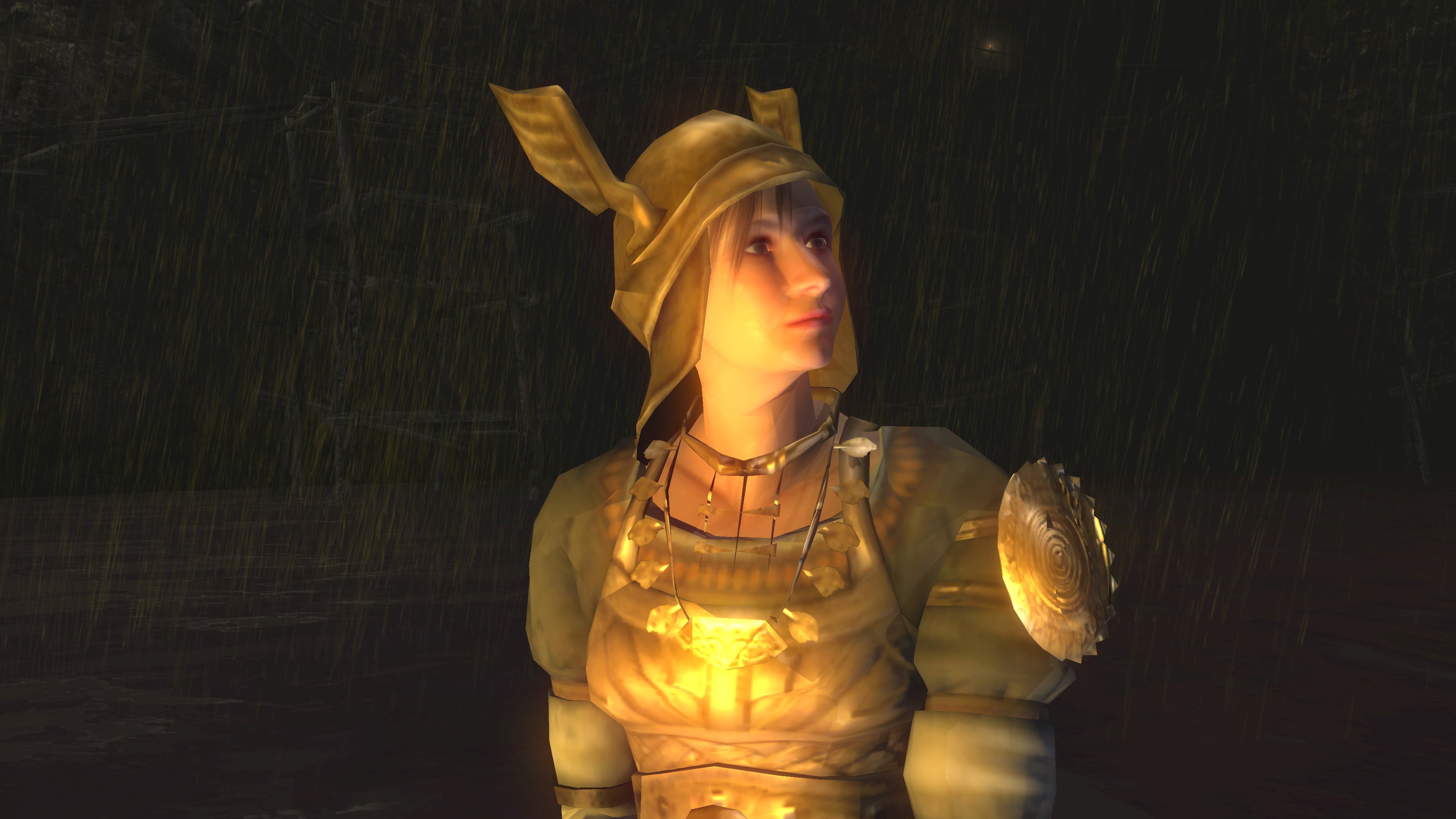 Unlike the Vinland siblings, Vito and Risaia are associated with their weapons instead of family names, both Istarelle and the Large Sword of Moonlight — or “Moonlight Greatsword” (月明かりの大剣) to be consistent with later FromSoftware titles — considered “revelations” from God. In other words, these weapons are their property, known for what they have accomplished in battle while wielding them. One might think that the two knights had no background to rely upon, rising through the ranks through sheer faith and the providence. However, we can loot the dull gold set from a slug on an island in the Valley of Defilement’s swamp, adjacent to many more slugs clamoring for the Moonlight Greatsword hanging from the local village’s infrastructure. Based on the proximity, the armor most likely belongs to Vito, which would imply that the Moonlight Knight is both female and nobility like Selen. And if Vito is noblewoman, then the probability is that Risaia is one, too. Perhaps they did obtain their weapons through their own merit or providence, but lineage almost certainly played a role.