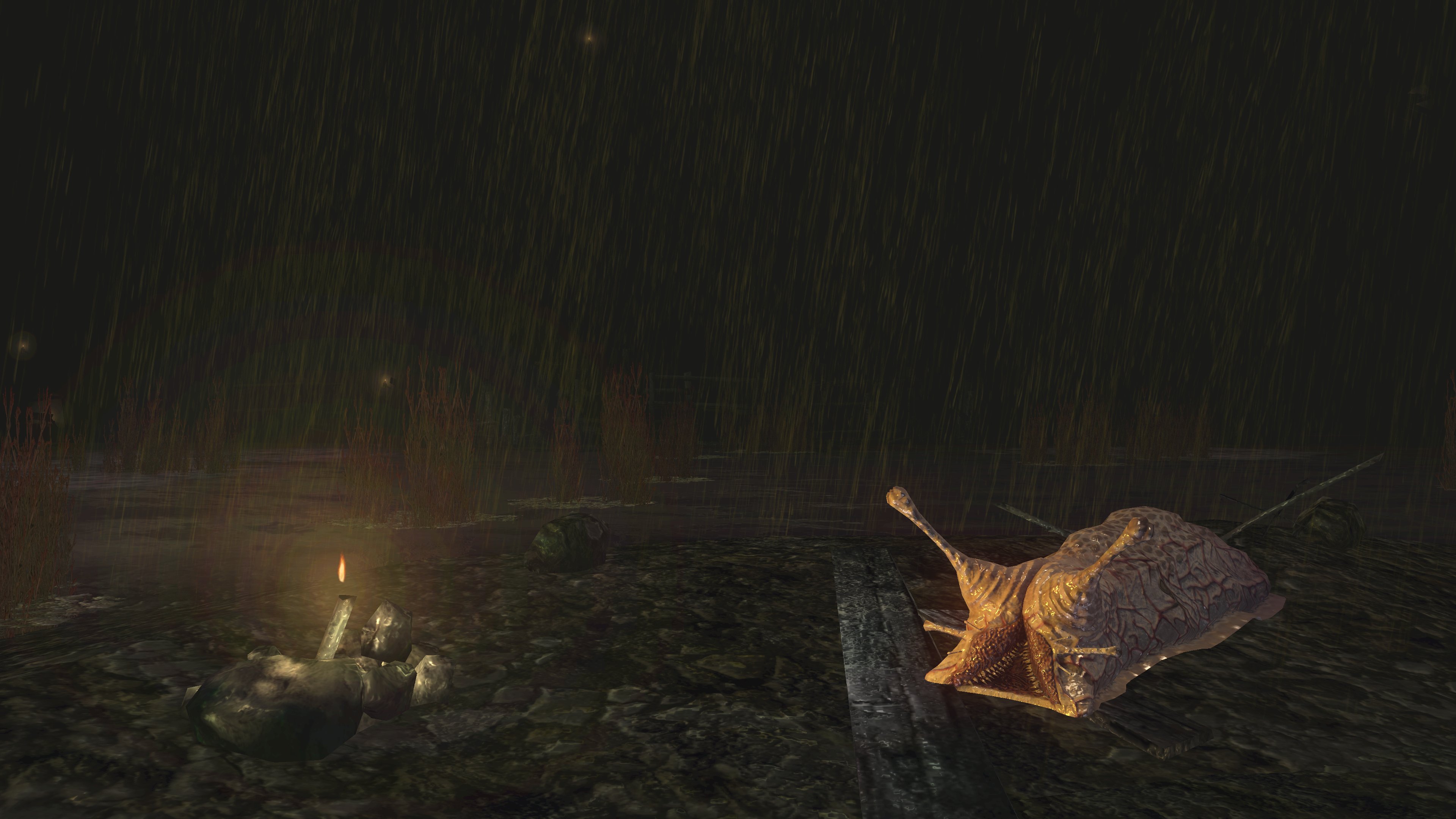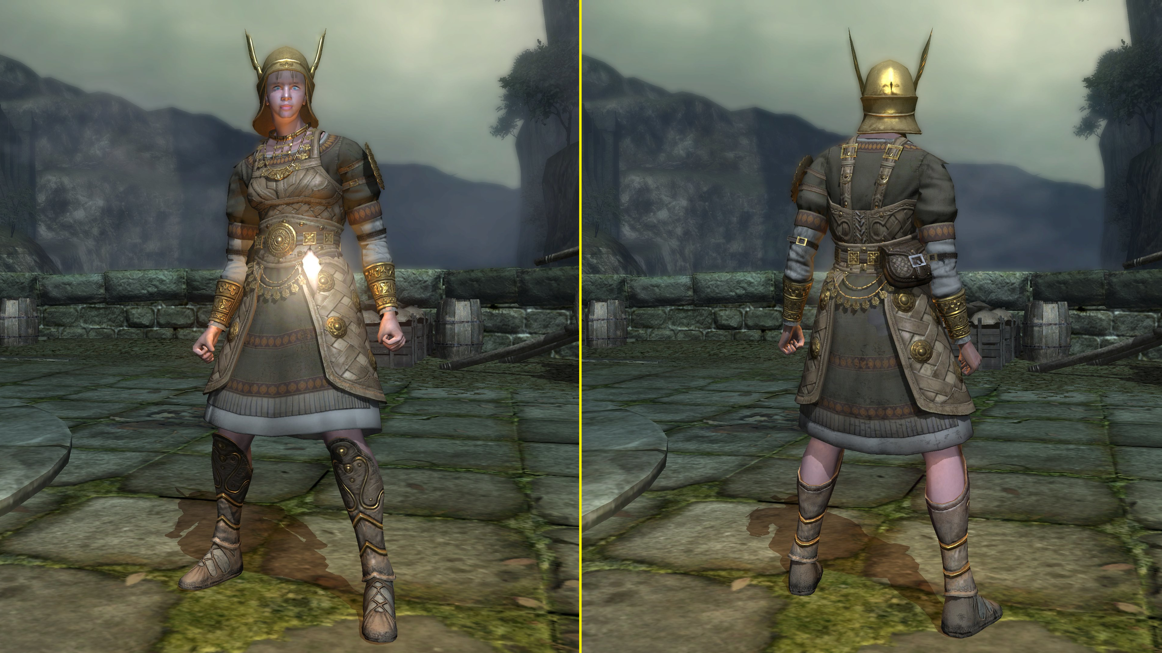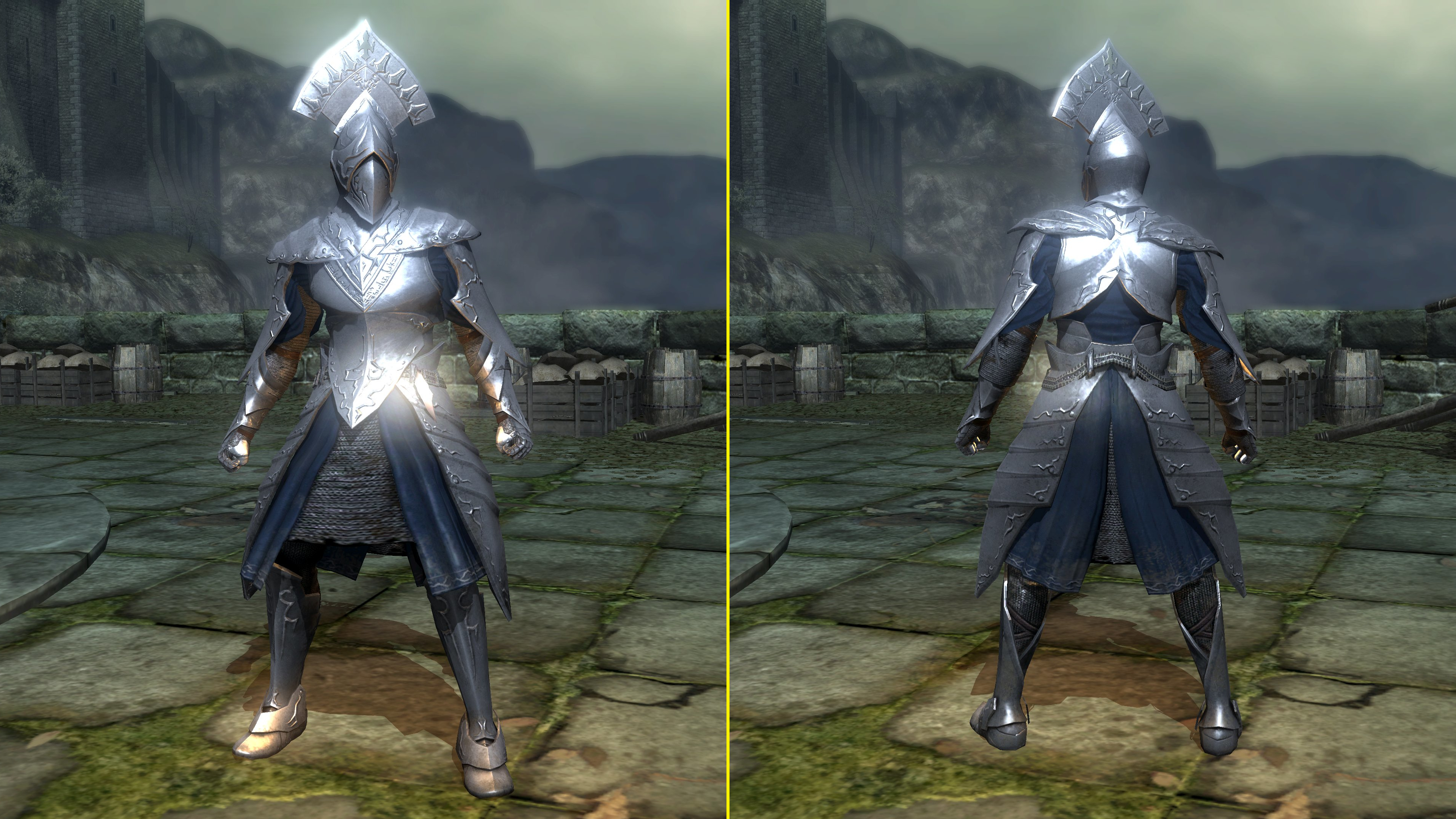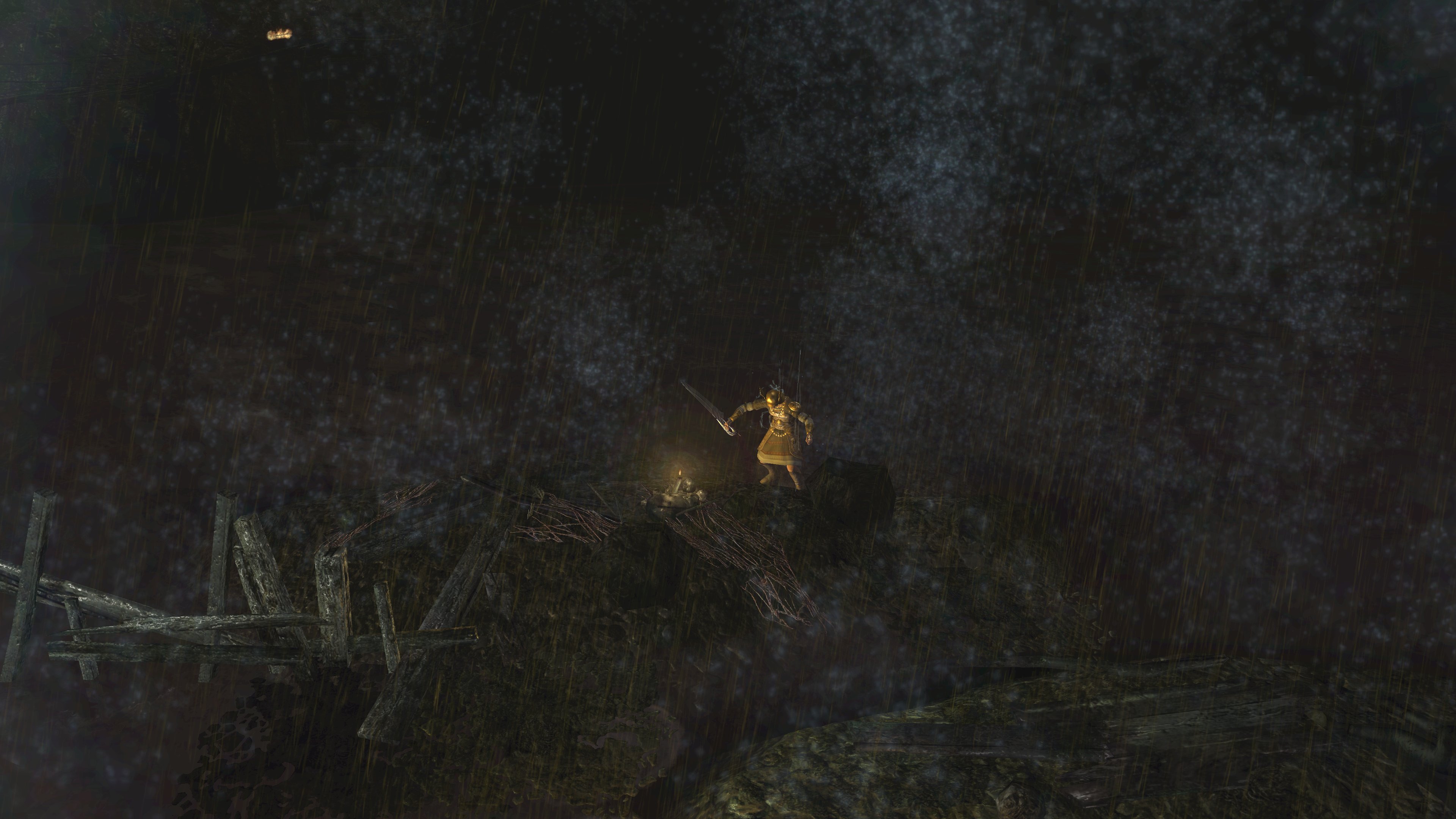 Unlike the Vinland siblings, Vito and Risaia are associated with their weapons instead of family names, both Istarelle and the Large Sword of Moonlight — or “Moonlight Greatsword” (月明かりの大剣) to be consistent with later FromSoftware titles — considered “revelations” from God. In other words, these weapons are their property, known for what they have accomplished in battle while wielding them. One might think that the two knights had no background to rely upon, rising through the ranks through sheer faith and the providence. However, we can loot the dull gold set from a slug on an island in the Valley of Defilement’s swamp, adjacent to many more slugs clamoring for the Moonlight Greatsword hanging from the local village’s infrastructure. Based on the proximity, the armor most likely belongs to Vito, which would imply that the Moonlight Knight is both female and nobility like Selen. And if Vito is noblewoman, then the probability is that Risaia is one, too. Perhaps they did obtain their weapons through their own merit or providence, but lineage almost certainly played a role.