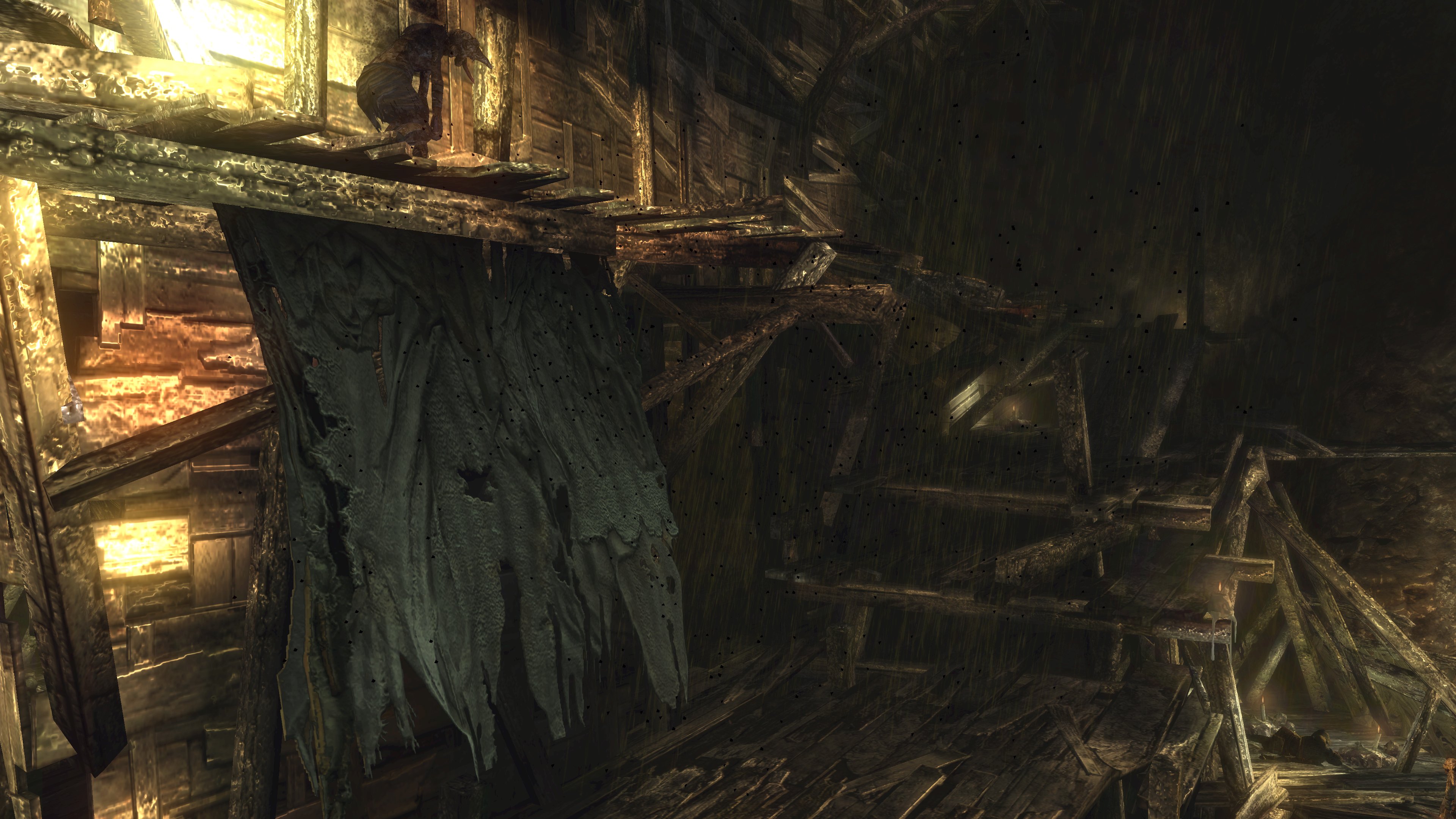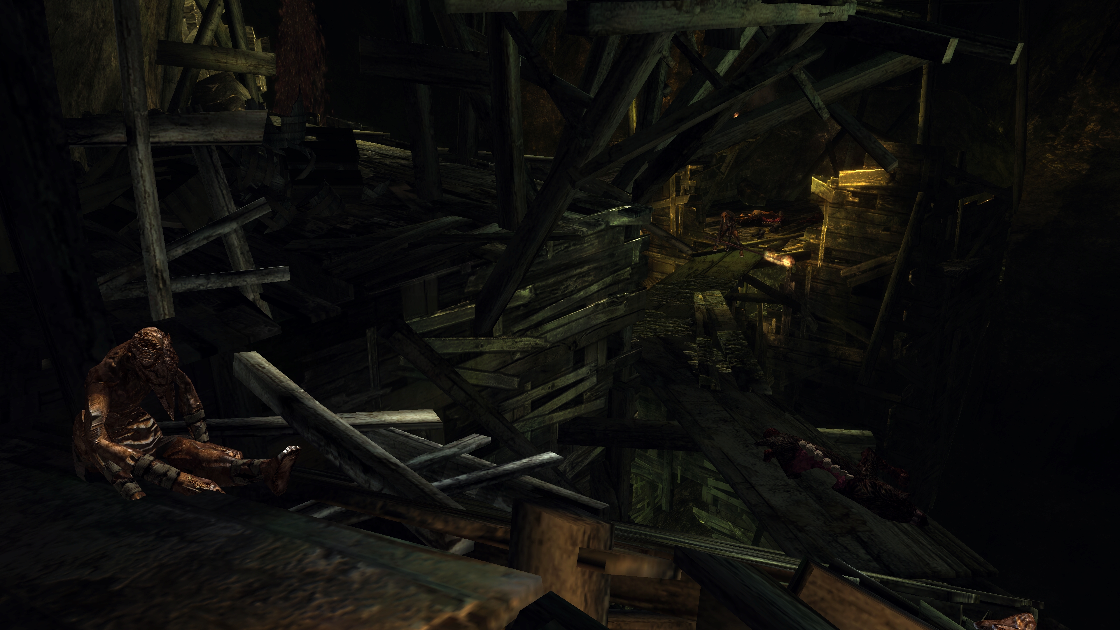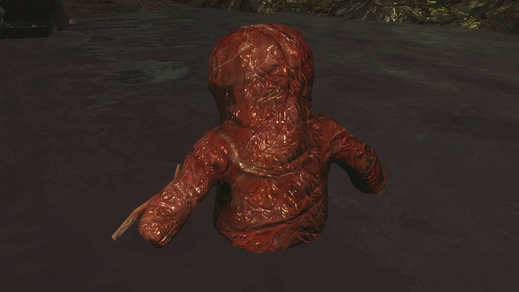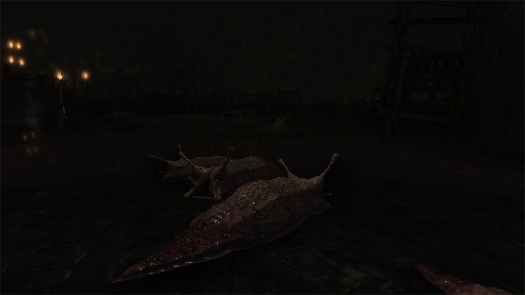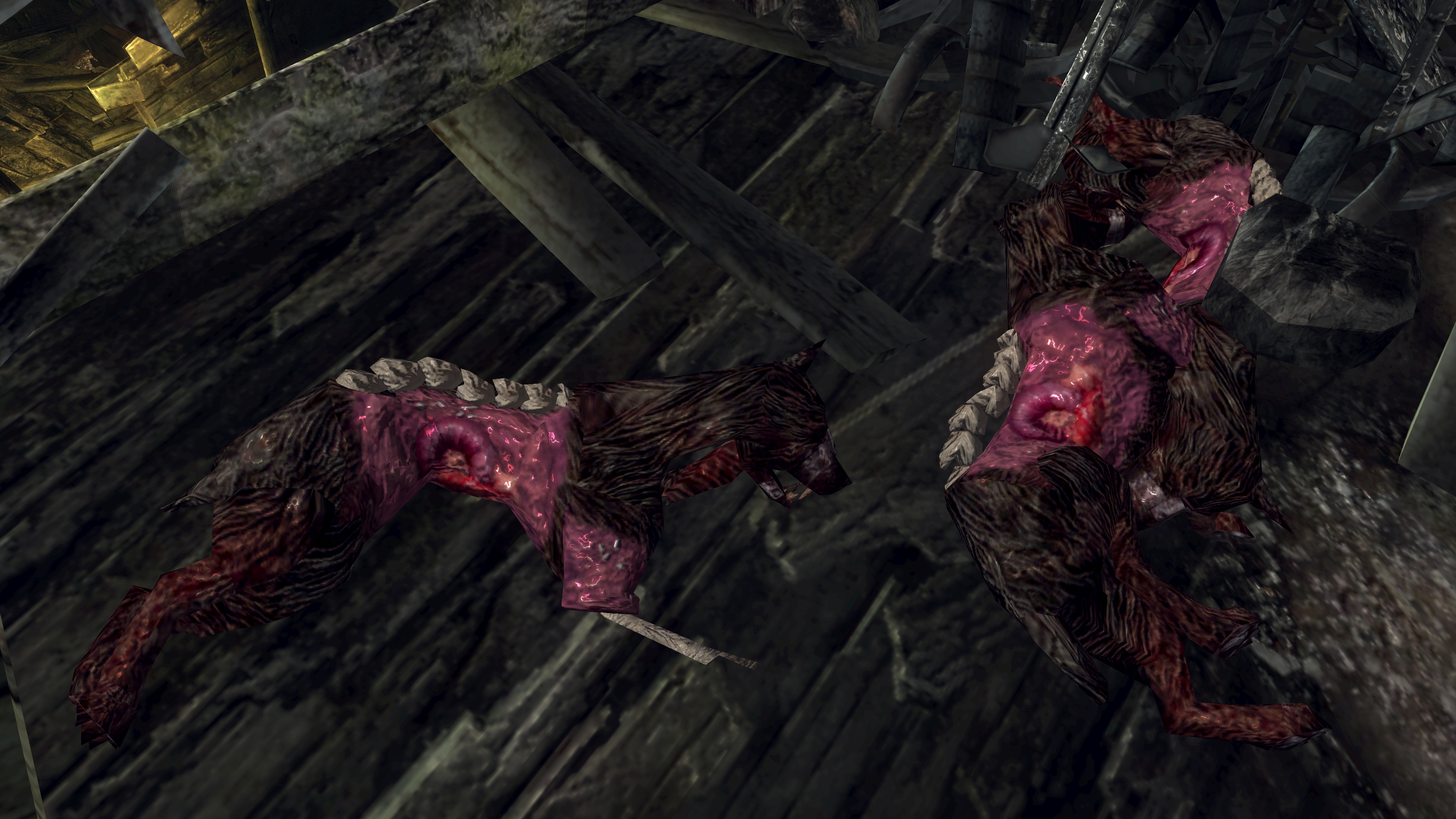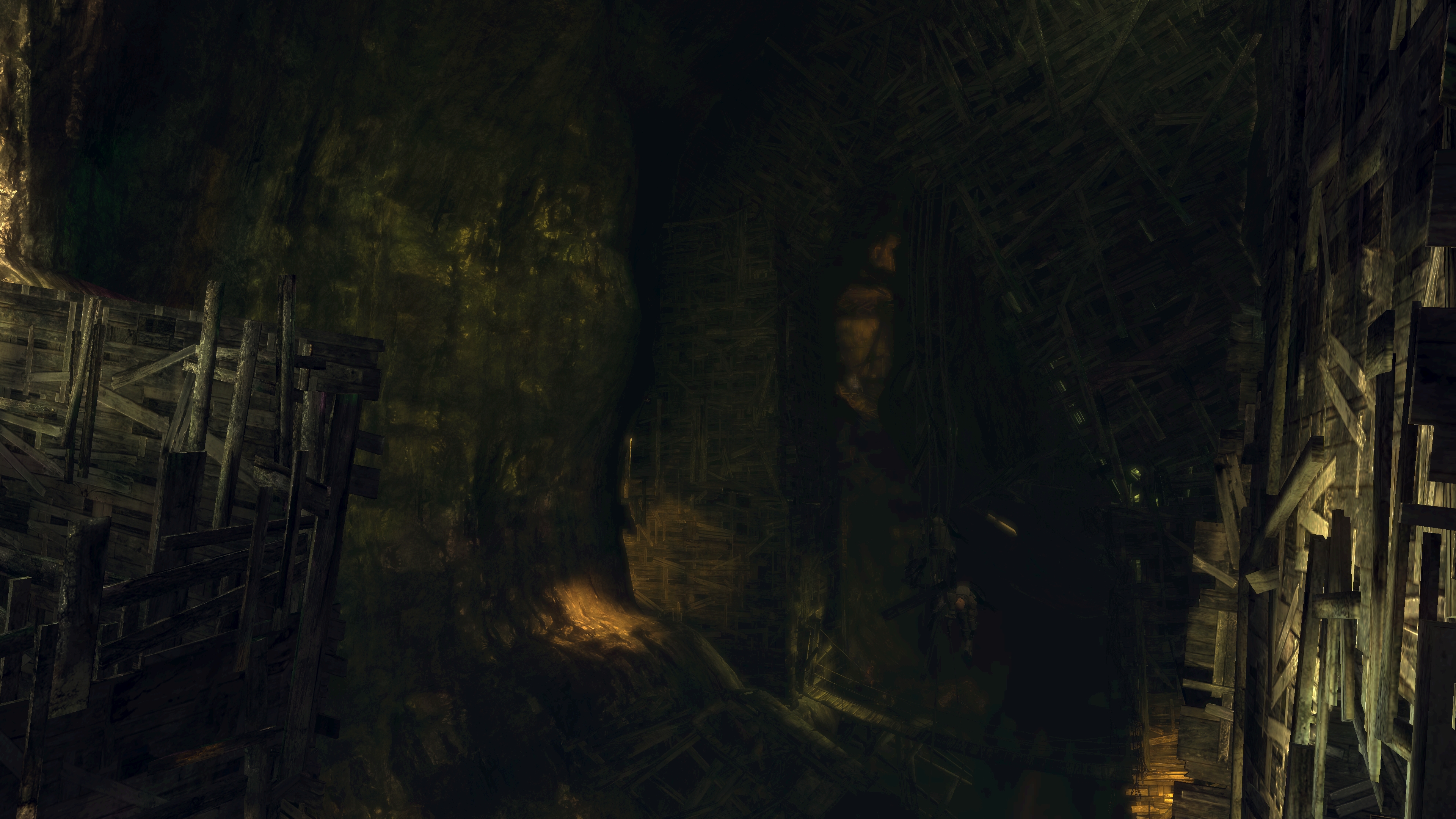 While the filthy woman is trying to make an honest living, some are desperate enough to resort to more dubious means to get by. Piles of bodies around the village, some of which are already partially skinned, indicate the some have gone so far as to eat rats and dogs to get by despite the obvious health risks. Among some piles are even residents’ corpses, so the villagers seem to be fighting amongst themselves for a share, or worse. A female black phantom lurking in the swamp wears old raggedy robes indicative of another villager but wields the giant meat cleaver primarily used by the man-eating Adjudicator. Evidently, some have descended to cannibalism and hunt their fellow villagers scavenging the wetland — meat is meat, and it is survival of the fittest down there.