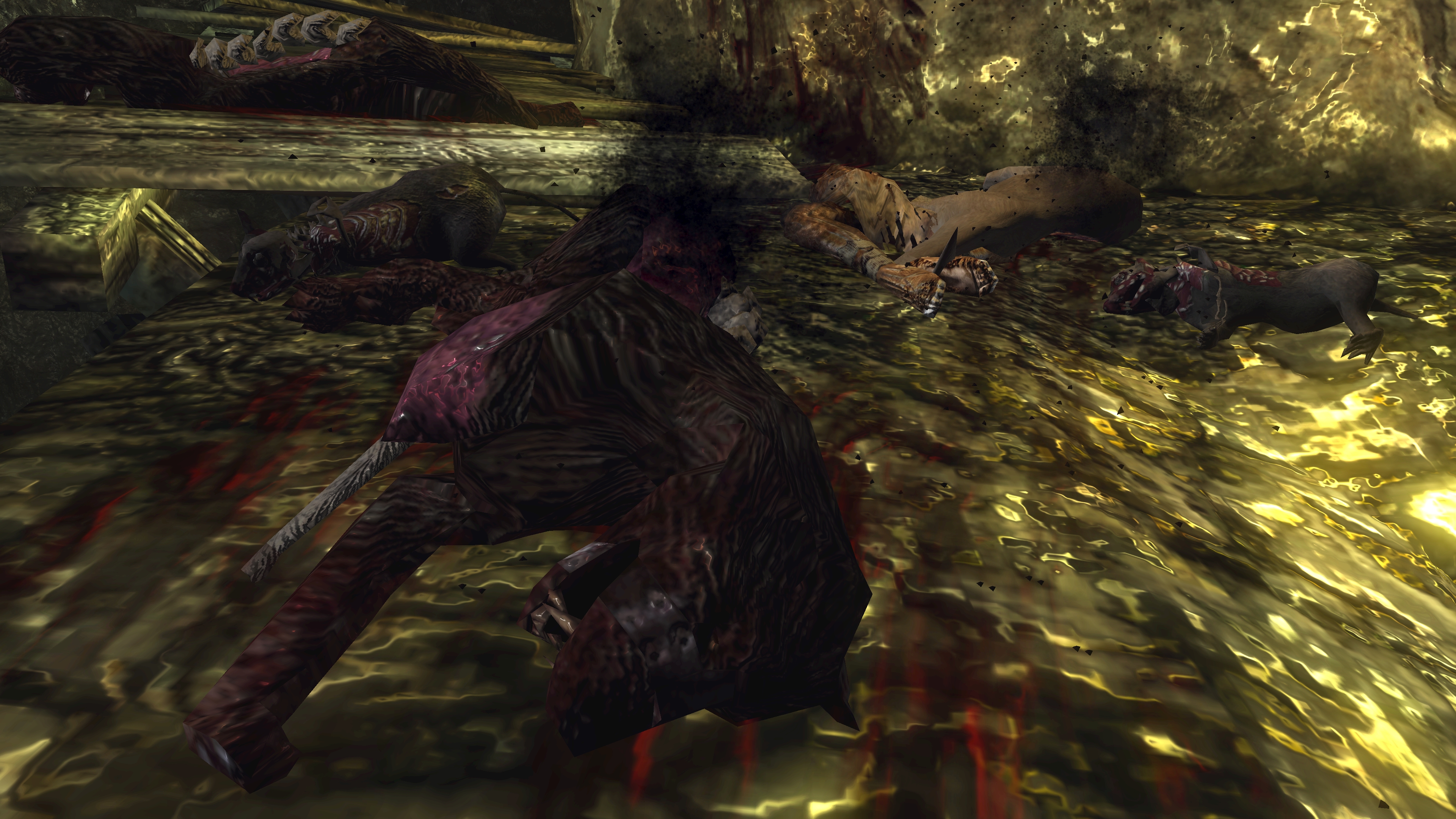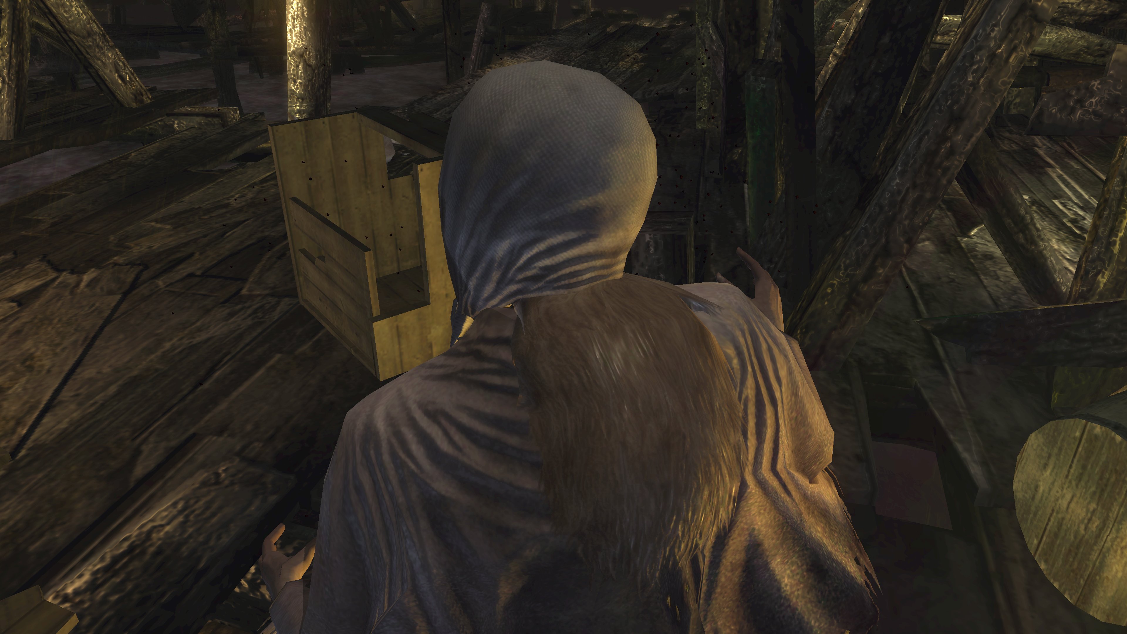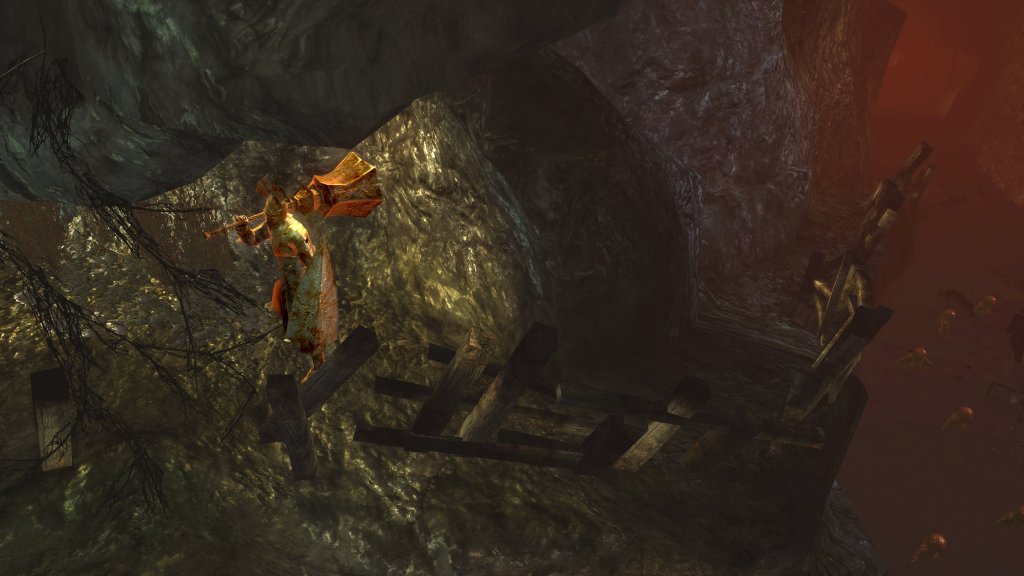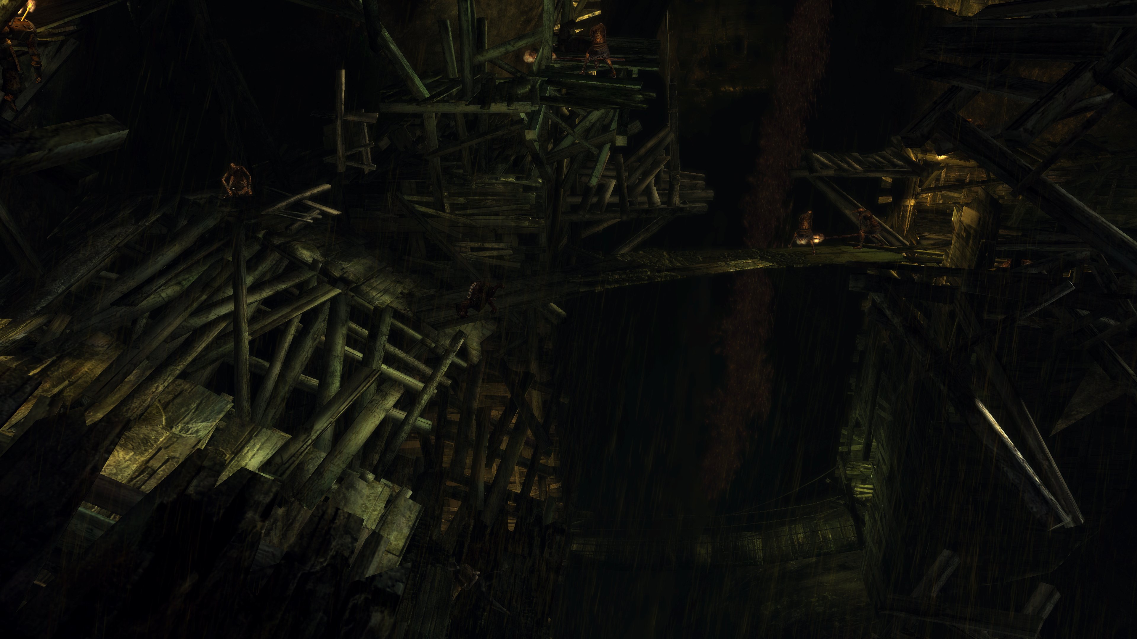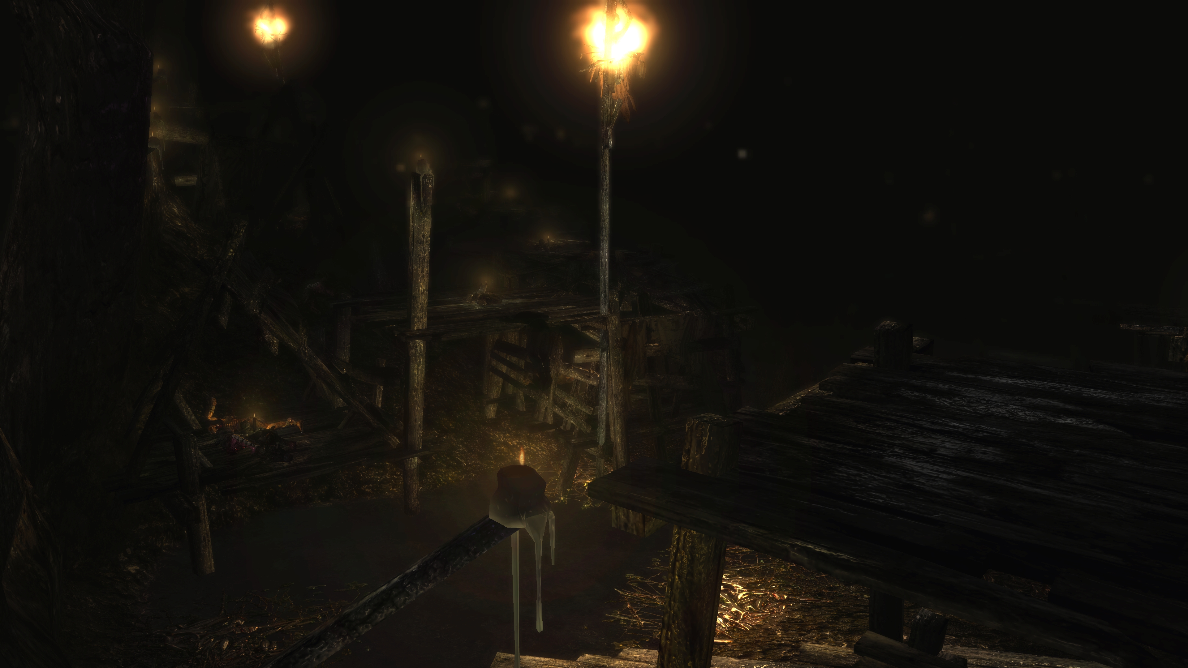 While the filthy woman is trying to make an honest living, some are desperate enough to resort to more dubious means to get by. Piles of bodies around the village, some of which are already partially skinned, indicate the some have gone so far as to eat rats and dogs to get by despite the obvious health risks. Among some piles are even residents’ corpses, so the villagers seem to be fighting amongst themselves for a share, or worse. A female black phantom lurking in the swamp wears old raggedy robes indicative of another villager but wields the giant meat cleaver primarily used by the man-eating Adjudicator. Evidently, some have descended to cannibalism and hunt their fellow villagers scavenging the wetland — meat is meat, and it is survival of the fittest down there.