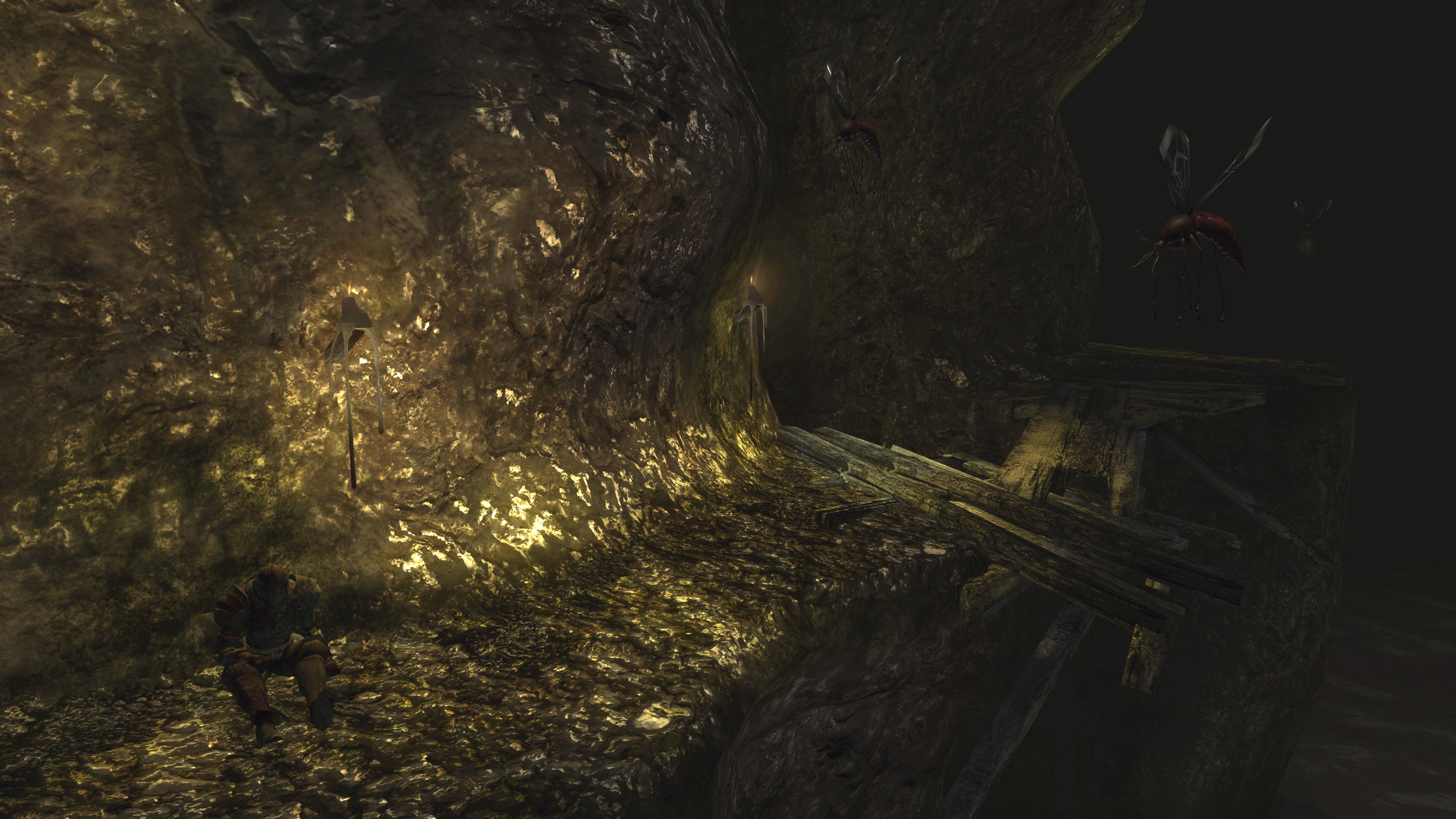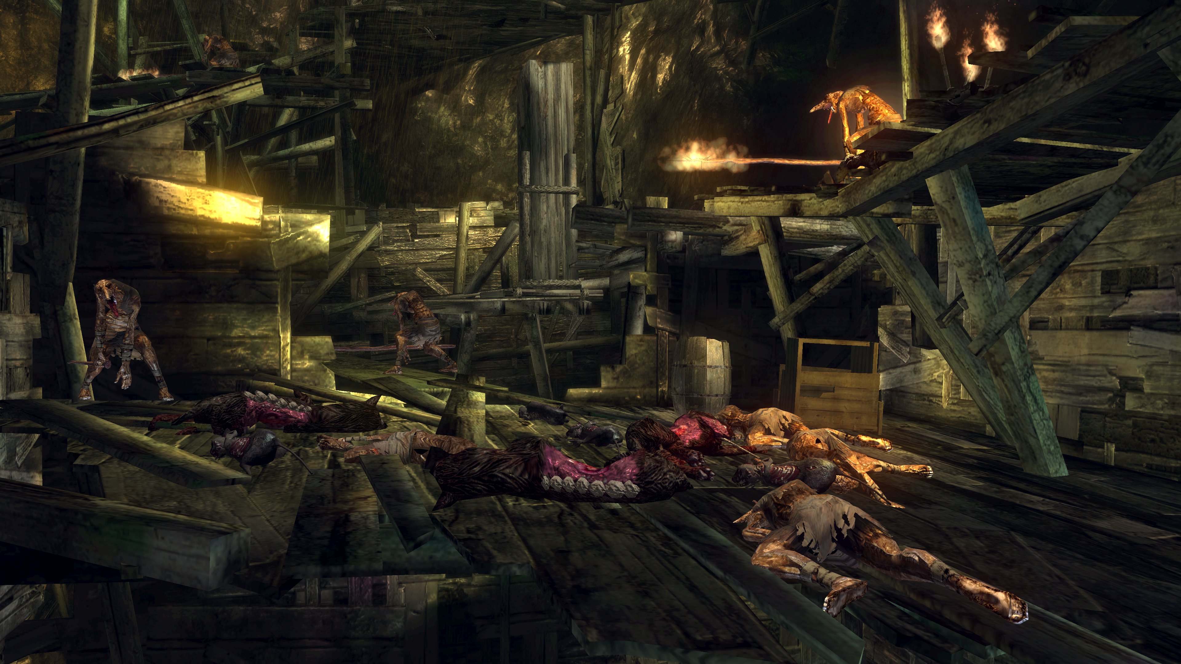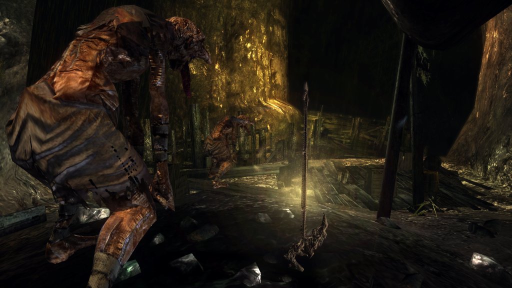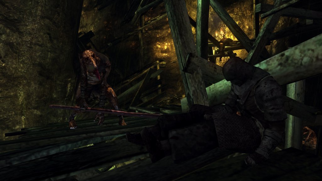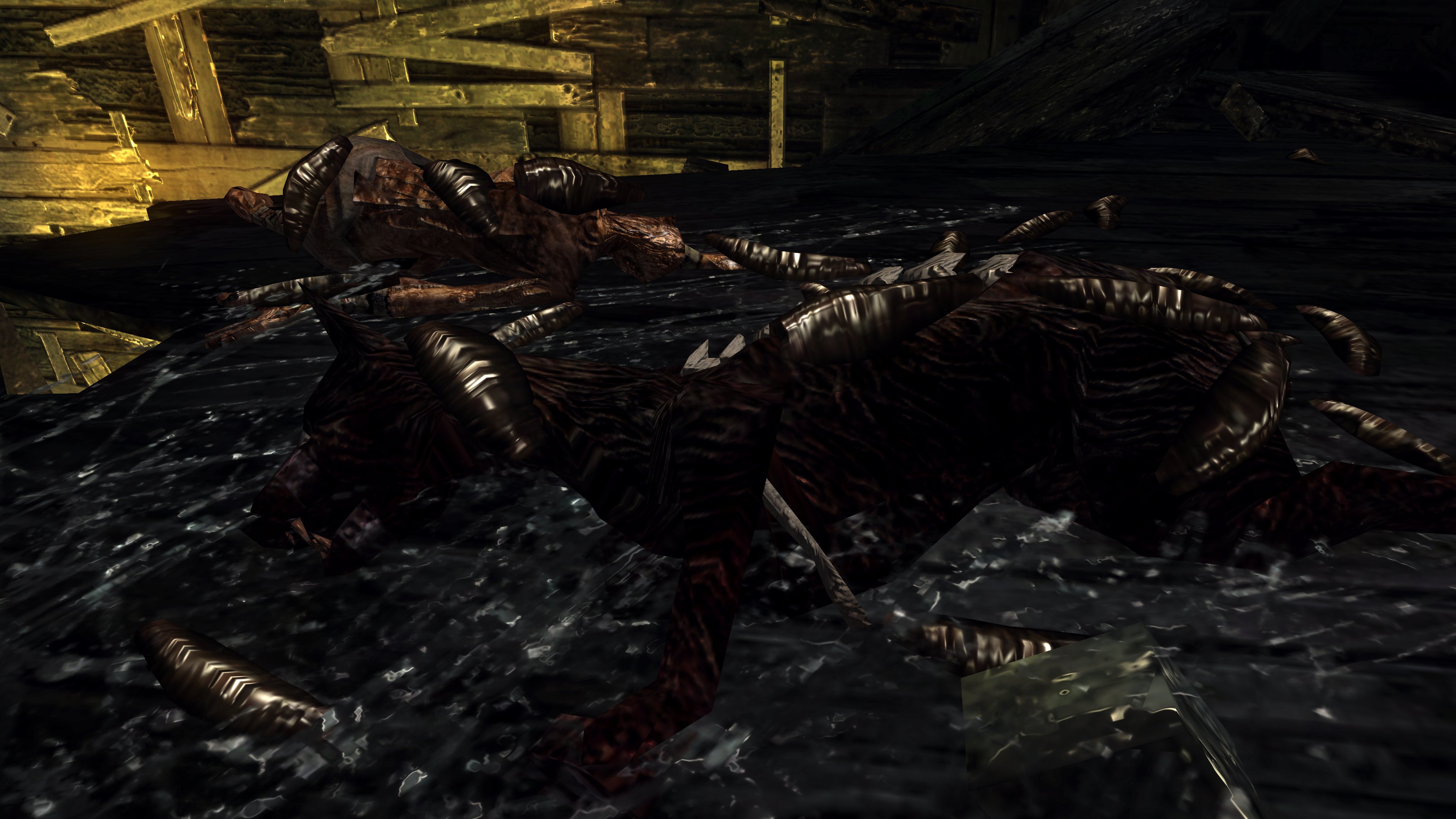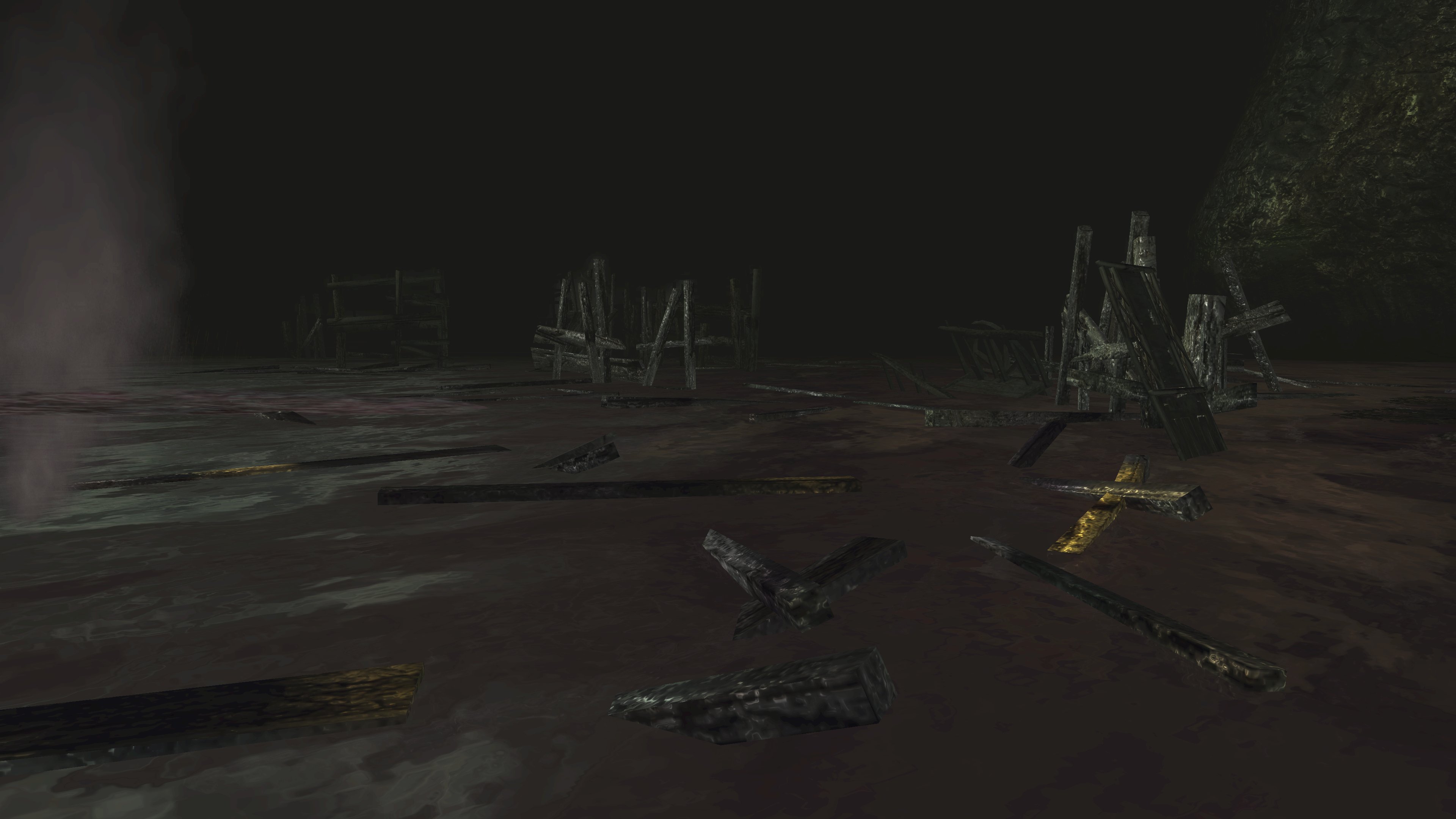 While the filthy woman is trying to make an honest living, some are desperate enough to resort to more dubious means to get by. Piles of bodies around the village, some of which are already partially skinned, indicate the some have gone so far as to eat rats and dogs to get by despite the obvious health risks. Among some piles are even residents’ corpses, so the villagers seem to be fighting amongst themselves for a share, or worse. A female black phantom lurking in the swamp wears old raggedy robes indicative of another villager but wields the giant meat cleaver primarily used by the man-eating Adjudicator. Evidently, some have descended to cannibalism and hunt their fellow villagers scavenging the wetland — meat is meat, and it is survival of the fittest down there.
