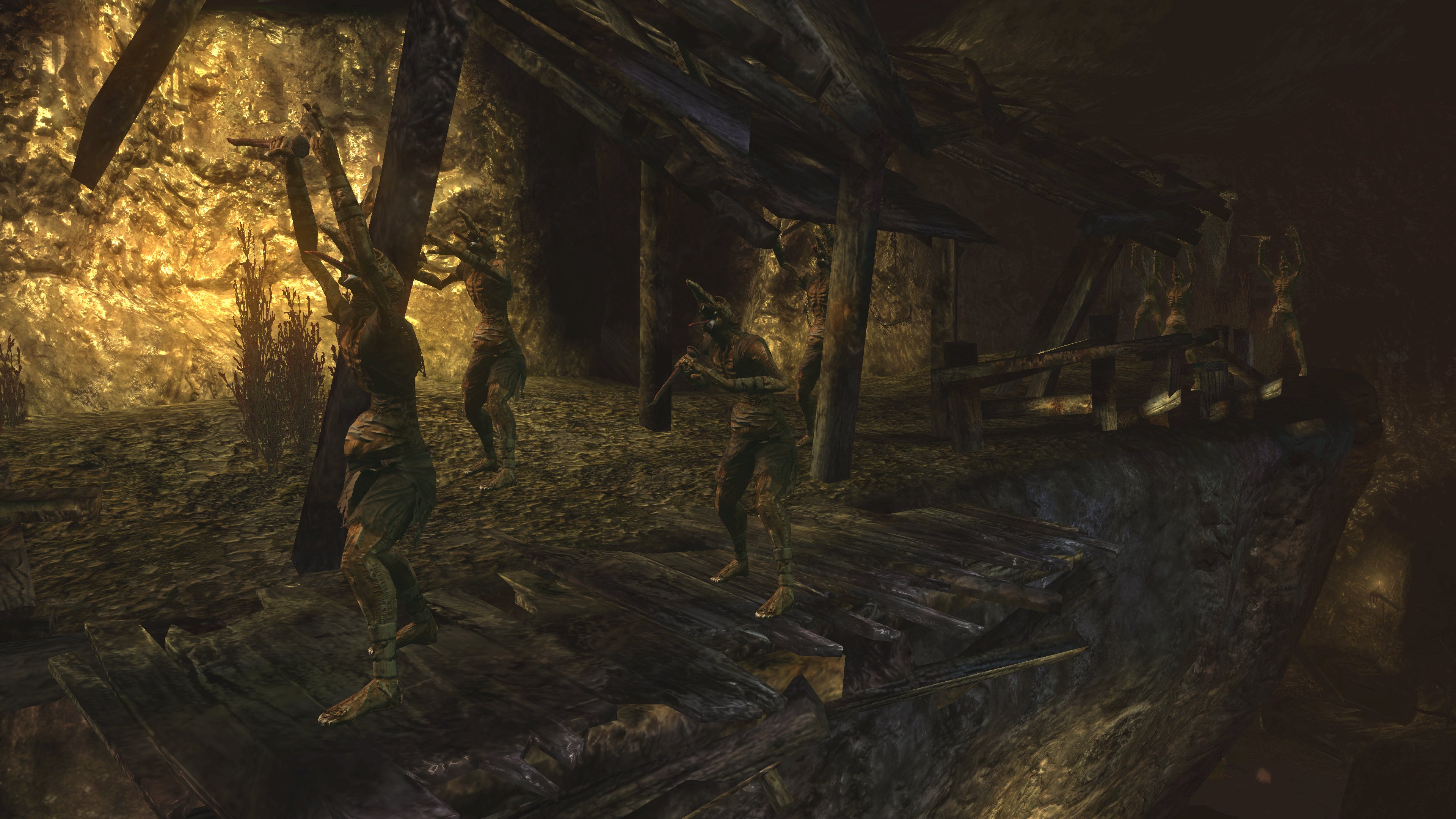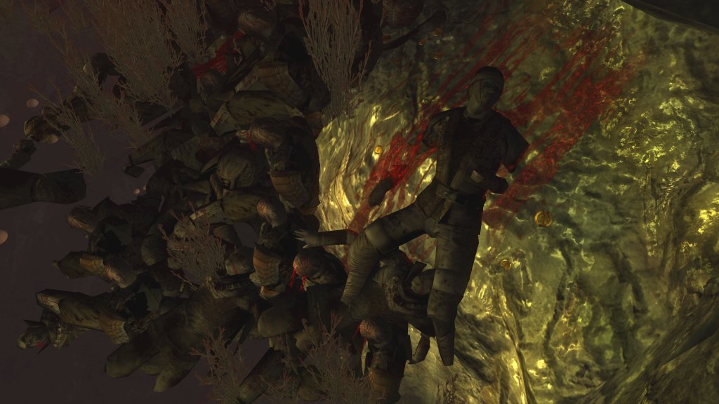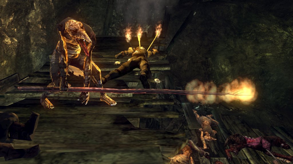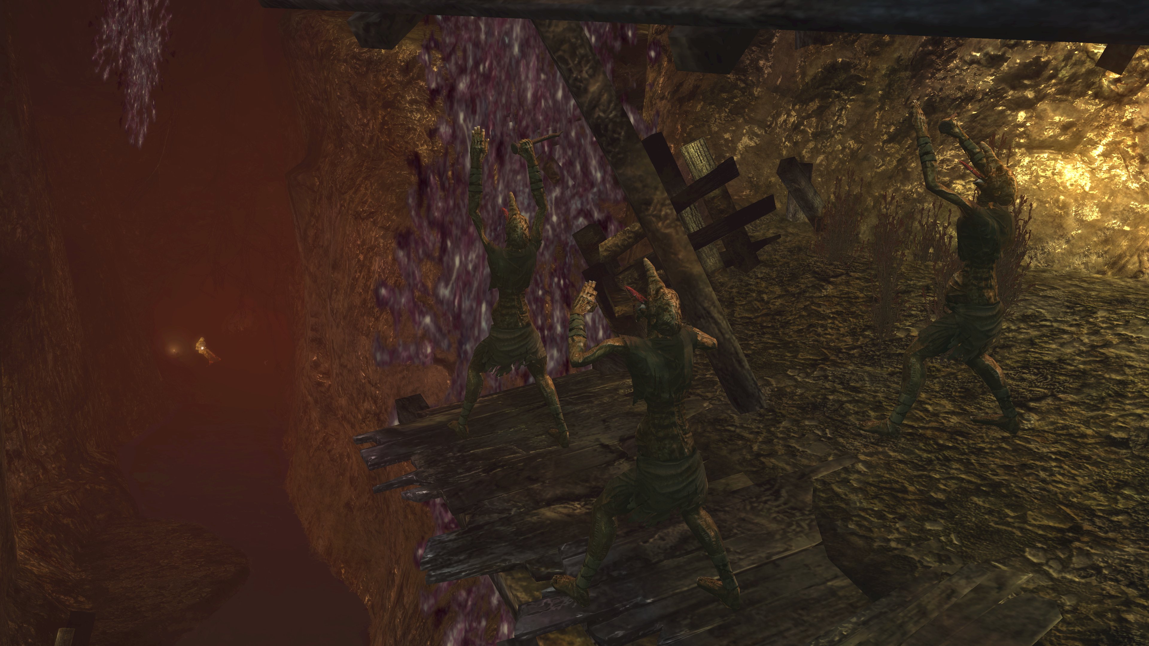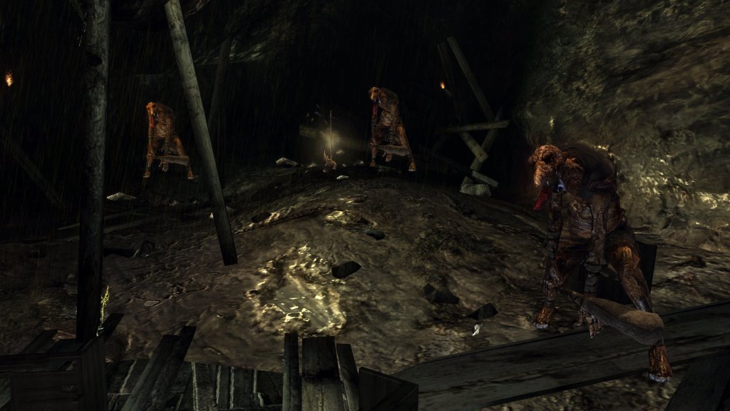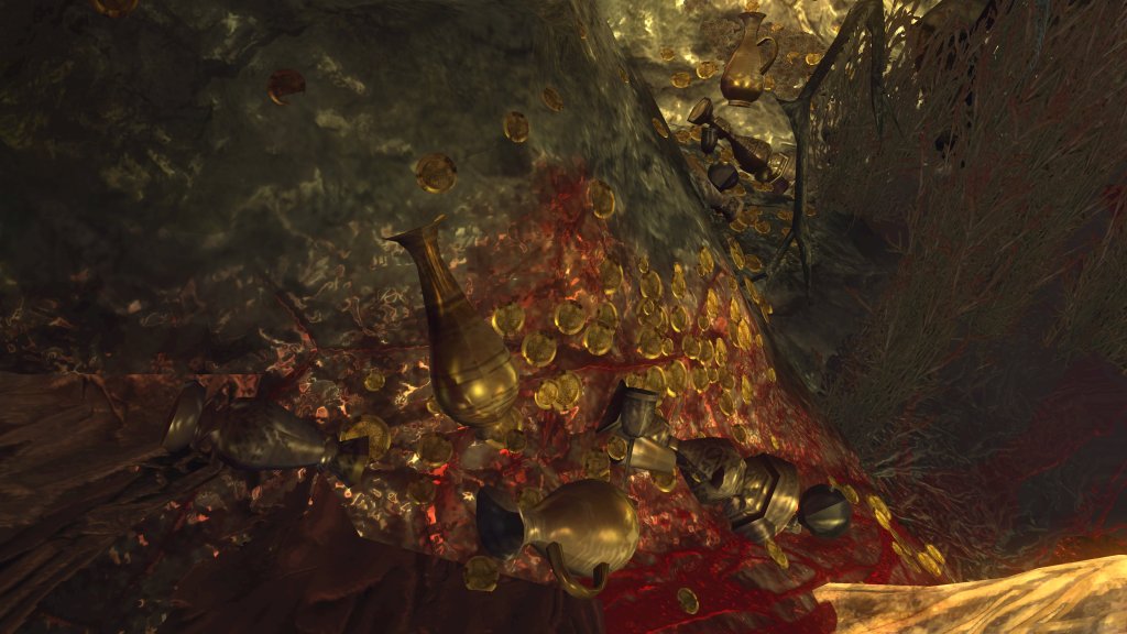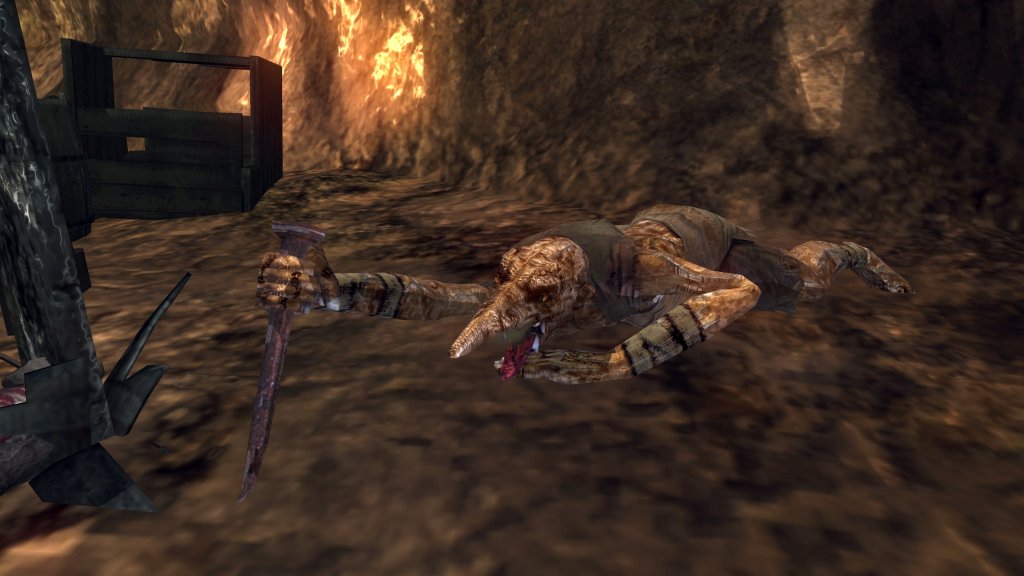 While the filthy woman is trying to make an honest living, some are desperate enough to resort to more dubious means to get by. Piles of bodies around the village, some of which are already partially skinned, indicate the some have gone so far as to eat rats and dogs to get by despite the obvious health risks. Among some piles are even residents’ corpses, so the villagers seem to be fighting amongst themselves for a share, or worse. A female black phantom lurking in the swamp wears old raggedy robes indicative of another villager but wields the giant meat cleaver primarily used by the man-eating Adjudicator. Evidently, some have descended to cannibalism and hunt their fellow villagers scavenging the wetland — meat is meat, and it is survival of the fittest down there.