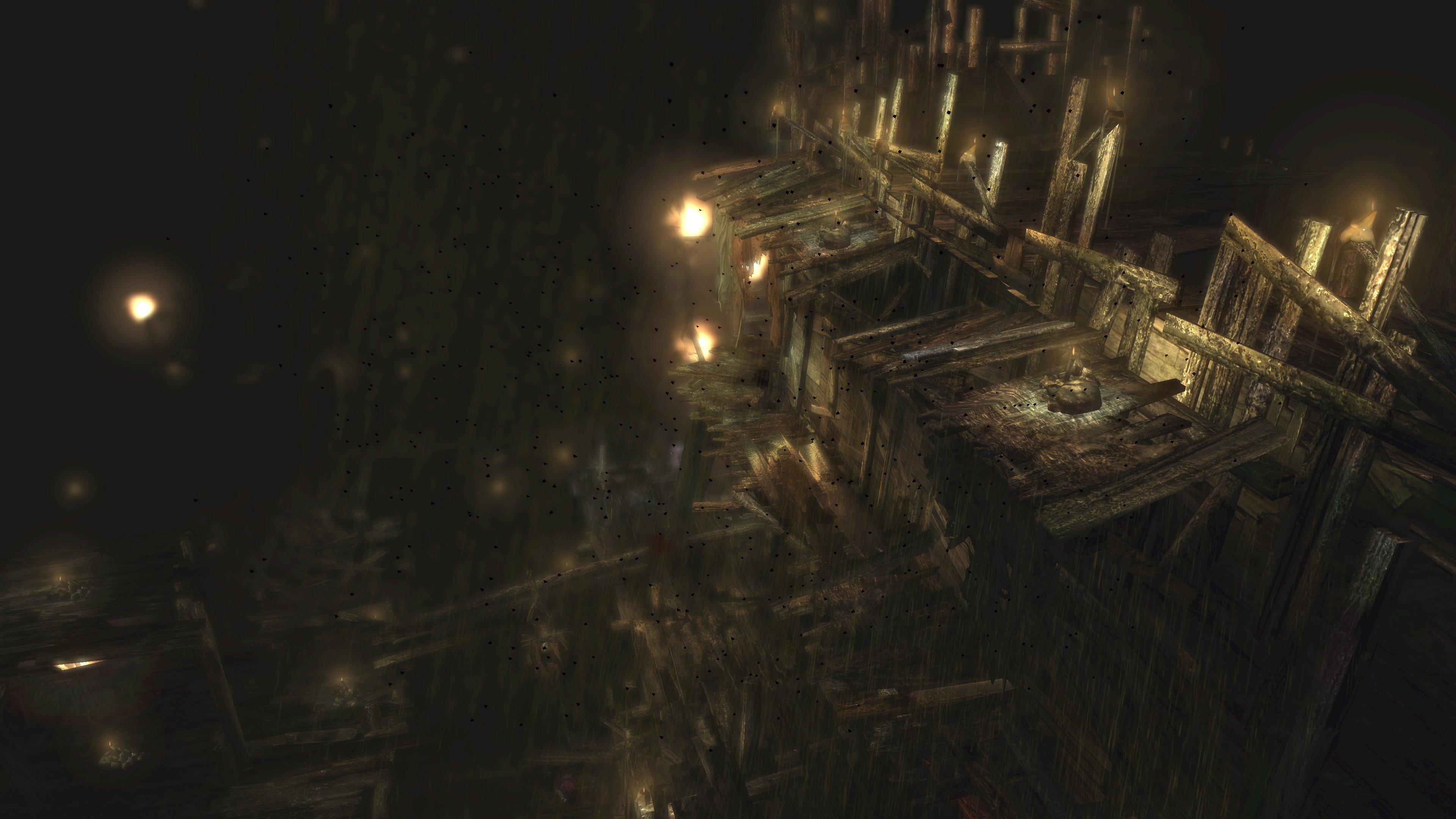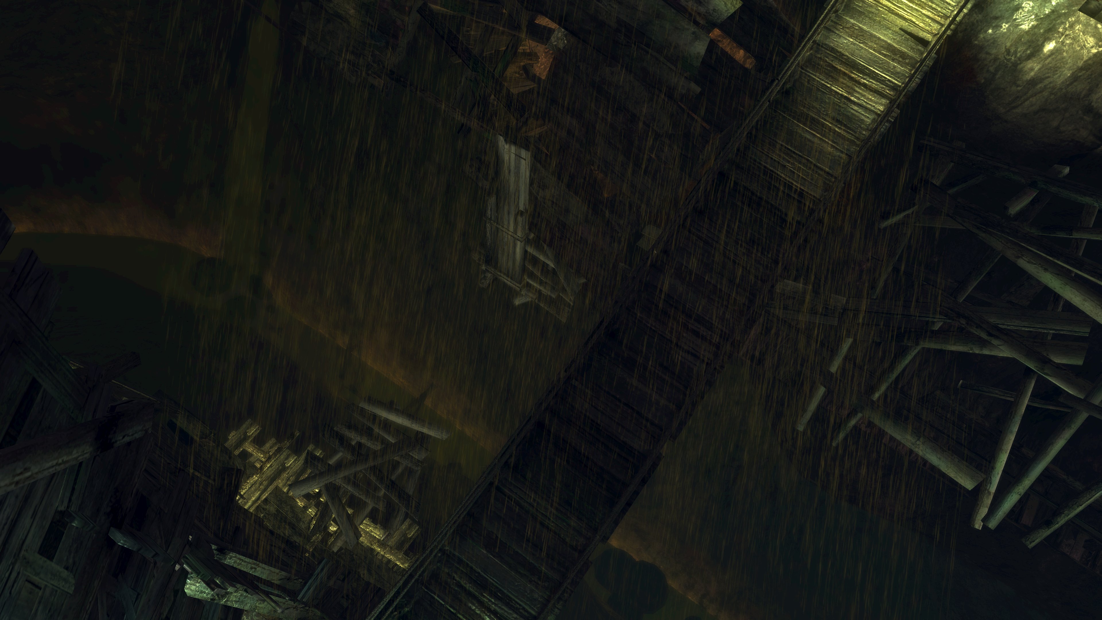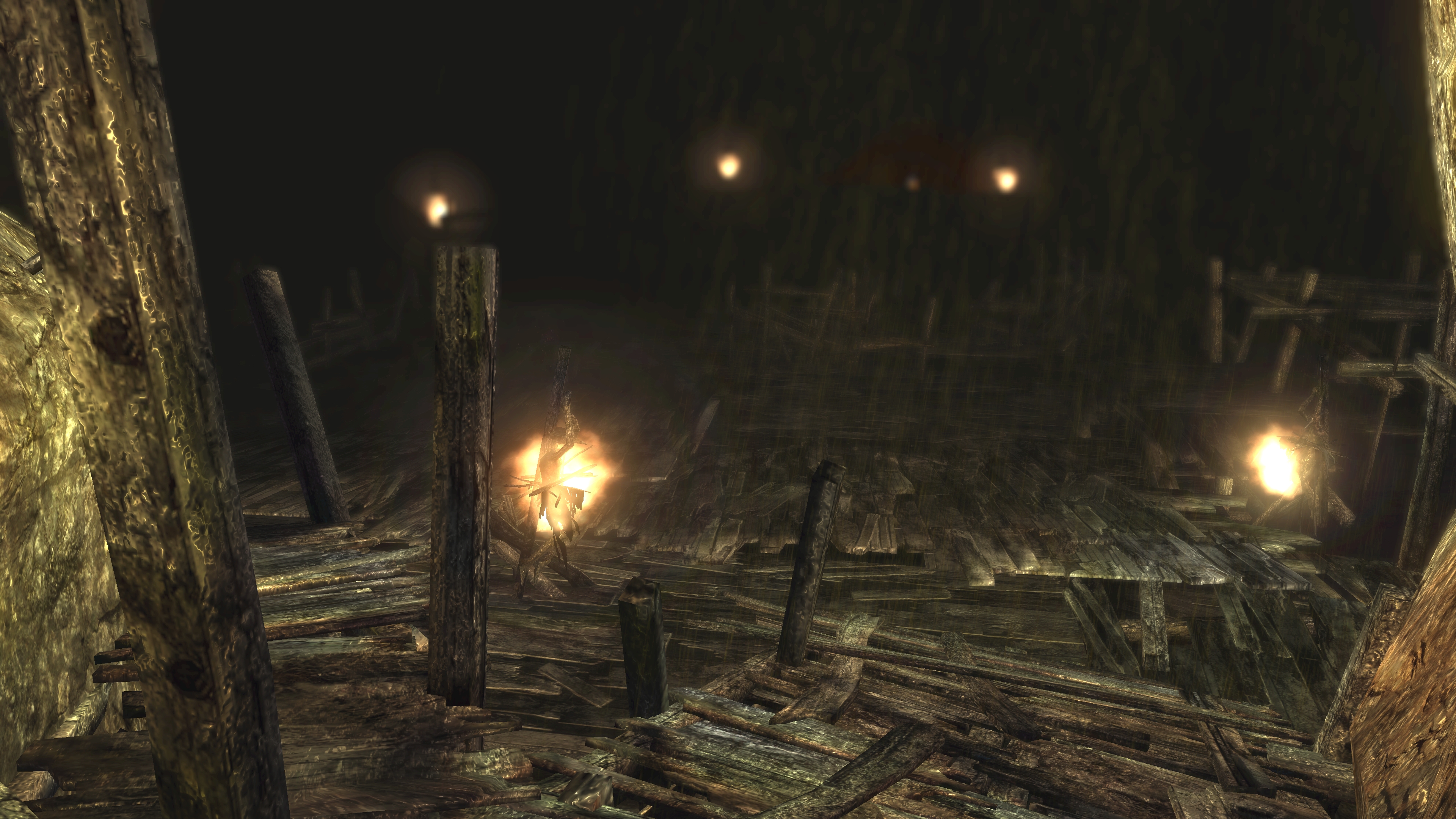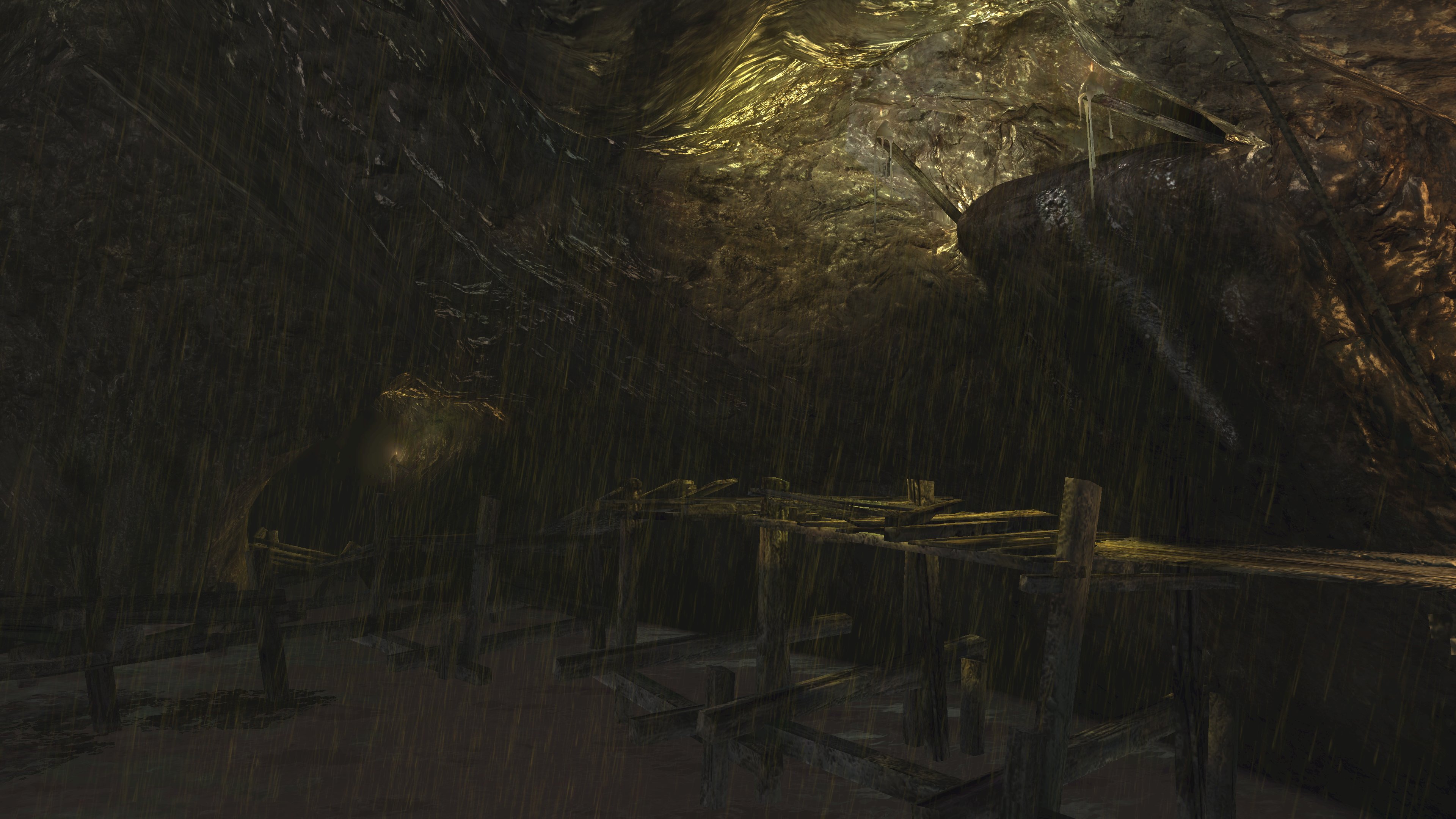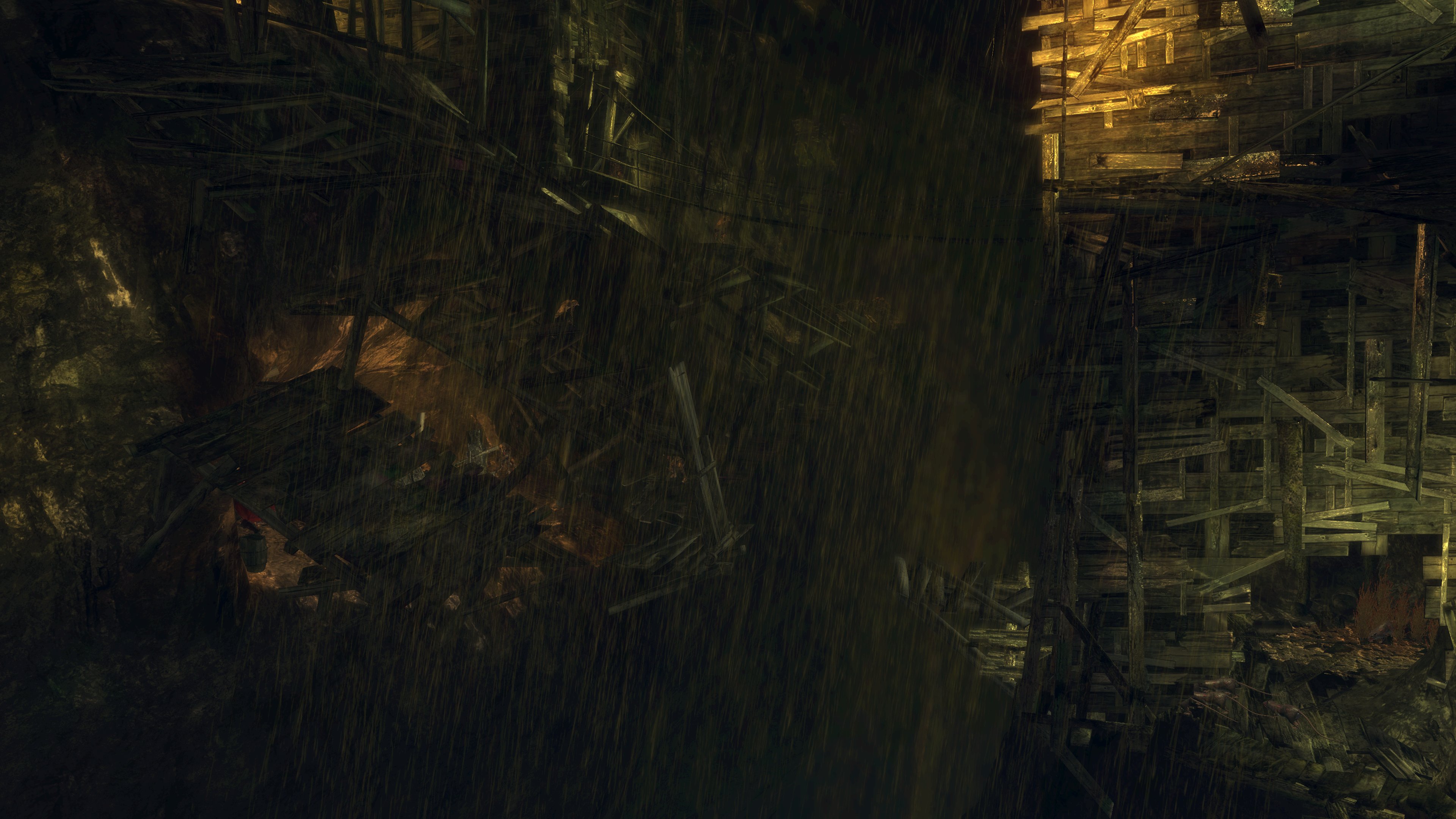 The Valley of Defilement has earned its name “rotten valley” (腐れ谷) as a consequence of all the decay it has accumulated over time. When we visit the area, it is pouring rain that causes entire waterfalls to stream over its cliffs and down to the very bottom. This weather naturally allows all manner of things to flow into the gorge, which apparently happens rather frequently if the swamp at its base is any indication. But it is not just water that has been flowing into this basin but everything unclean. Plants and filth; wooden beams, planks, barrels, and wheels; rope and straw; metal pieces and clay bowls; uneaten fruits and meat — every one of these things have ended up in the valley, drifting into the giant swamp before finally settling into a graben in the depths of the marsh. As the filthy woman puts it, this damp place is a trash dump, with refuse flowing in from nearby countries via rivers and the like. These likely includes Boletaria given that the valley is engulfed by the deep fog, and we can see a branching gorge on the western side of the world map. It is a naturally-formed trash bin, and what does trash do if not rot?