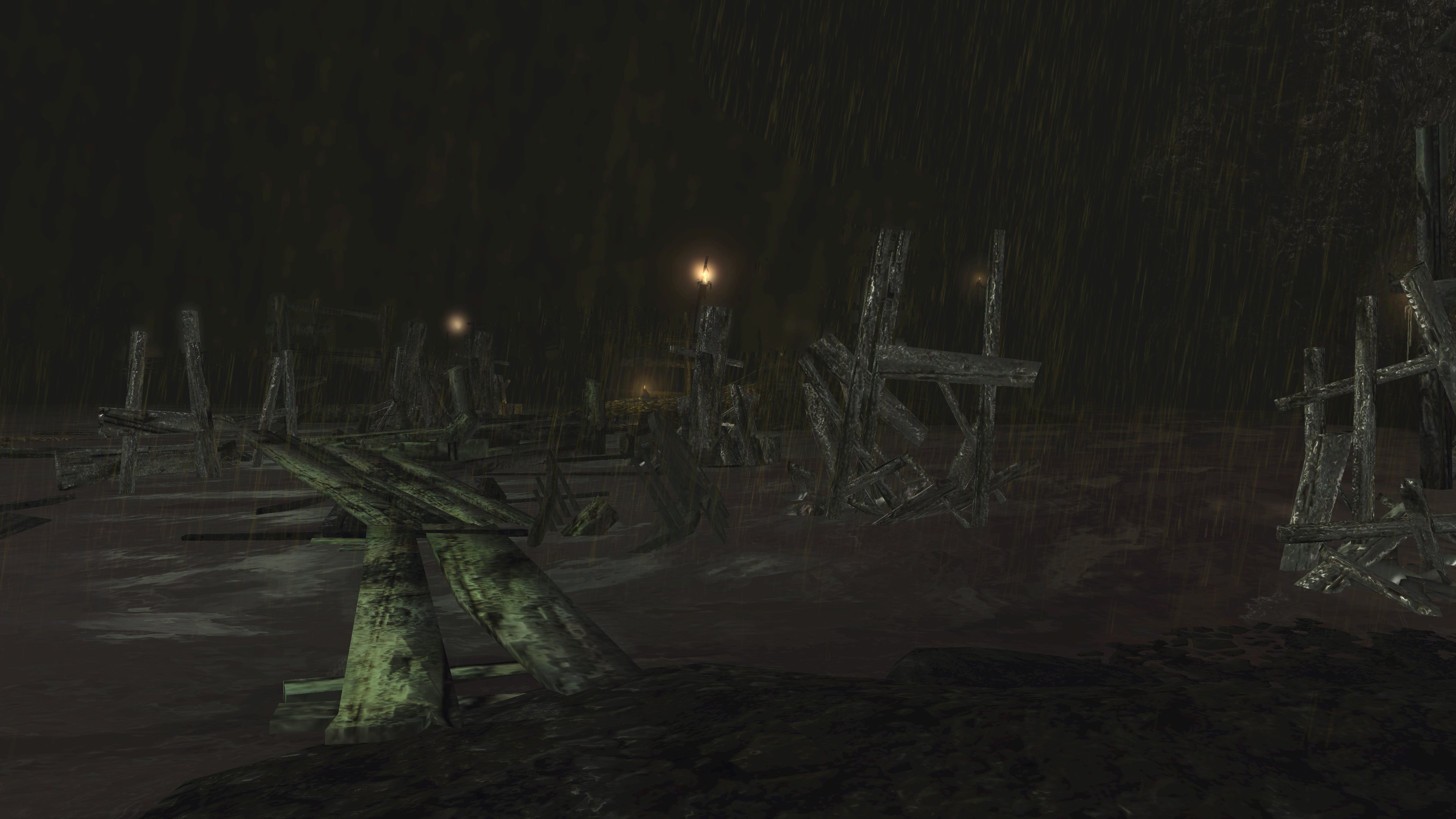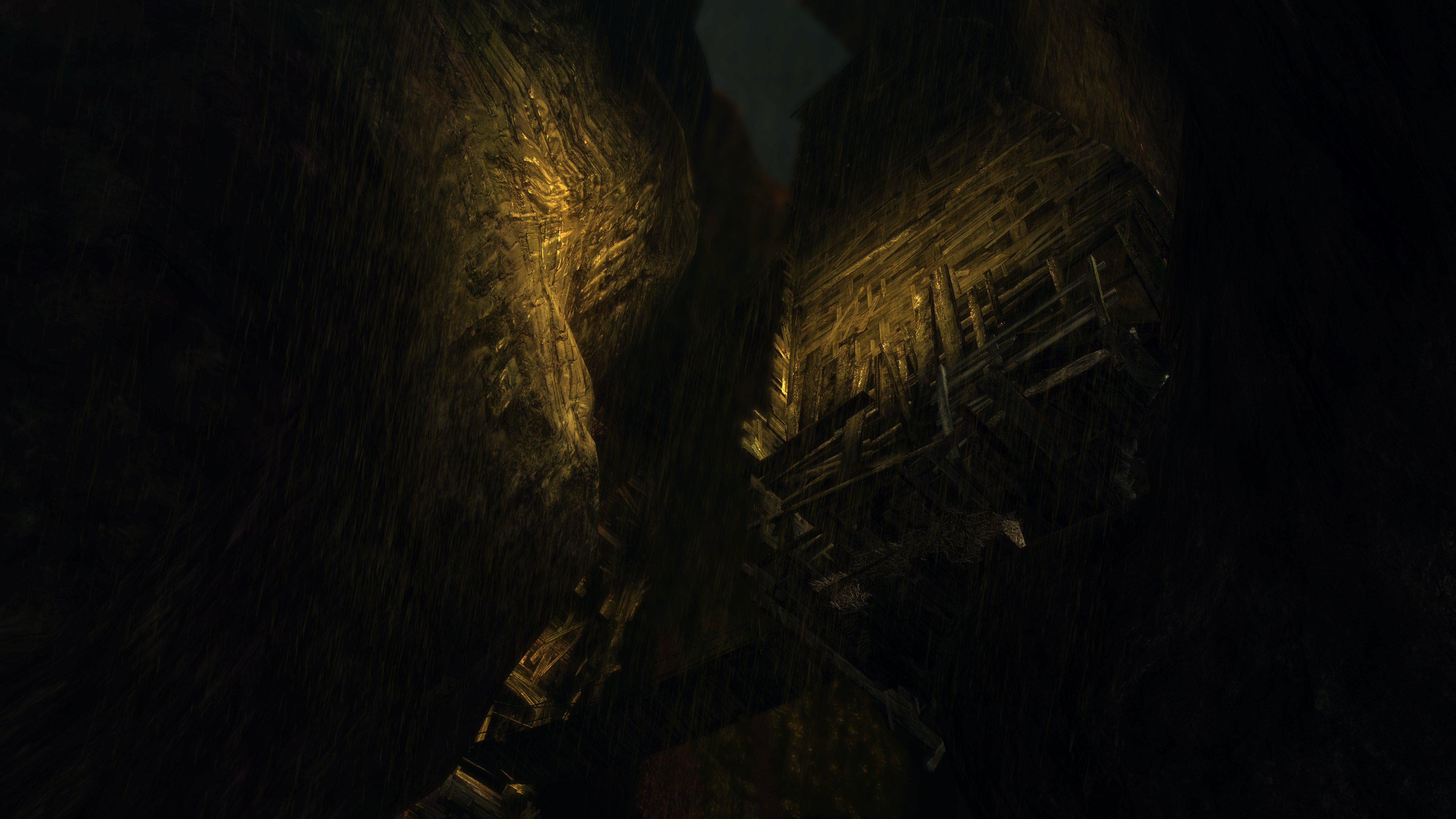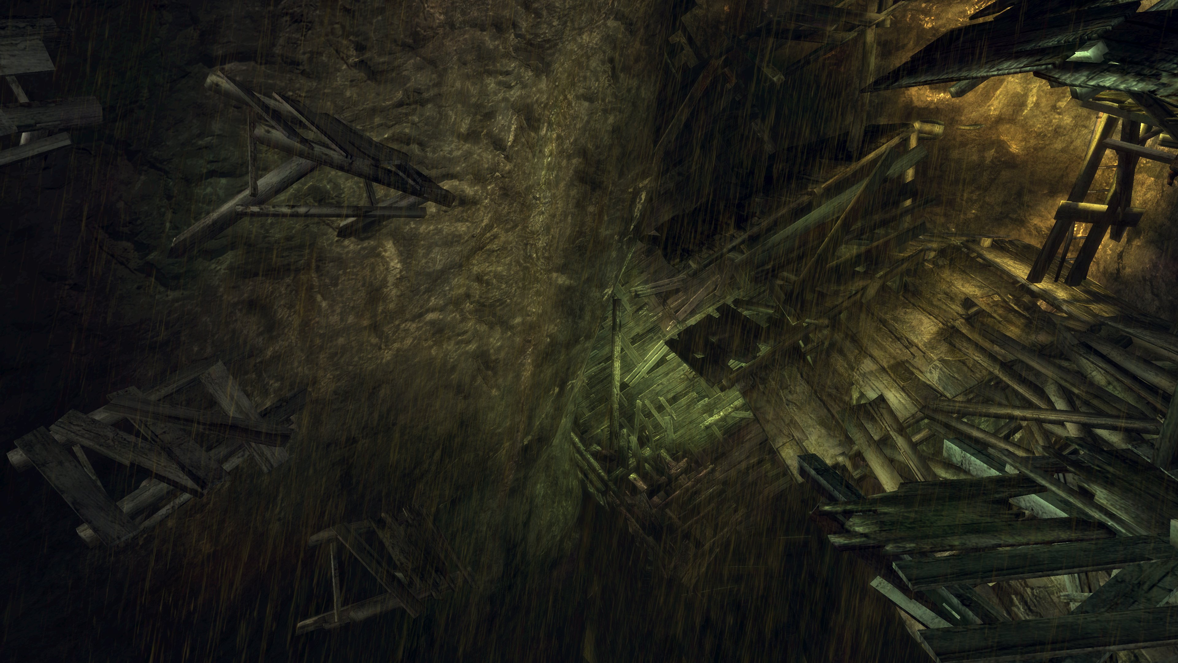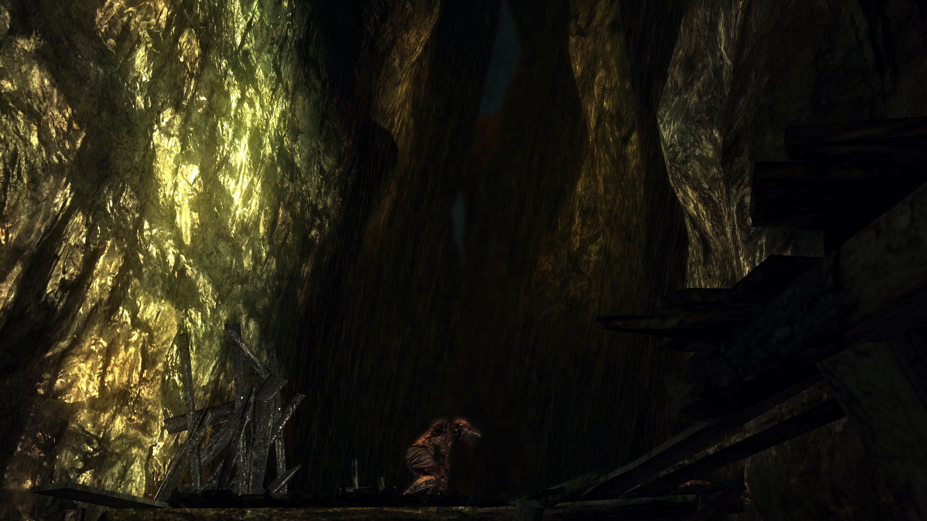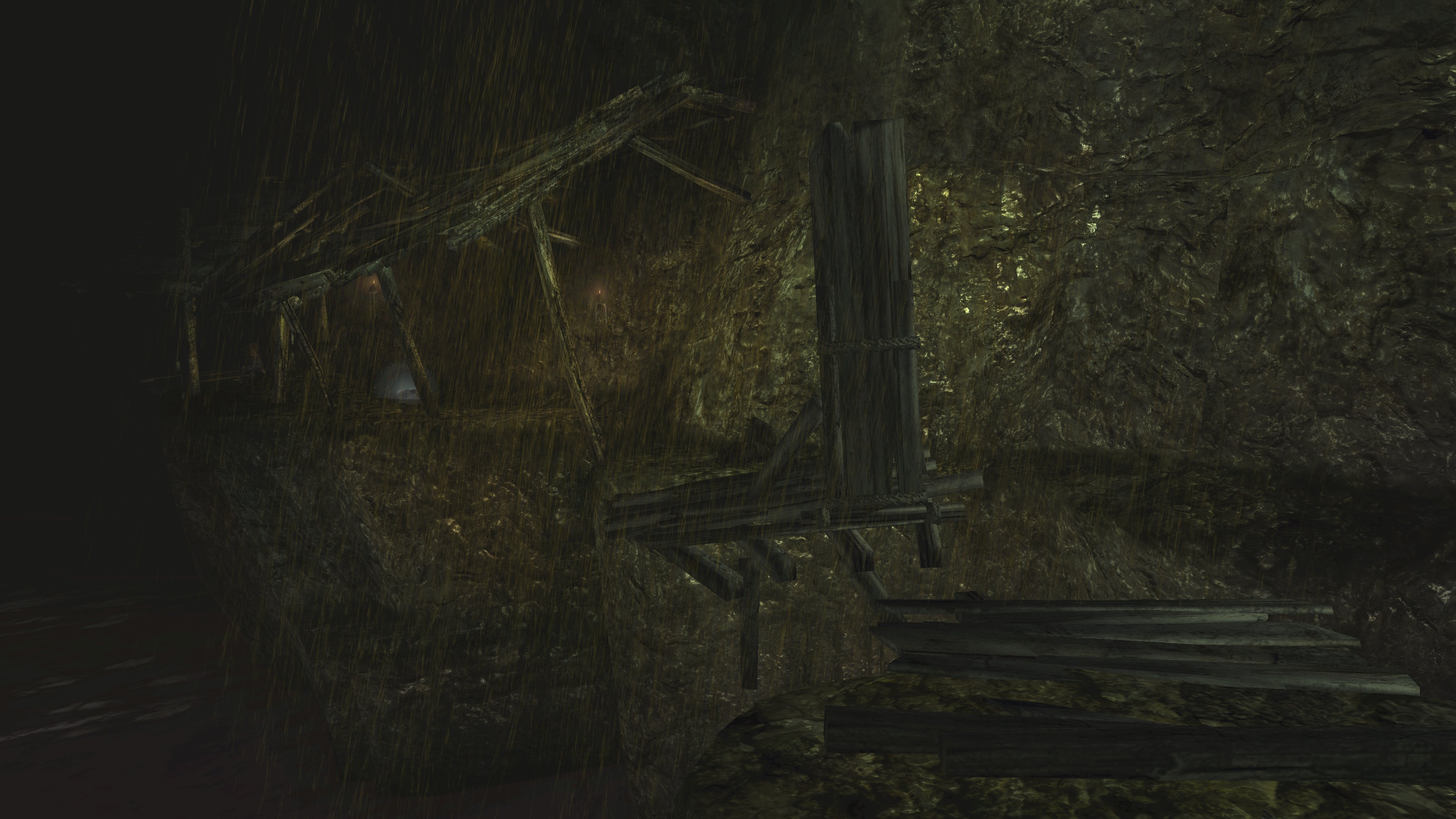 The Valley of Defilement has earned its name “rotten valley” (腐れ谷) as a consequence of all the decay it has accumulated over time. When we visit the area, it is pouring rain that causes entire waterfalls to stream over its cliffs and down to the very bottom. This weather naturally allows all manner of things to flow into the gorge, which apparently happens rather frequently if the swamp at its base is any indication. But it is not just water that has been flowing into this basin but everything unclean. Plants and filth; wooden beams, planks, barrels, and wheels; rope and straw; metal pieces and clay bowls; uneaten fruits and meat — every one of these things have ended up in the valley, drifting into the giant swamp before finally settling into a graben in the depths of the marsh. As the filthy woman puts it, this damp place is a trash dump, with refuse flowing in from nearby countries via rivers and the like. These likely includes Boletaria given that the valley is engulfed by the deep fog, and we can see a branching gorge on the western side of the world map. It is a naturally-formed trash bin, and what does trash do if not rot?
