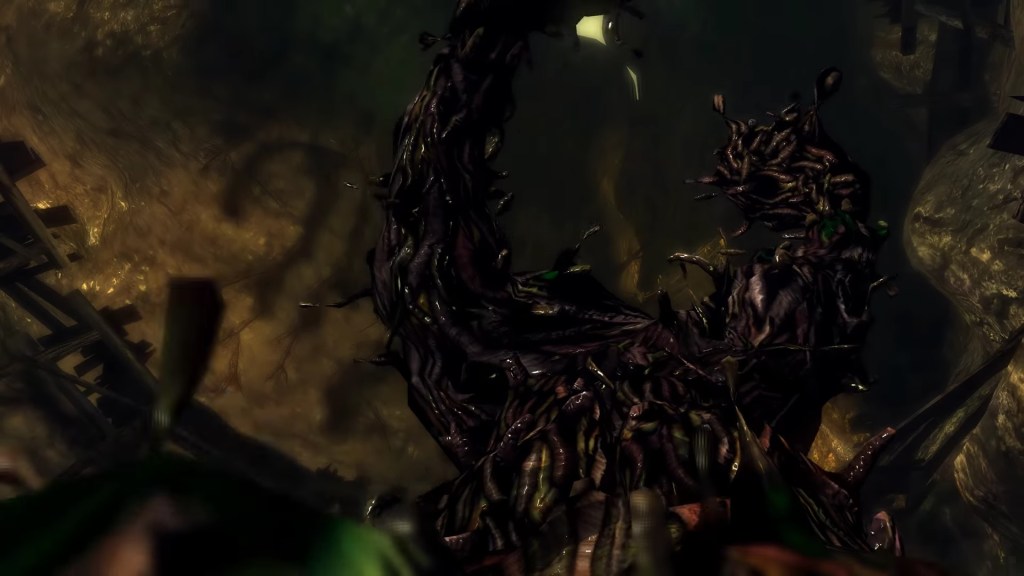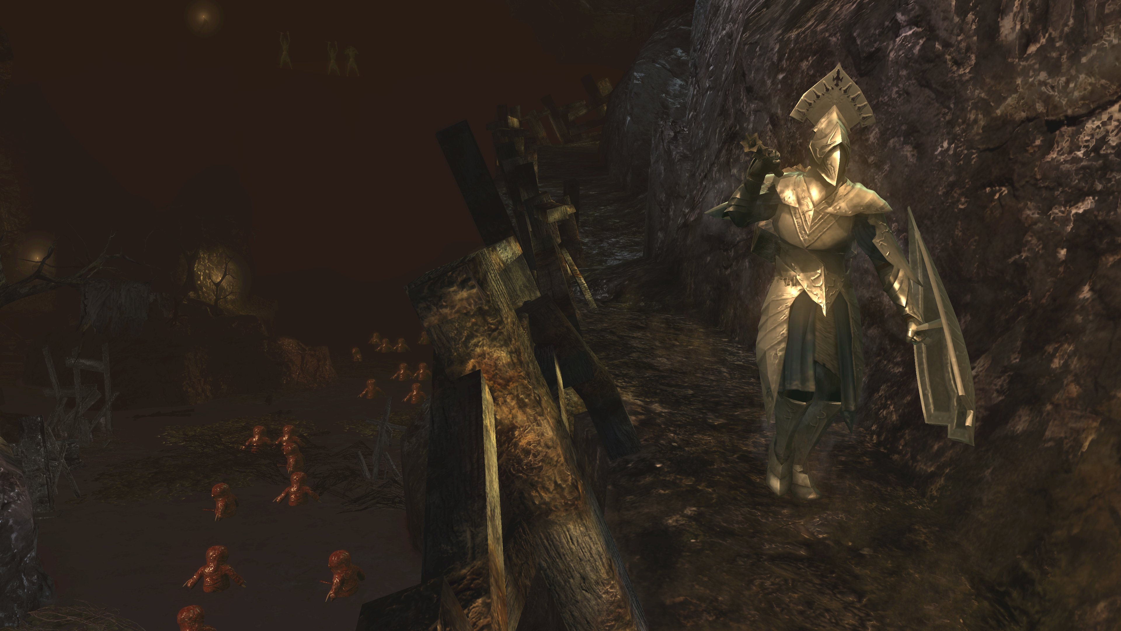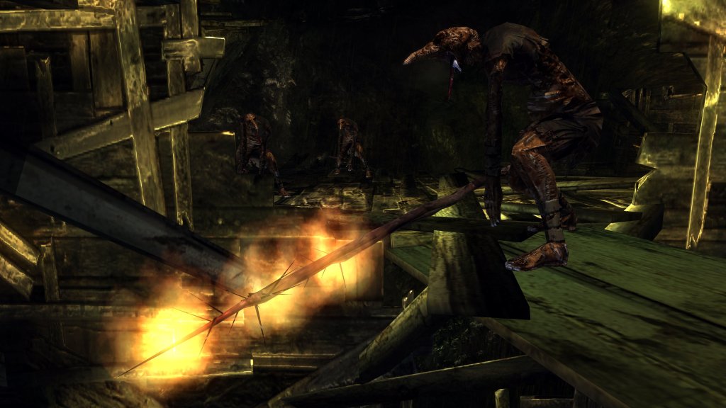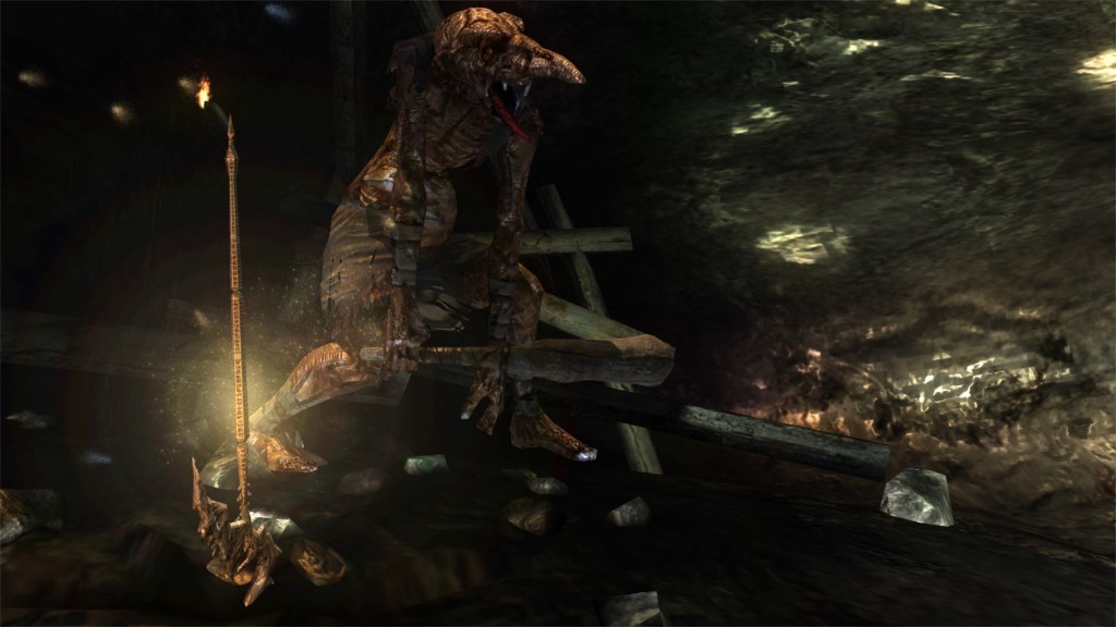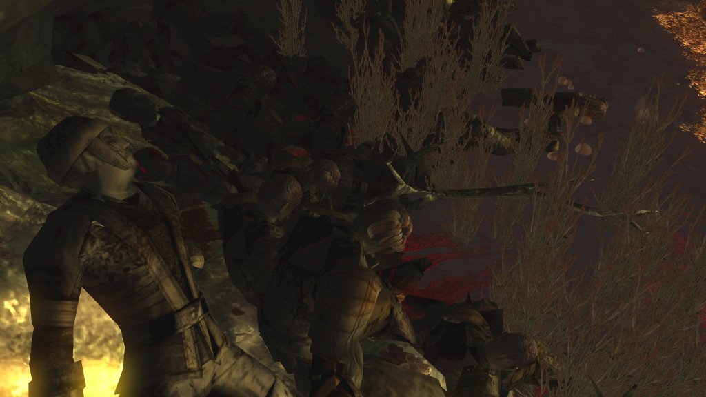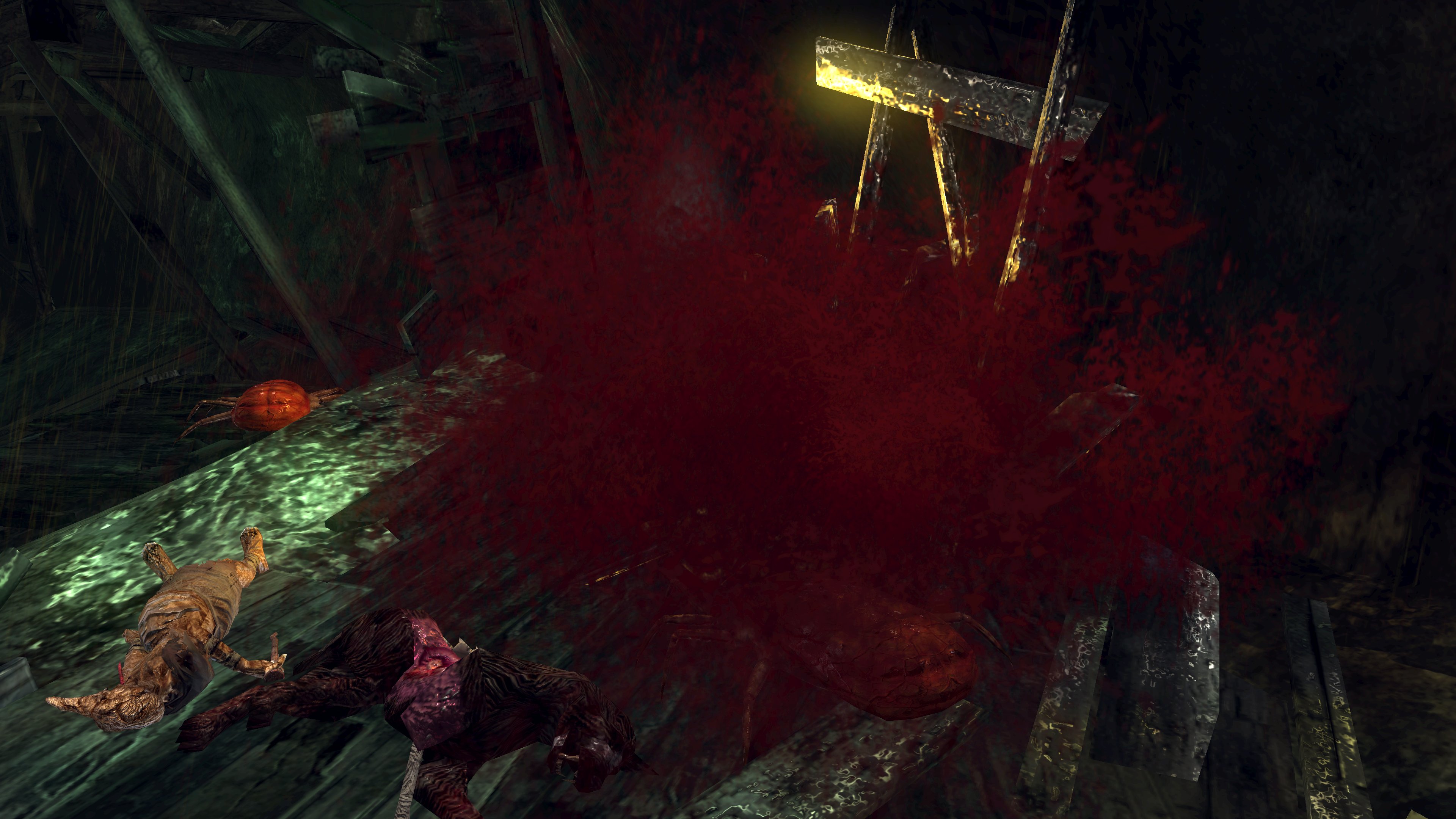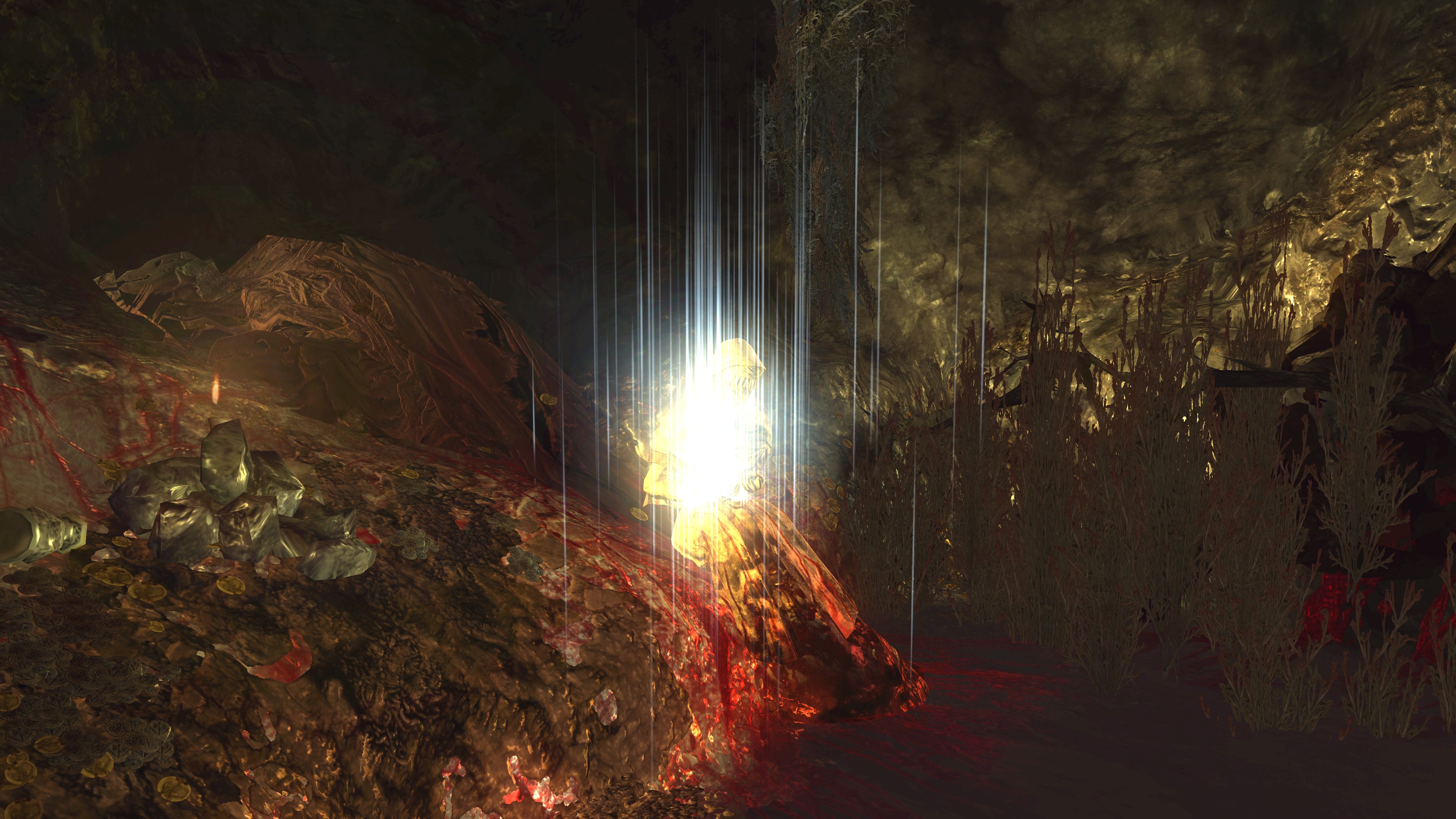 And so, the valley became a living hell. A number of men have been impaled upon long pikes with many metal bits jabbed into them. As if that was tortuous enough, these corpses have been set aflame to light various areas of the valley in lieu of torches, especially in the area directly leading up to Astraea’s temple. Moreover, several of the twisted residents we face use long firelit pikes, leaving no doubt to who caused this. If there were any men who didn’t convert to the worship of the maiden, they met a tortuous end soon enough — and not just them. More than just have her child snatched away as the localization iterates, the filthy woman states that both she and her son will be attacked if they are spotted by Astraea’s followers. The two of them weren’t alone either, as none of the other locals still alive are women and children, only the male zealots and the dark spirit of a cannibal in the swamp. The Nexus Archstone text further reveals that anyone who happens to wander into the valley will also be attacked. The land has been taken over by a mob of “depraved” fanatics killing anyone including each other, leaving ominous implications for the rotten flesh fueling their campfires.