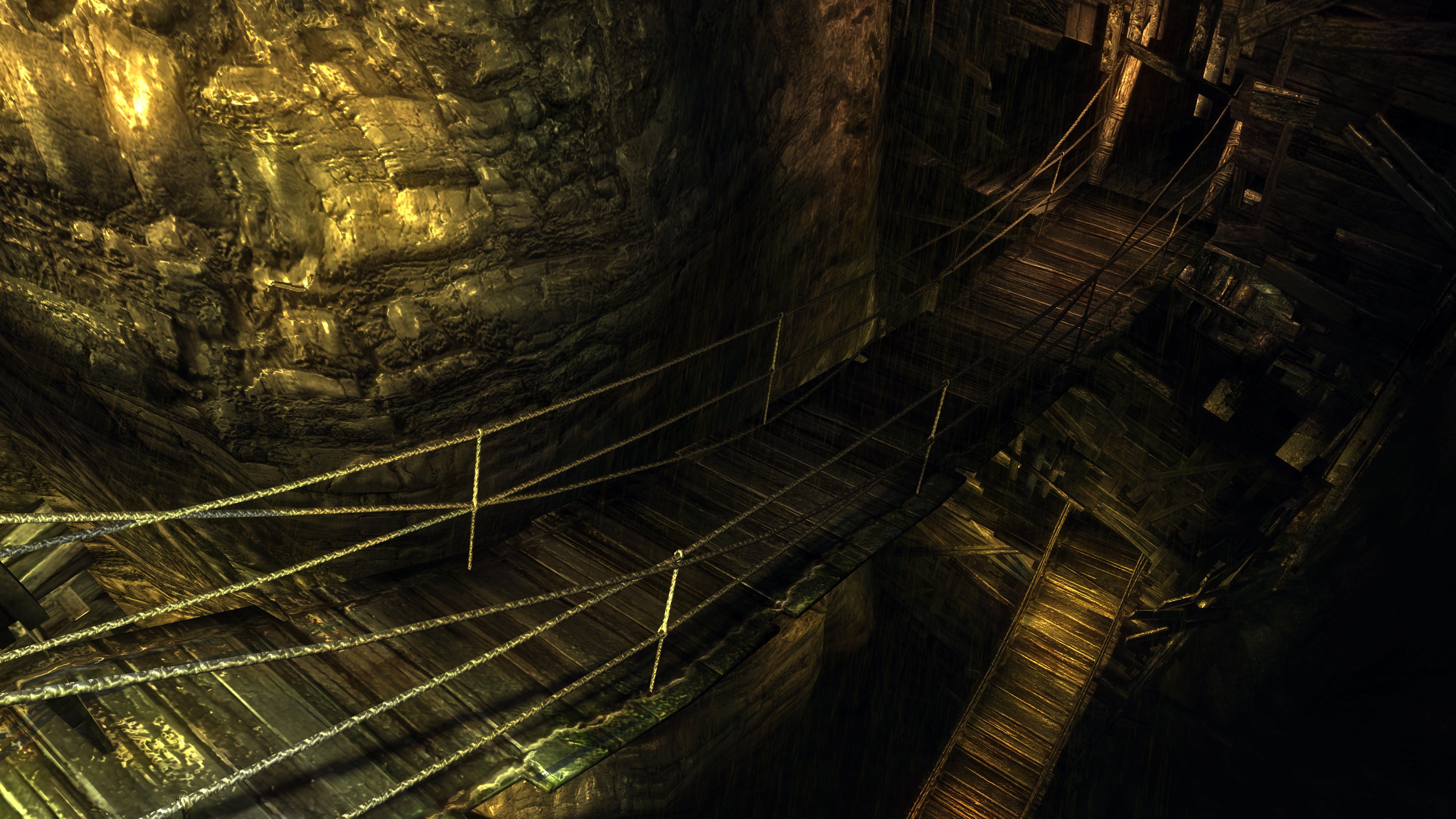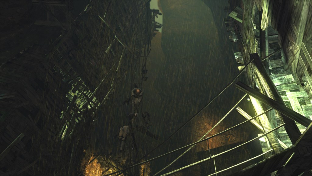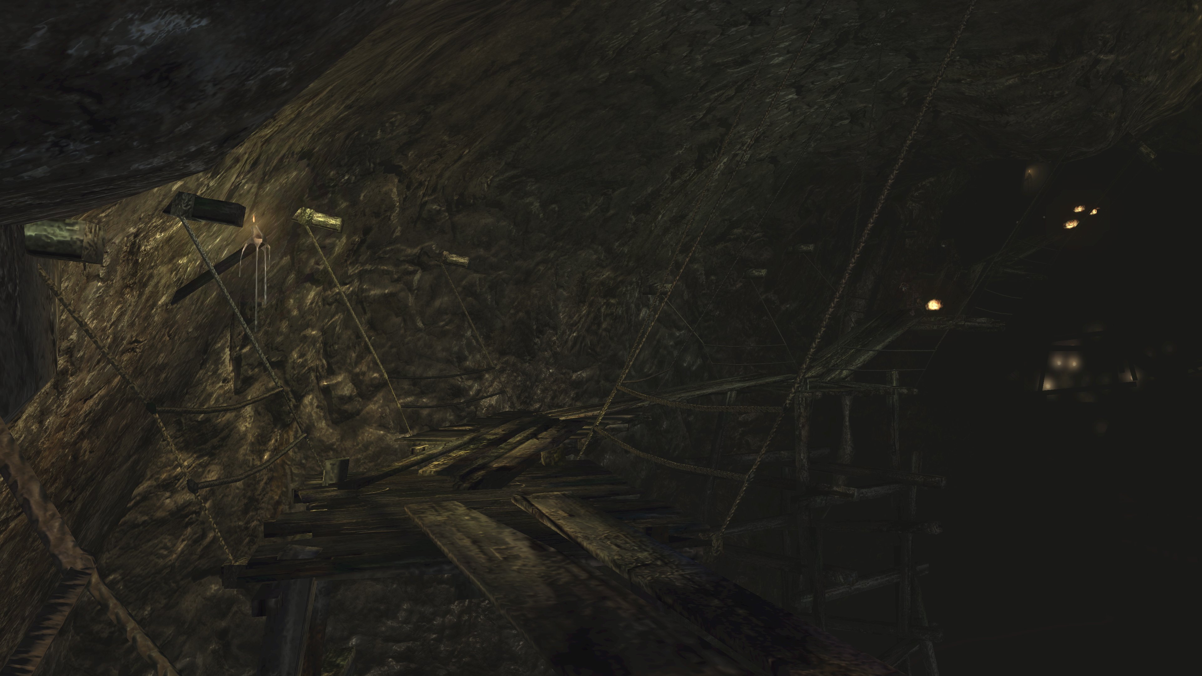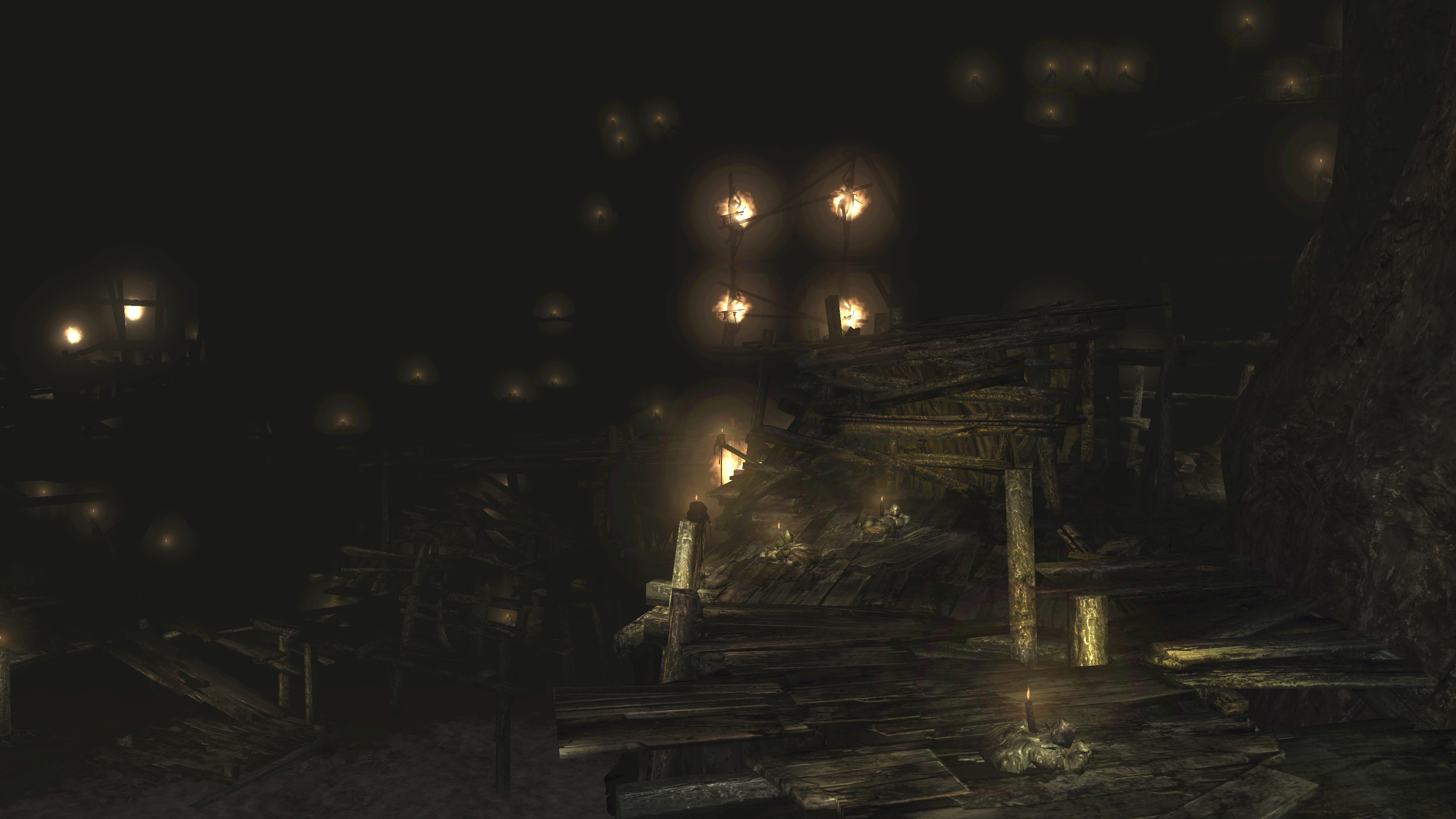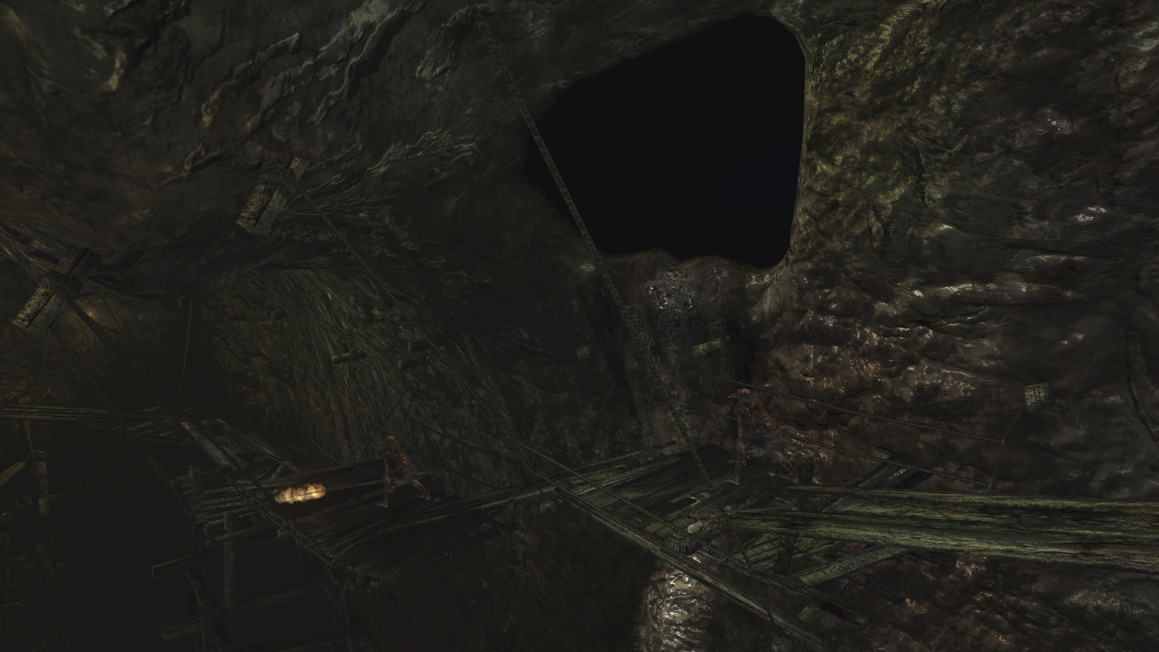 Nature has been corrupted by man’s discarded pollution. The valley serves as proof that cleansing ourselves doesn’t eliminate these impurities, only diverts them elsewhere to fester. This includes man itself. The filthy woman describes the valley’s rot specifically as “human or otherwise” in her Japanese dialogue. Indeed, we come across plenty in the gorge — people who have built themselves homes and bridges out of the leftover materials in the swamp as evidenced by the small boats commonly docked by the trash islands. They have settled their own little village in the valley, and based on the Archstone used to reach it, they are descendants of the destitute nomads whose chief received one such stone. This begs the question: Who were these wandering poor and why did they apparently end up settling in this deathtrap? The answer lies in the old ring found among the trash down there. In a similar vein to the Graverobber’s Ring, its sapphire gem suppresses the body’s presence, making it difficult for others to detect the wearer — thus appropriately called the Thief’s Ring. These were criminals.