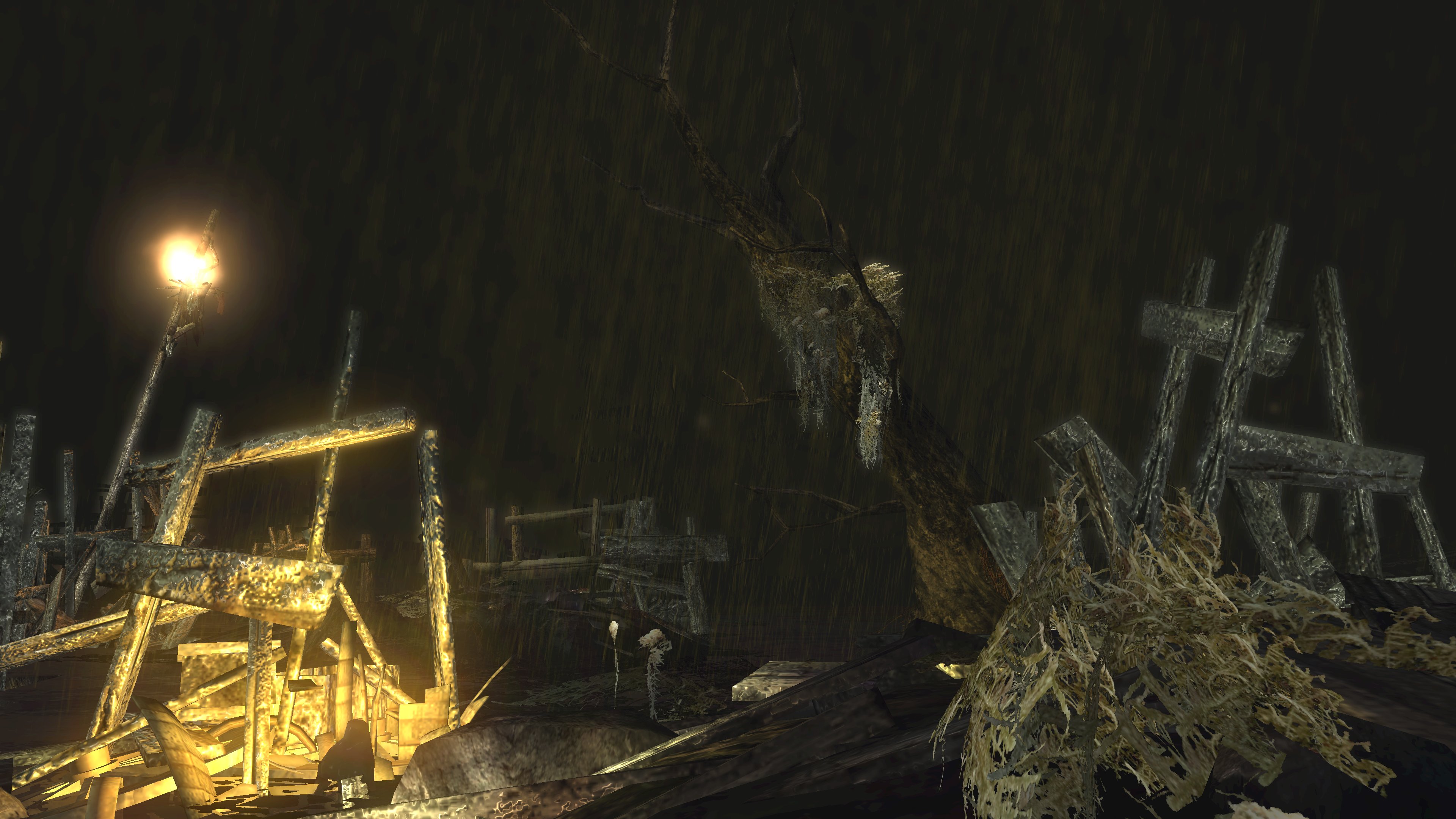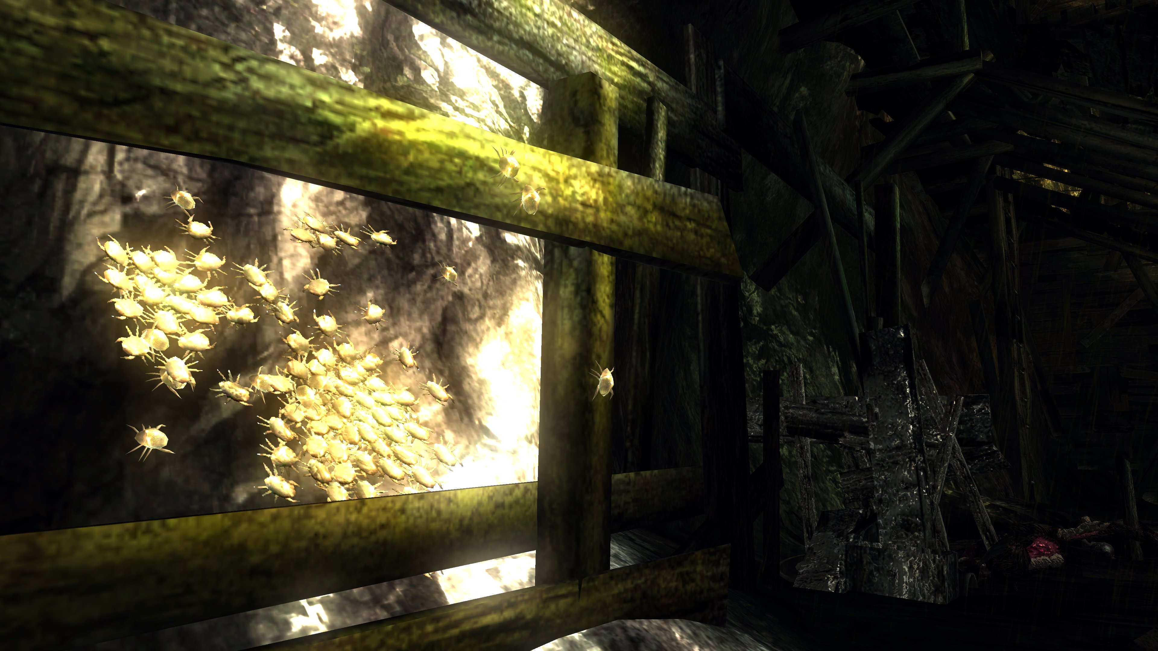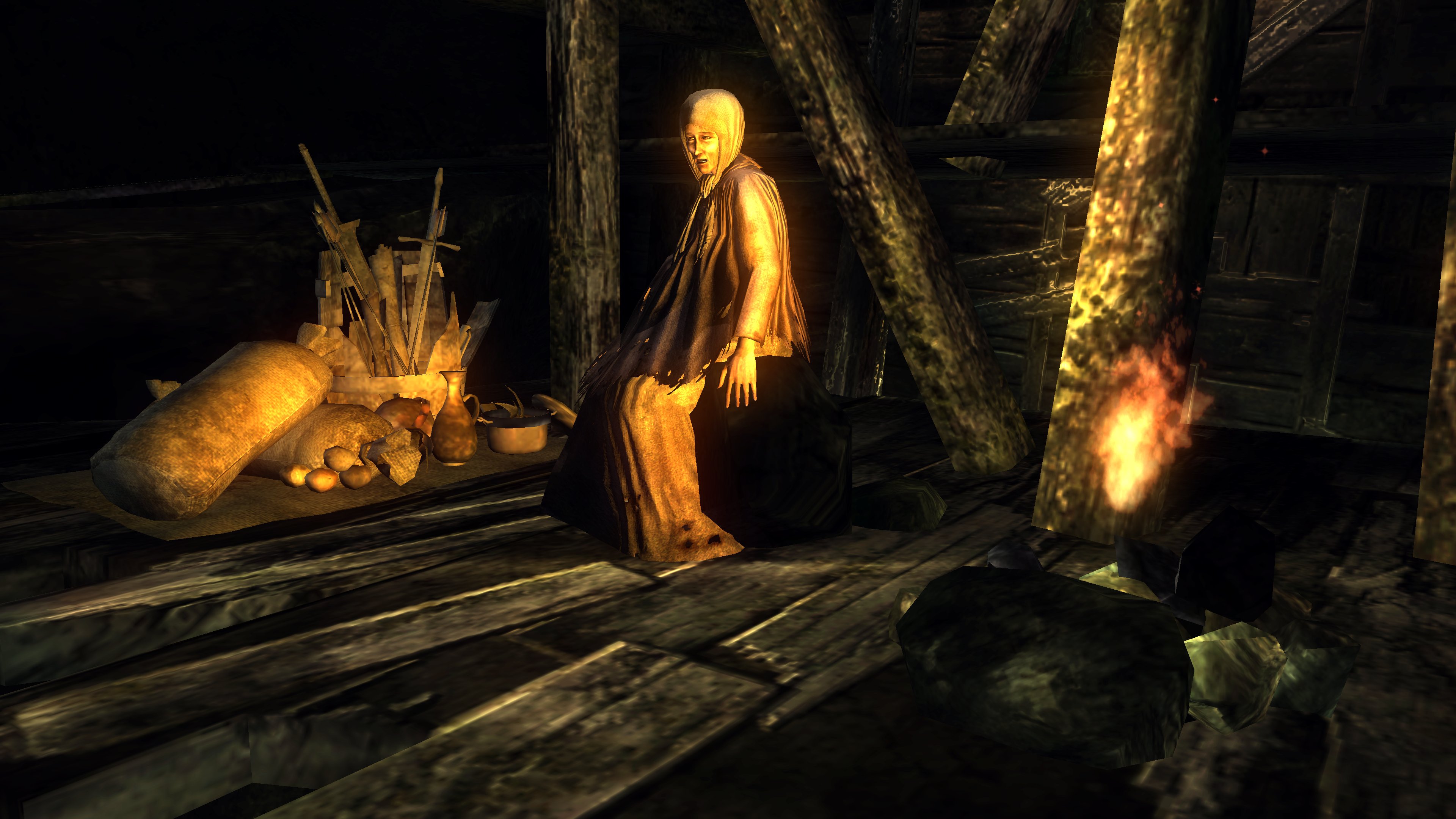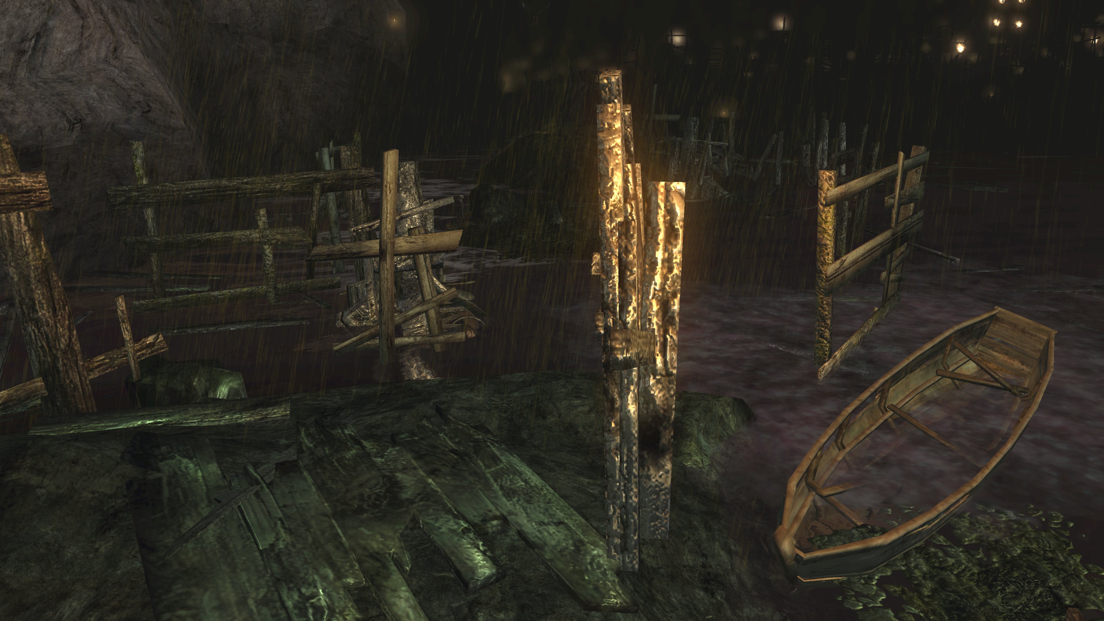Although it may be their safe harbor from the rest of the world, it is still not an easy life down there. Their village is shoddily constructed at best; their beds, simple piles of plants or hay, devoid of any luxuries. Even though they built their village to live above the squalor, ramshackle homes don’t stop all the poison biters, bloodsuckers, and plague spreaders from infesting them. These deadly afflictions are part and parcel to living there, making the lotuses that the filthy woman promotes for sale a necessity to survive. And based on her inventory and the boats lying around the swamp, the villagers spend their days scavenging whatever scraps and junk they can find to eat or trade amongst themselves. This pathetic economy leaves most ill and hungry as exemplified by the filthy woman’s son. Since she speaks as if he is there with her while nowhere to be seen, some conclude that the woman is either lying or delusional. However, a cut model of a malnourished boy dressed in rags indicates that her son was originally intended to appear in-game, so he was likely removed due to concerns about players electing to kill children. We can thus assume that she is not a horrible liar when it comes to the “child” accompanying her.