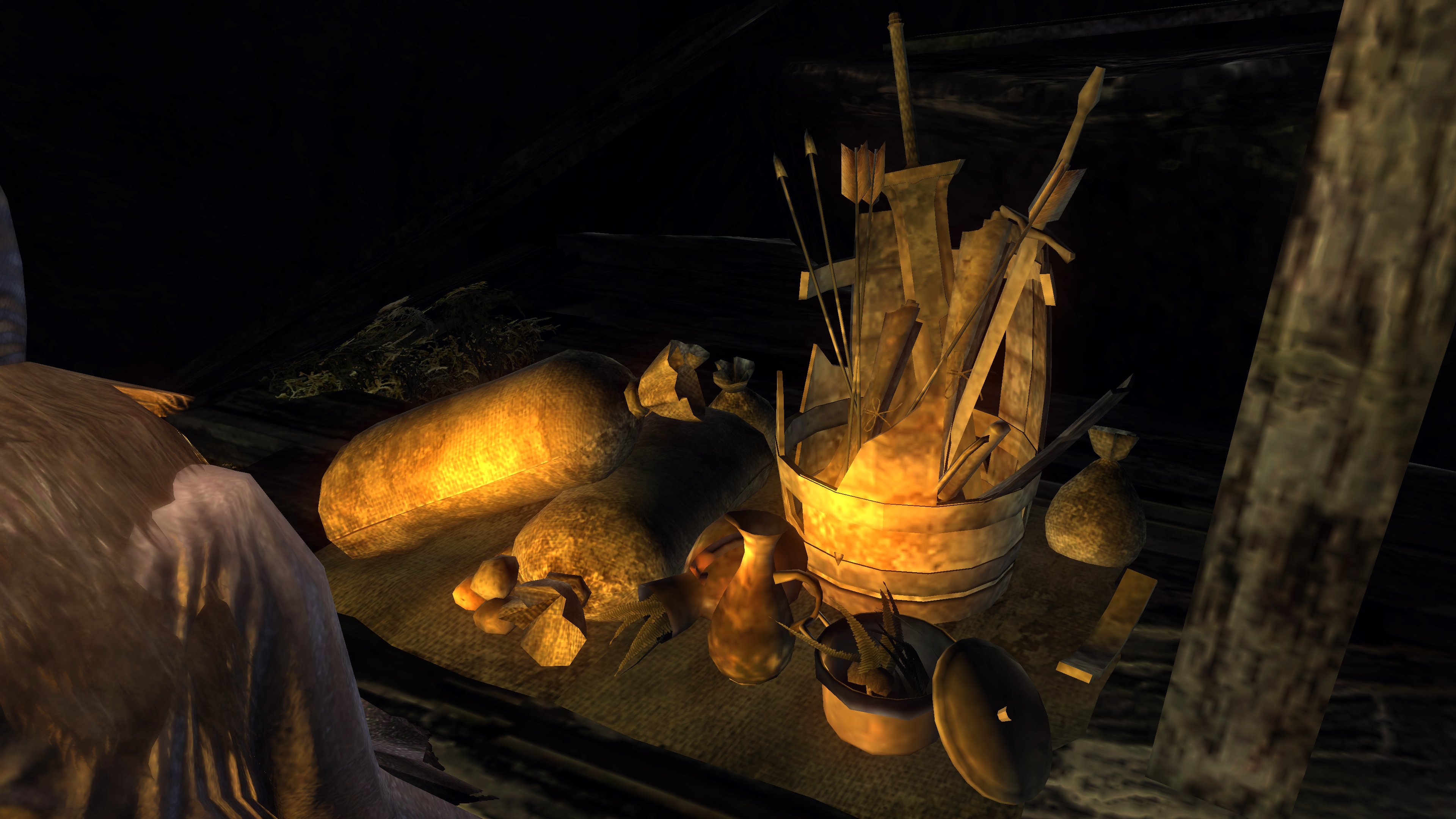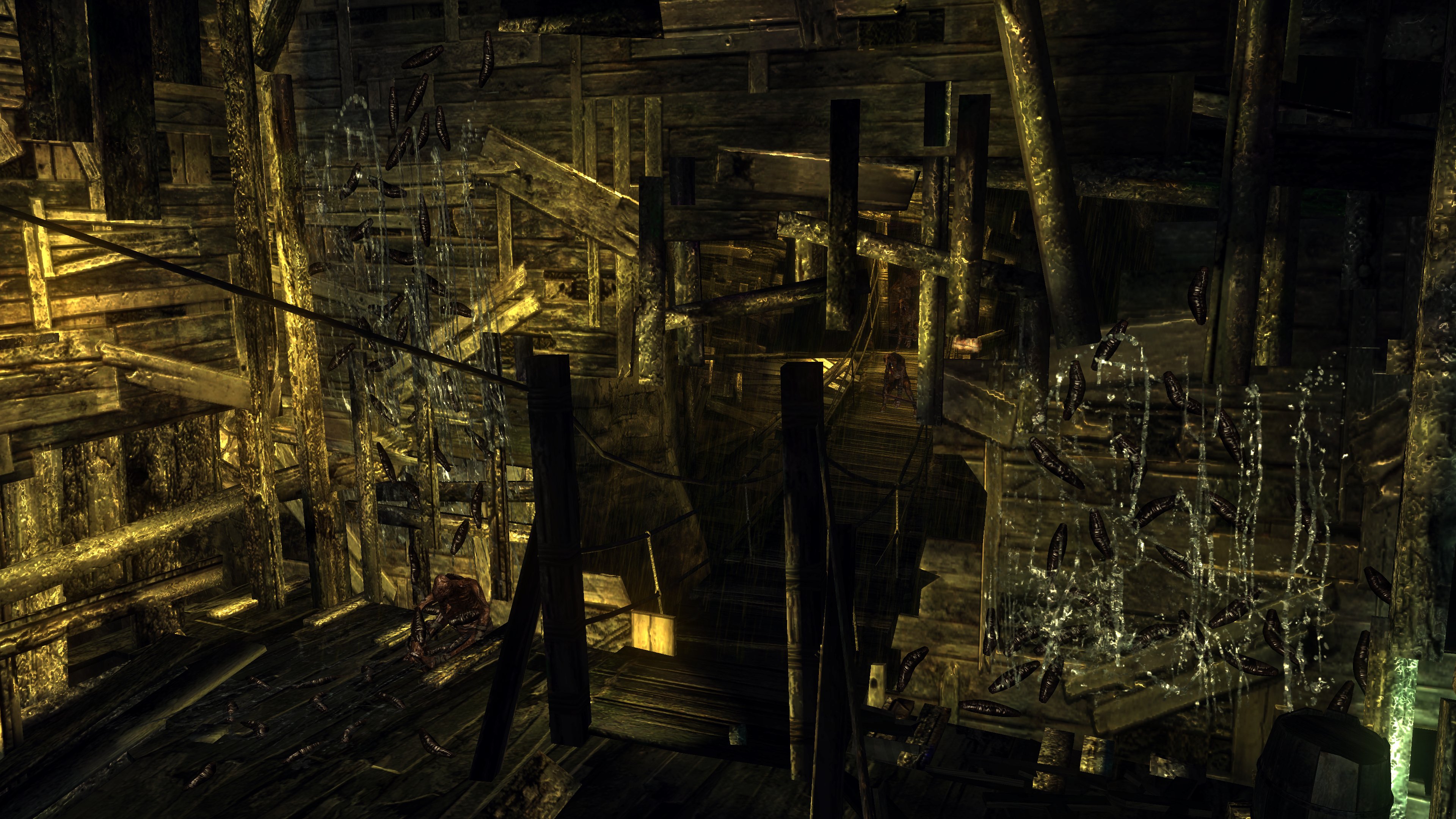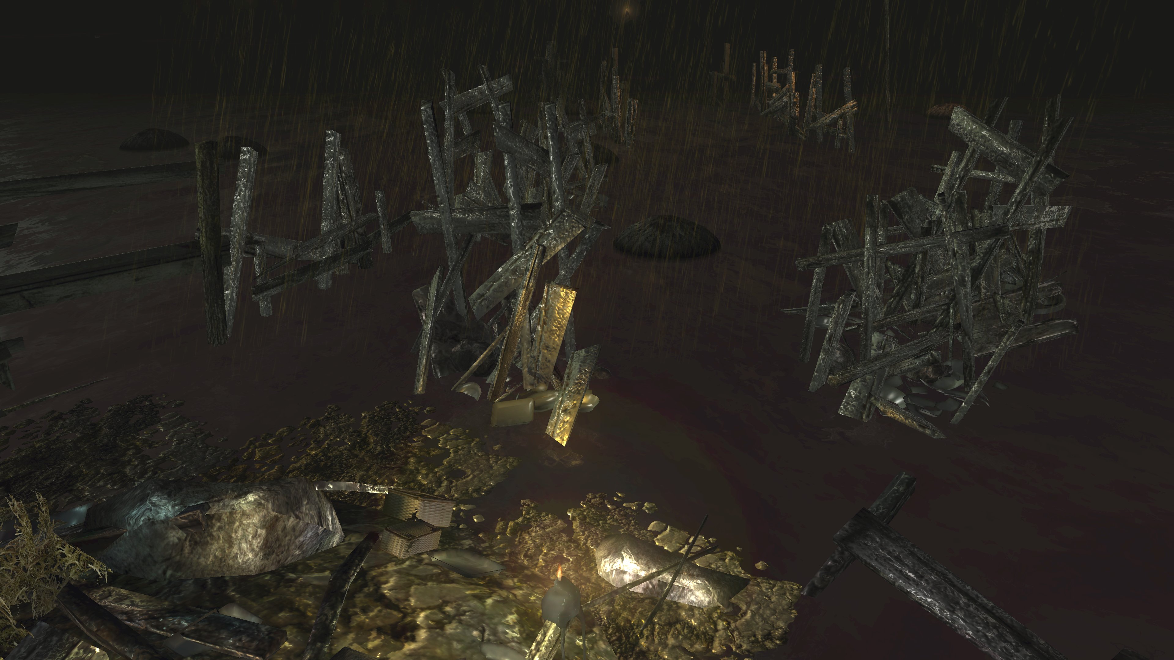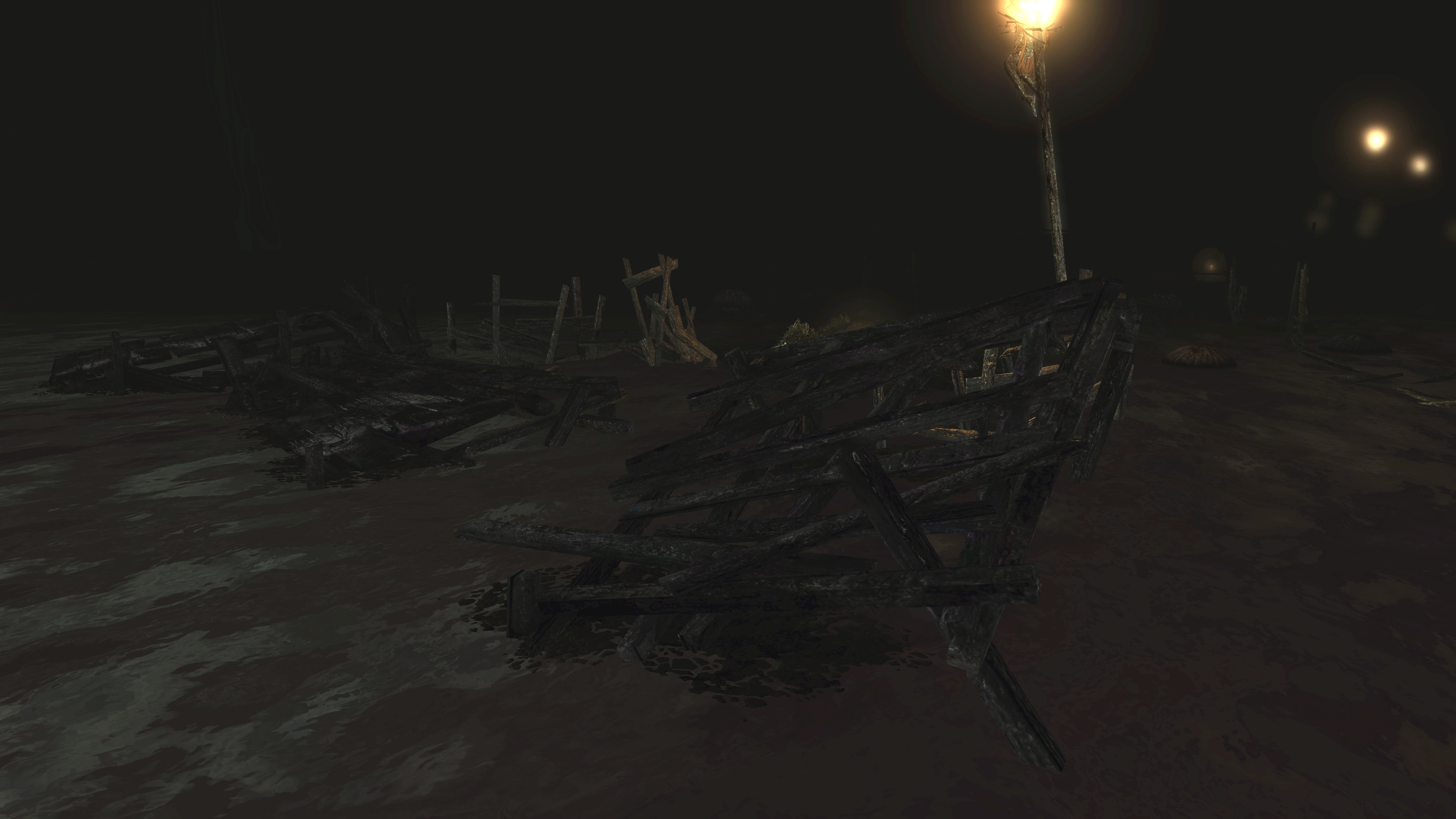 Although it may be their safe harbor from the rest of the world, it is still not an easy life down there. Their village is shoddily constructed at best; their beds, simple piles of plants or hay, devoid of any luxuries. Even though they built their village to live above the squalor, ramshackle homes don’t stop all the poison biters, bloodsuckers, and plague spreaders from infesting them. These deadly afflictions are part and parcel to living there, making the lotuses that the filthy woman promotes for sale a necessity to survive. And based on her inventory and the boats lying around the swamp, the villagers spend their days scavenging whatever scraps and junk they can find to eat or trade amongst themselves. This pathetic economy leaves most ill and hungry as exemplified by the filthy woman’s son. Since she speaks as if he is there with her while nowhere to be seen, some conclude that the woman is either lying or delusional. However, a cut model of a malnourished boy dressed in rags indicates that her son was originally intended to appear in-game, so he was likely removed due to concerns about players electing to kill children. We can thus assume that she is not a horrible liar when it comes to the “child” accompanying her.