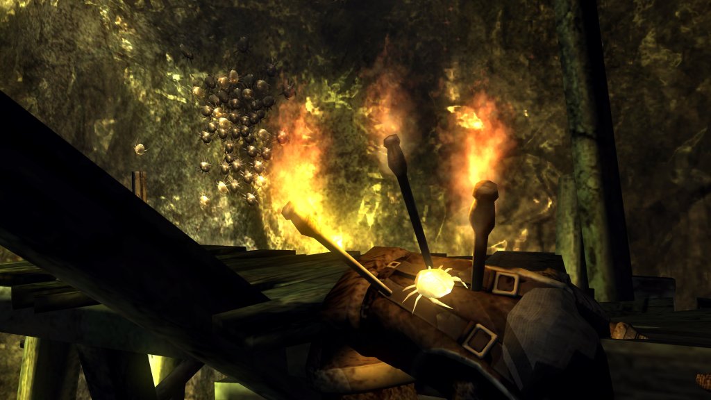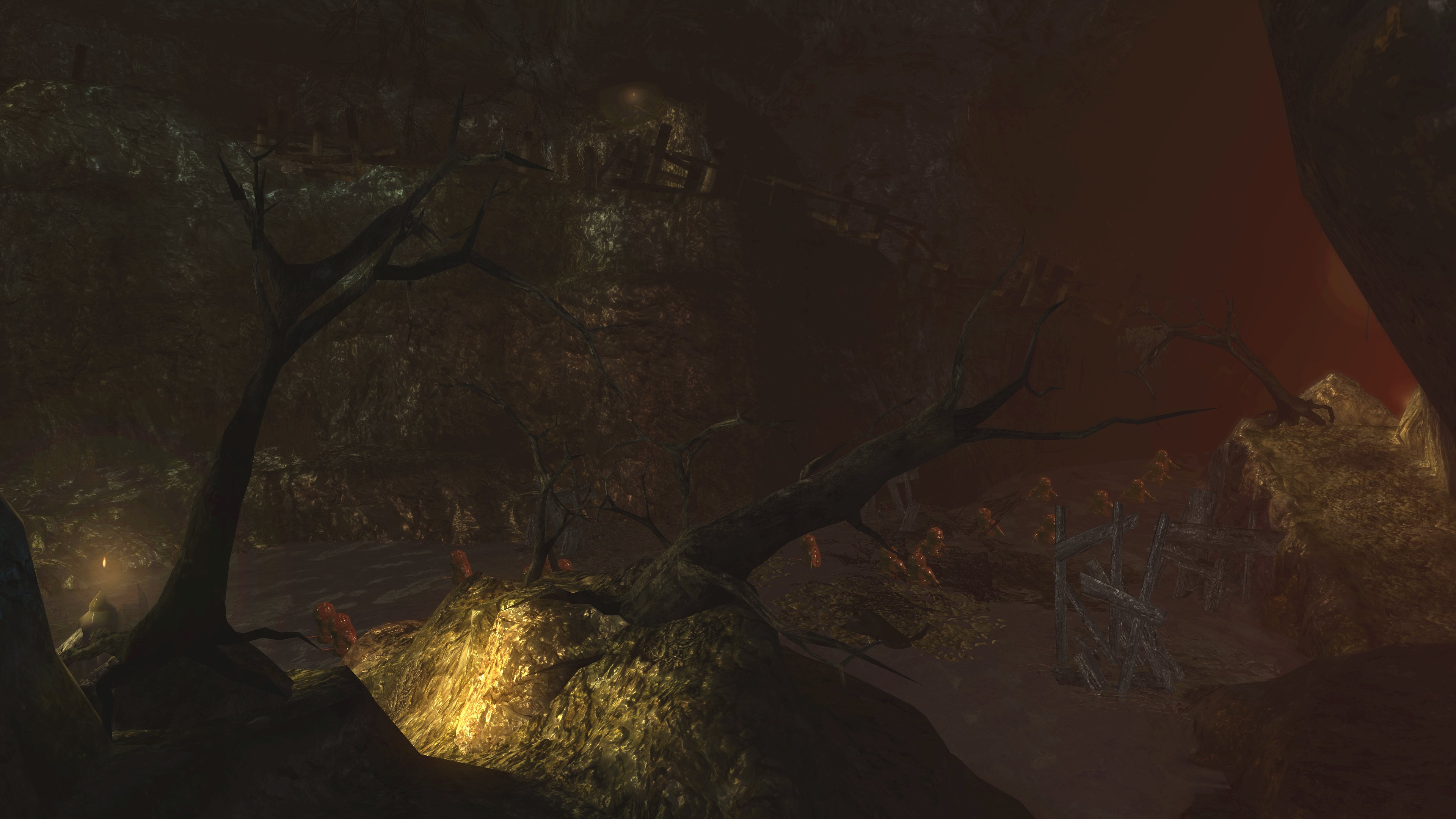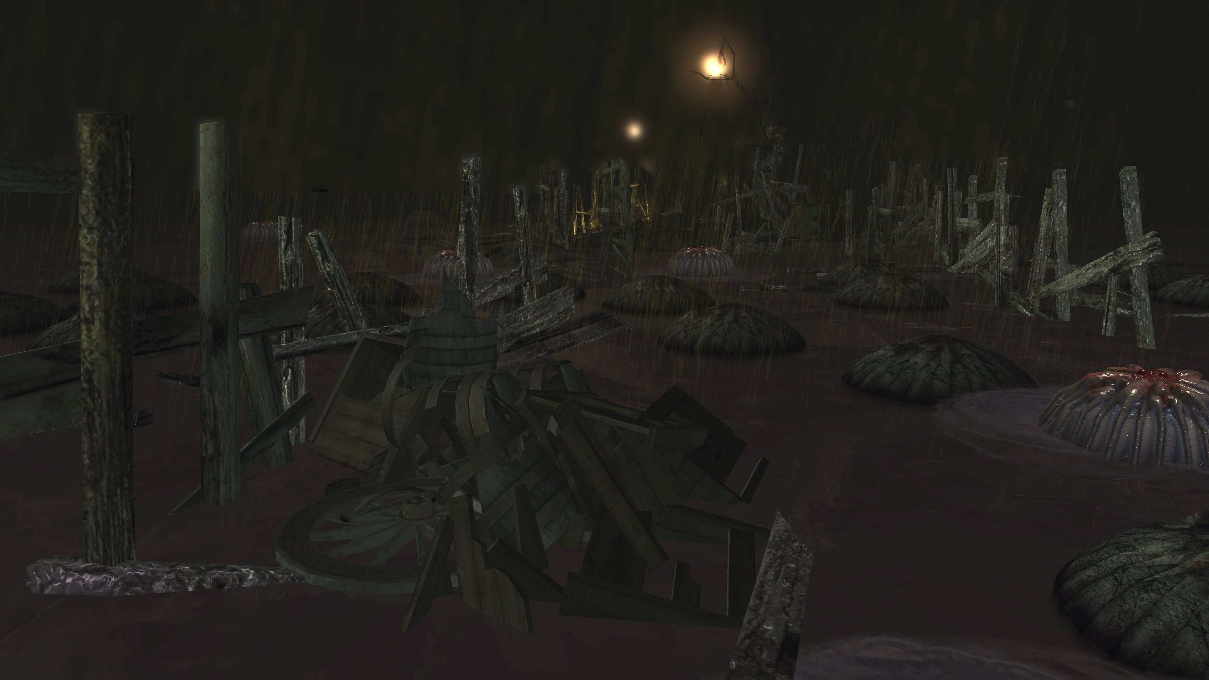 In the depths of the swamp inhabited by poison jellyfish and giant slugs is a graben that deeply swallows all uncleanliness and was made a temple of rotten trees that reveres a demon. The needy men who willingly offer souls there are freed from thought, which brings pain.