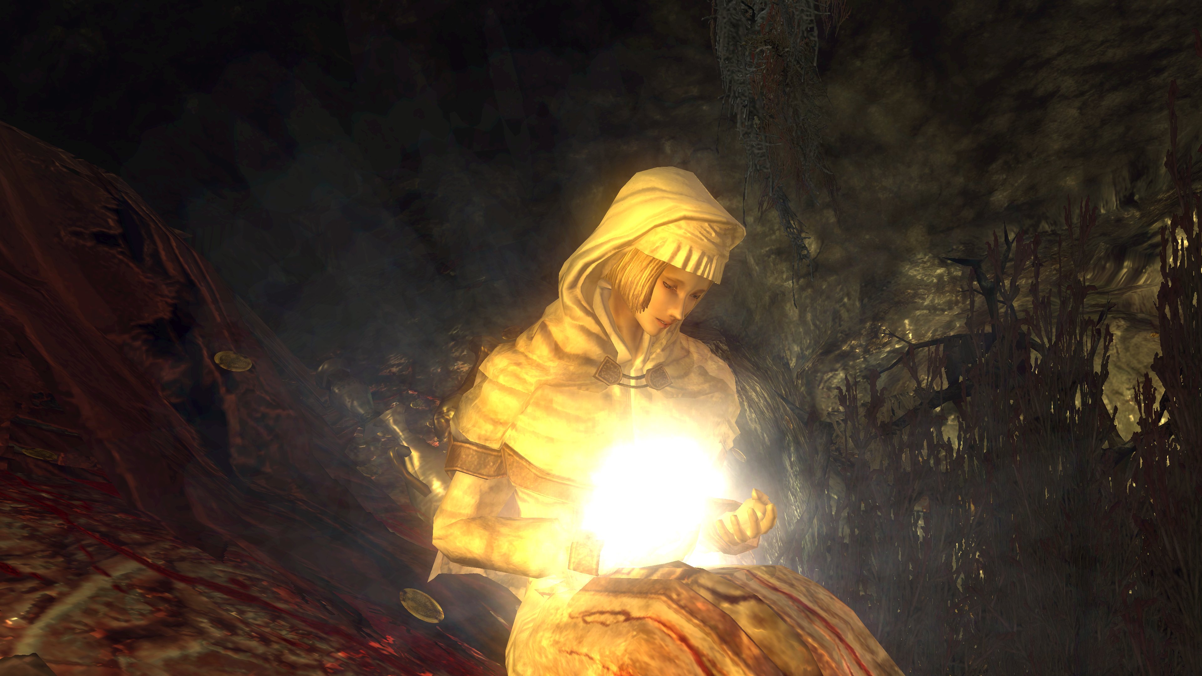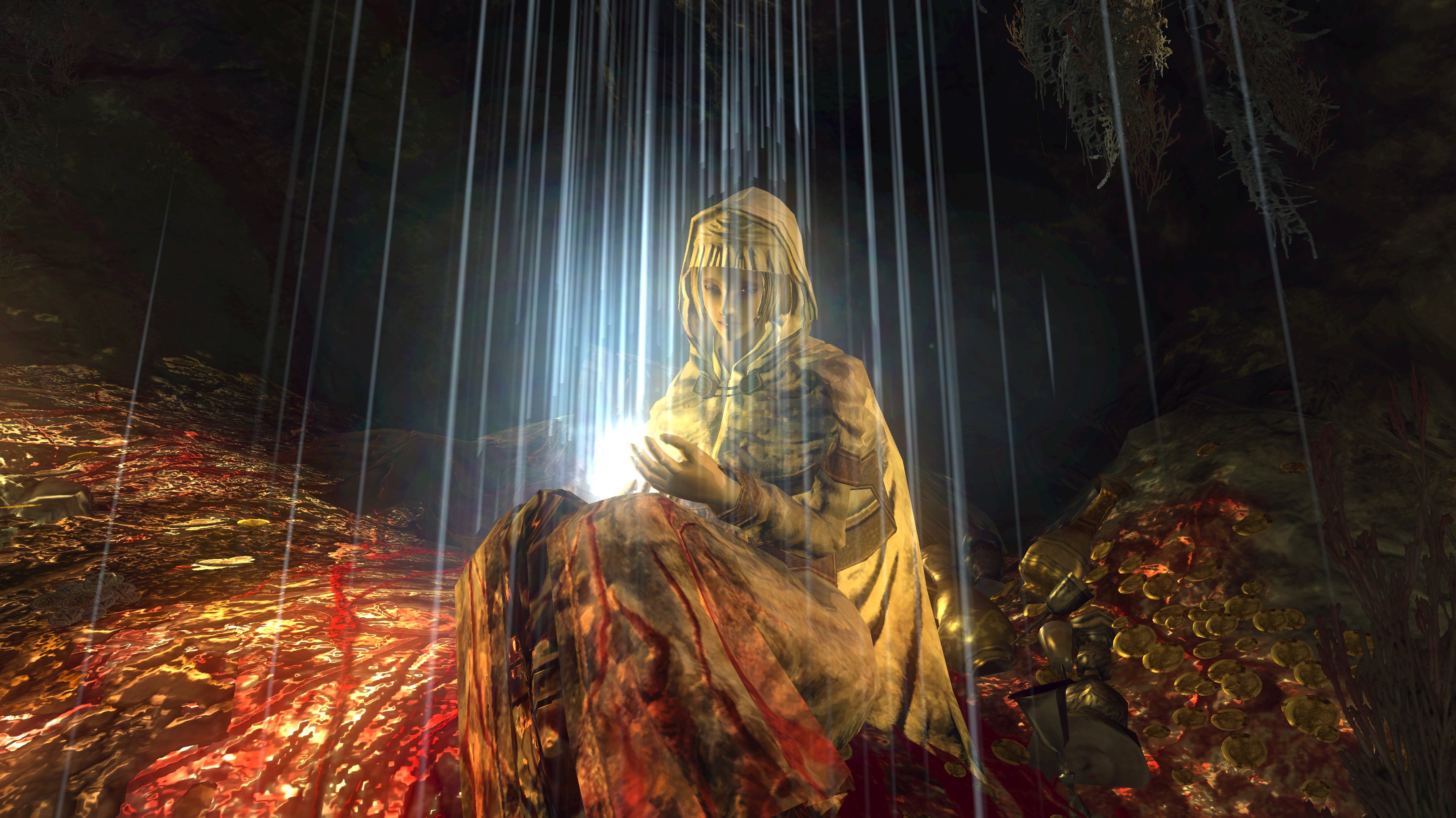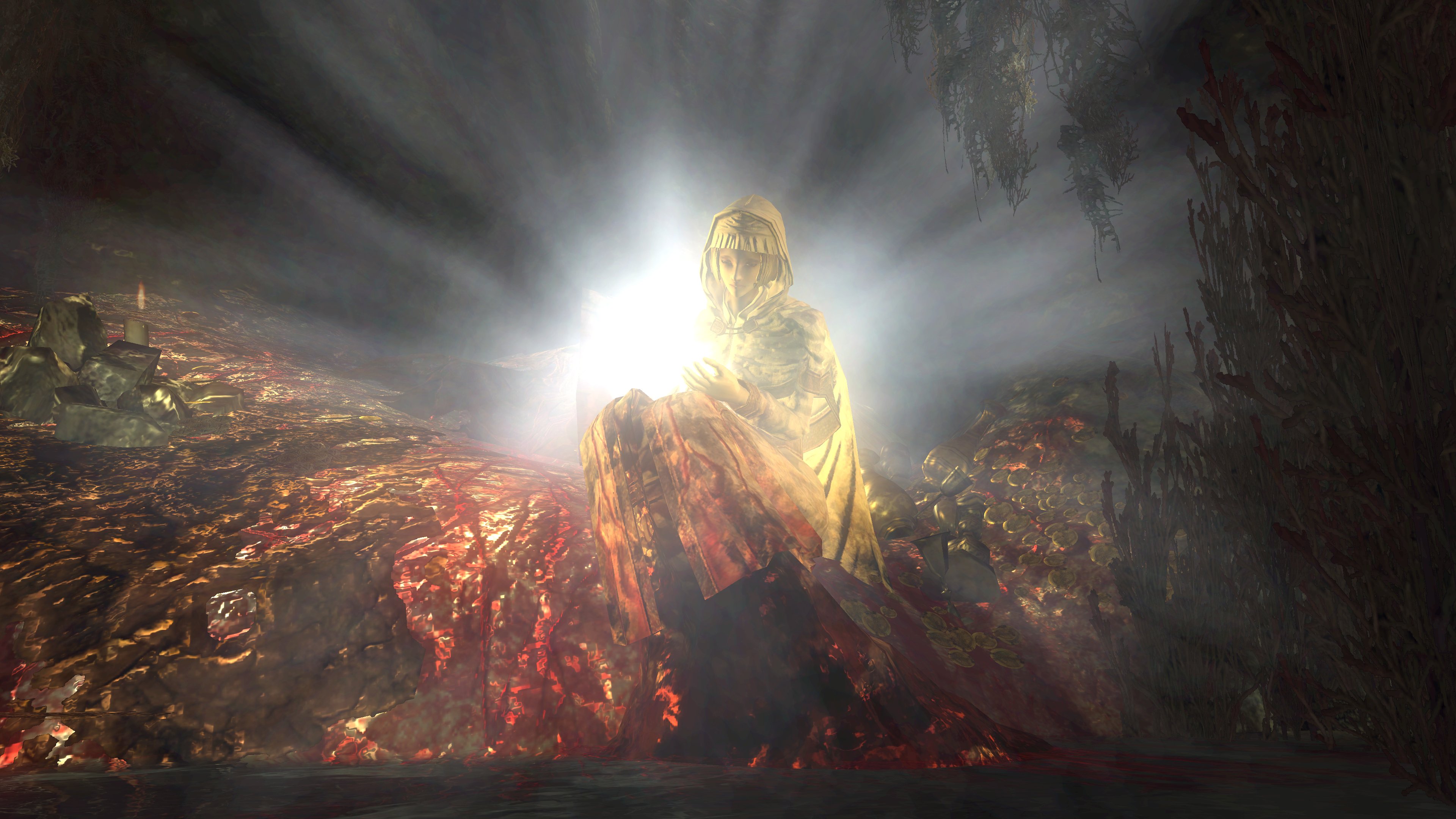 The “sincerest” Sixth Saintess. She was accompanied by the dark silver knight Gar Vinland and embarked on a relief journey. She headed for Boletaria in the early period and was last seen in the Rotten Valley.