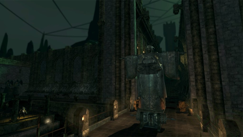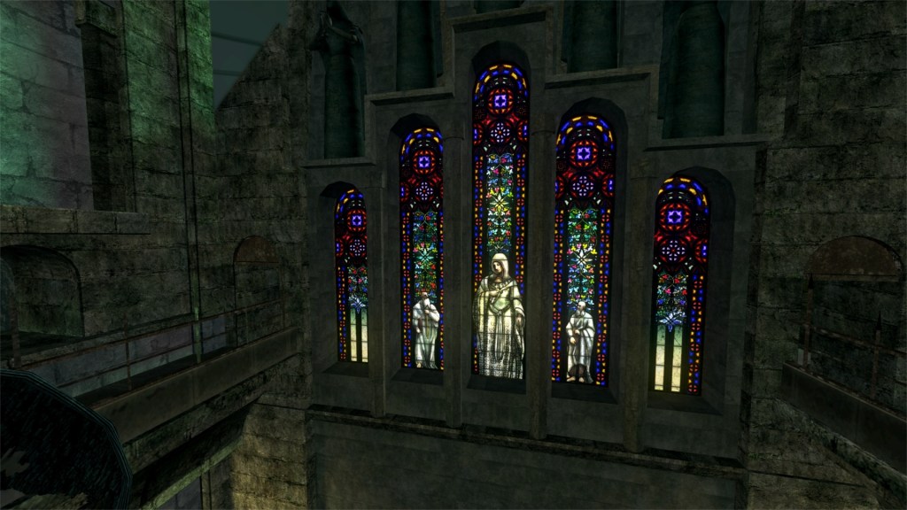 The Prison of Hope is just one of several adjacent facilities, though the path to them have been locked or reduced to rubble. The adjoining church’s iconography of the Queen as a holy woman dressed in white robes dates this zone to the Classical Era. Moreover, her left hand clutches a blade close to her bosom, again, representing royal authority as well as justice — making the Queen analogous to Lady Justice or the goddess Themis of Greek mythology in this context. In other words, attendees to this church would be presented with their ruler as the divine arbiter of men’s fate and harsh punisher of sinners. This is more than appropriate for a prison church and implies that such religious services have traditionally been held for Latrian convicts. Even if only as an aesthetic, it is doubtful that an institution as militant as the temple would approve of the Queen replacing God as the divine authority. But either way, Latria didn’t seem to suffer radical change compared to other civilizations, which is probably why it maintained hegemony after Boletaria reached its border.