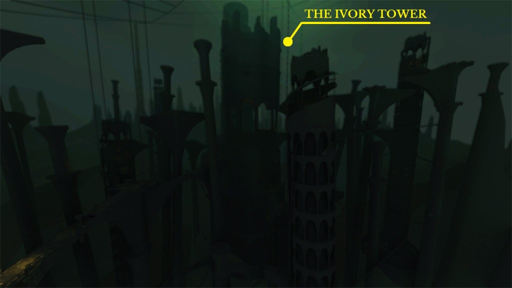None of these irregularities disrupted the system that the elder put in place. The gears of his grudge still turn when we arrive, its malice ultimately outlasting him. Thanks to the deep fog, a bitter old man’s darkest fantasy has become horrifying reality. And while it probably wasn’t inevitable, it is to be expected. Despite their collective work toward the divine, Latrian culture came to revolve around selfish means to self-serving ends. Only one could become or create that ultimate being, after all. Why wouldn’t it devolve into the most unscrupulous individual superseding the rest to their detriment? Ill will can only corrupt vulnerabilities that already exist, and was the old man really the first? Perhaps building the Prison of Hope adjacent to the Ivory Tower is entirely coincidental, but one might question Latria’s original intentions with how perfectly it fits into the elder’s current system. Put in that light, the research facility seems more like a Tower of Babel, reflecting a single tribe’s futile attempt to reach heaven; instead, their arrogance has created hell on earth.