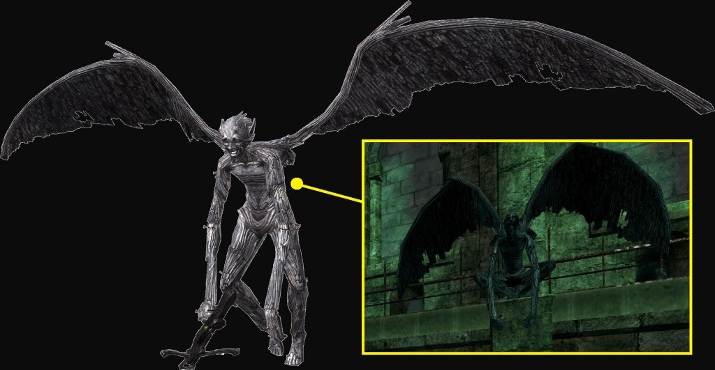 As for these other demons accompanying him, the former noblewoman may be referring to the gargoyles. These creatures are identical to statues decorating Latrian architecture, so their form predates the fog. This makes it possible for demons to manifest in their image from the elder’s memory — one purpose of a gargoyle is to ward off evil, so the old man might have imagined such creatures assisting him in punishing “sinners”. However, killing them always nets us the soul of a nameless warrior or hero, so they seem to instead be the products of his later demon experiments — bringing the actual statues to “life” by embedding them with the souls of slain Latrian warriors. This notion finds further support in the many gargoyles acting as statues until approached or provoked, meaning that those spots were their original homes.