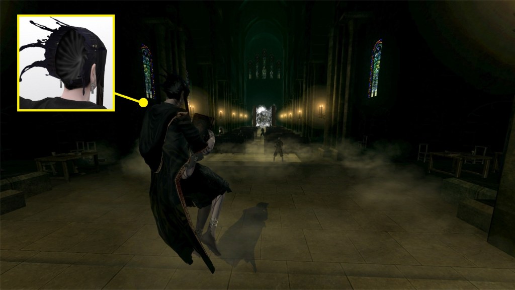 Among her rewards for assisting her, Mephistopheles provides us with a Talisman of Beasts made in the form of the Old One. This suggests that the concealers revere the ancient beast, presumably for its connection to the soul arts. This is reinforced by the society leader also having the Foe’s Ring in her possession. Basically, the society seems to favor acts mirroring the Old One and the soul-harvesting demons it creates, malicious acts — Mephistopheles even considers killing fellow humans over demon souls to be the “obvious” course of action. The parrying dagger that these women wield in lieu of a shield only reinforces this notion. While this penchant for deflecting attacks over blocking them head-on likely serves to reference a physical disparity, the use of a sword highlights an inherently more aggressive disposition among the society’s members.