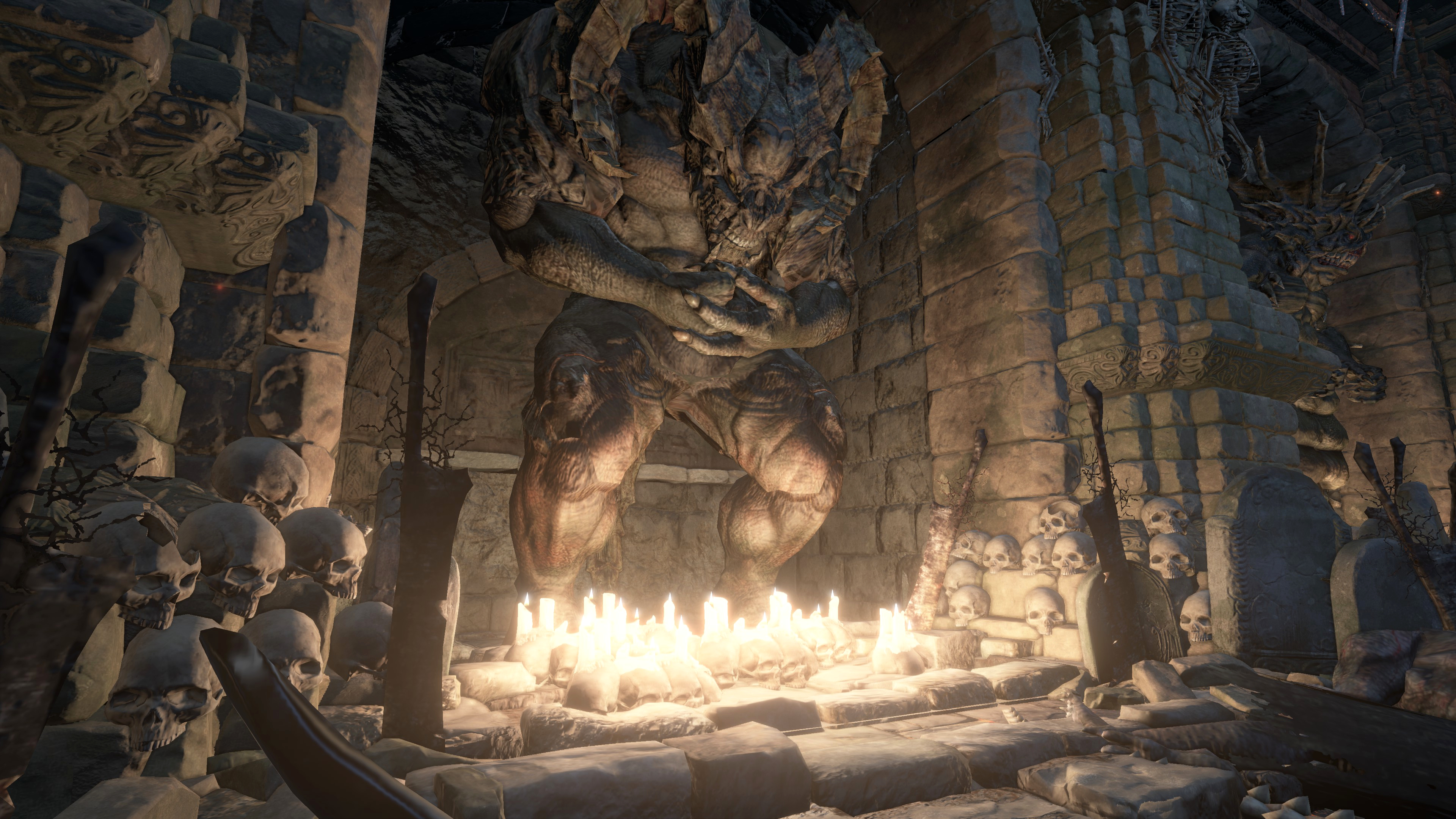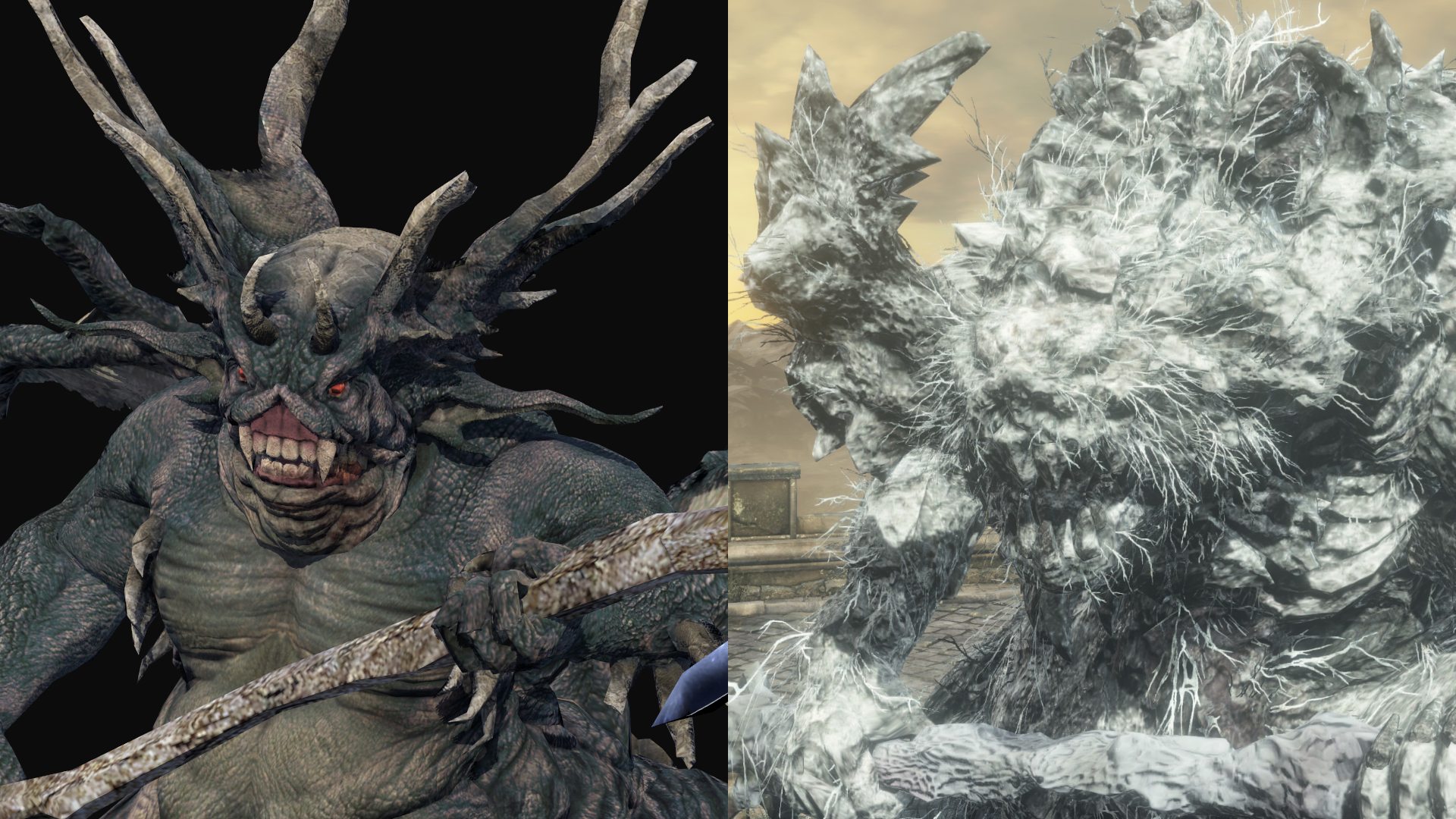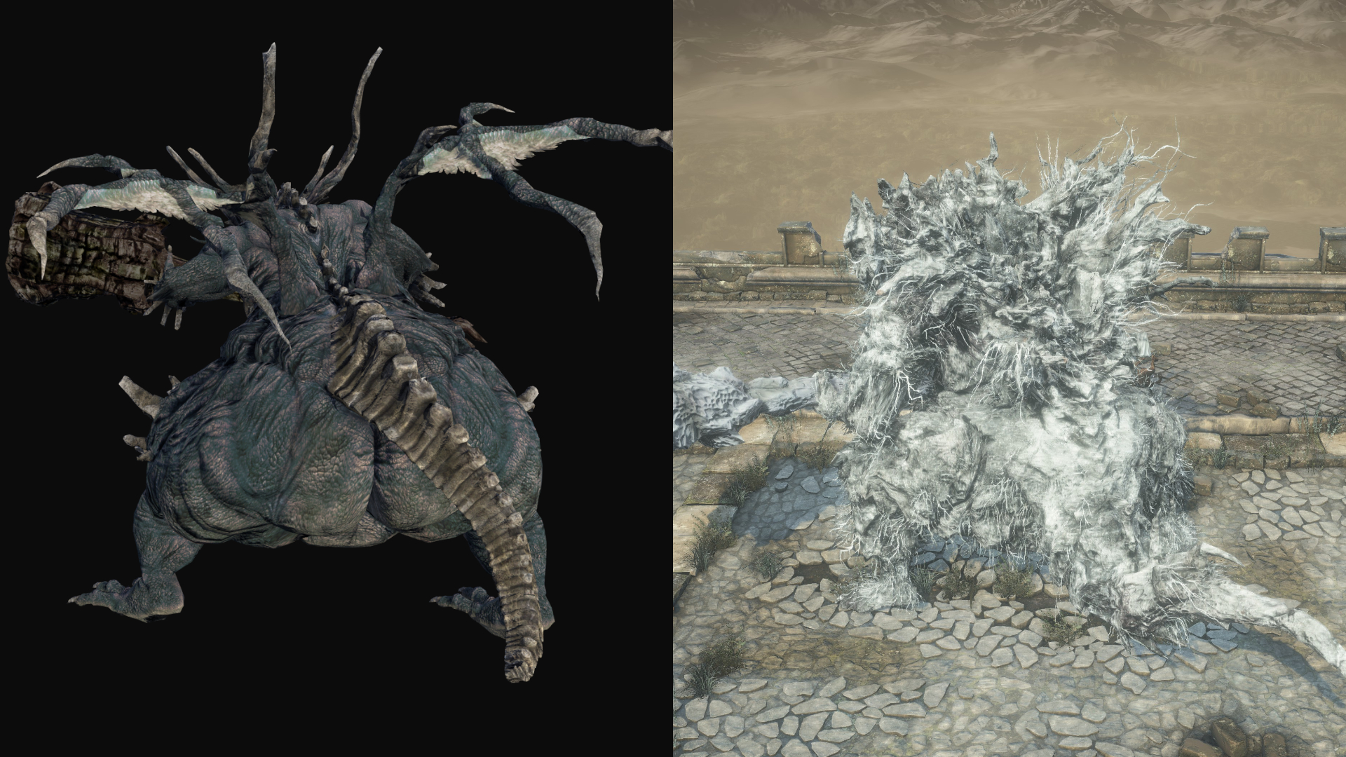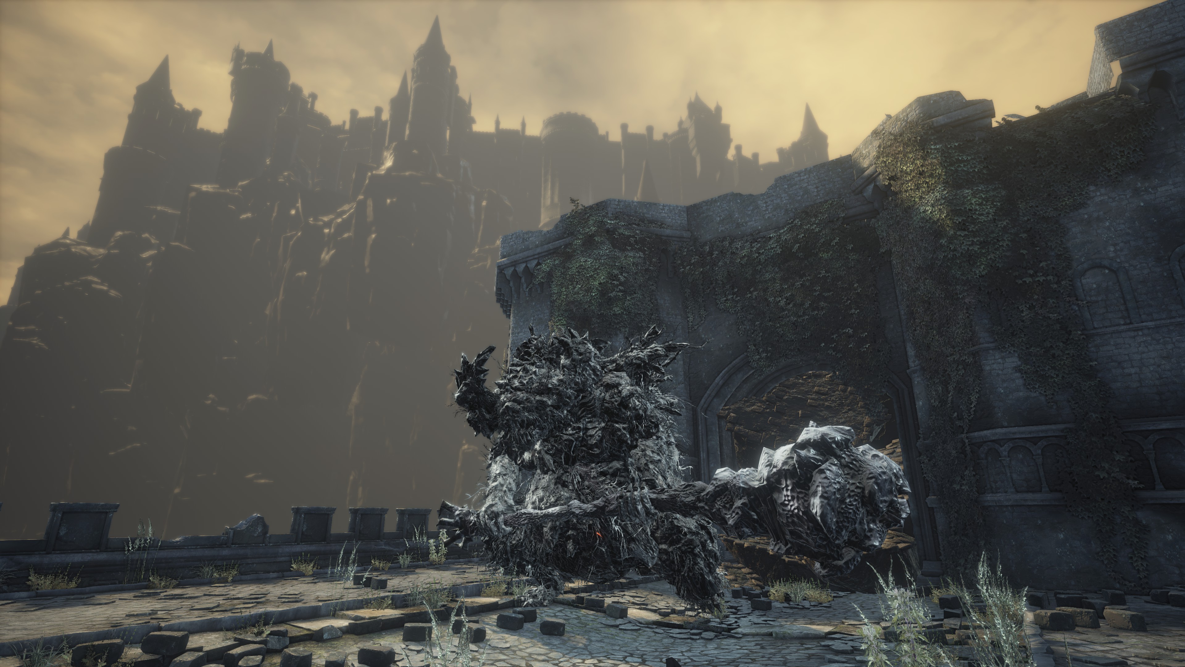 Whatever the cause, the fact remains that the Flame of Chaos met its end, leading to the demons it bore becoming a dying race. While “stray demons” were present in DS1, the Stray Demon of DS3 alone has lost its smolder, and only recently based on the corpses with charred humanity surrounding it on Lothric’s bridge. It is also the only one to spend a prolonged period far from home since the Old Chaos’ destruction, excluding the batwing demons who have long stopped relying on Chaos for power. The Flame of Chaos is the First Flame for the grotesque life spawned from a seedbed, so what we see with the demons parallels what we see with life derived from the First Flame — the text for Chaos Bed Vestige even notes mankind’s similar relationship with fire. And what relationship do we see? As Flame’s effect upon this stagnant world wanes, many human bodies petrify. In this way, the Stray Demon’s form can also be attributed to Chaos going out, bonds between the vestiges of chaos fire that the demons carry naturally weakened. In an environment devoid of its First Flame, the demons’ own fire eventually burned out.