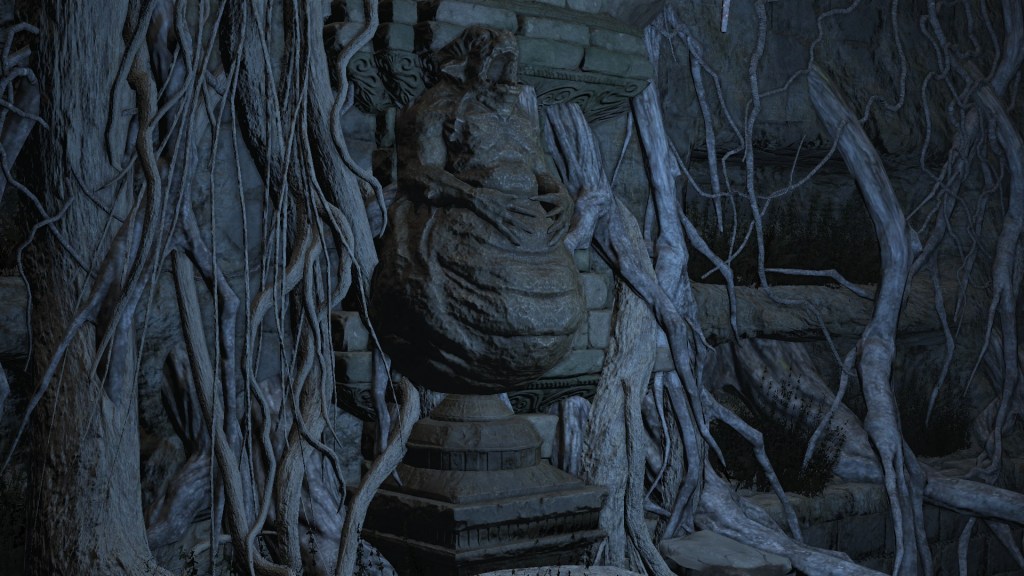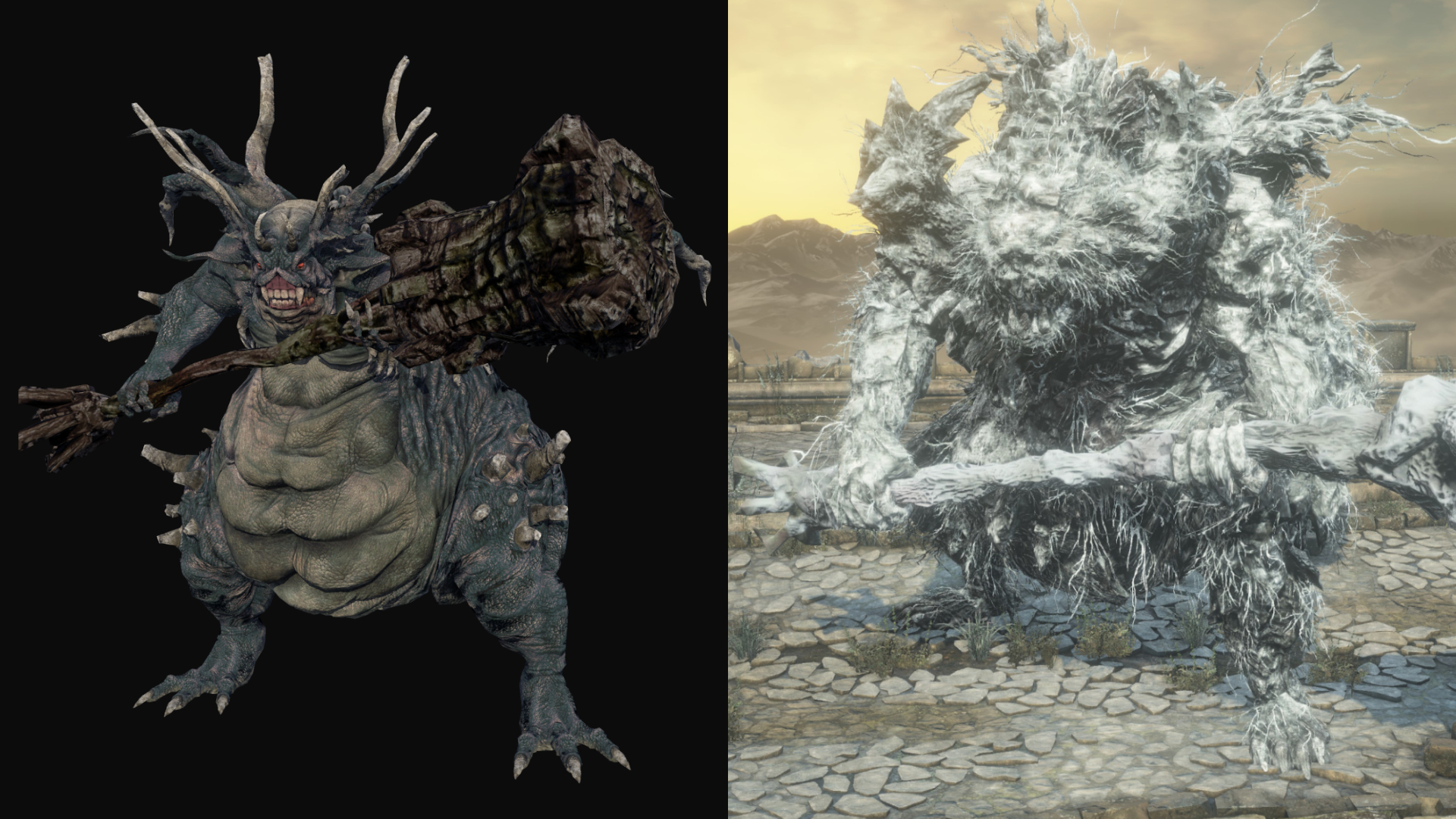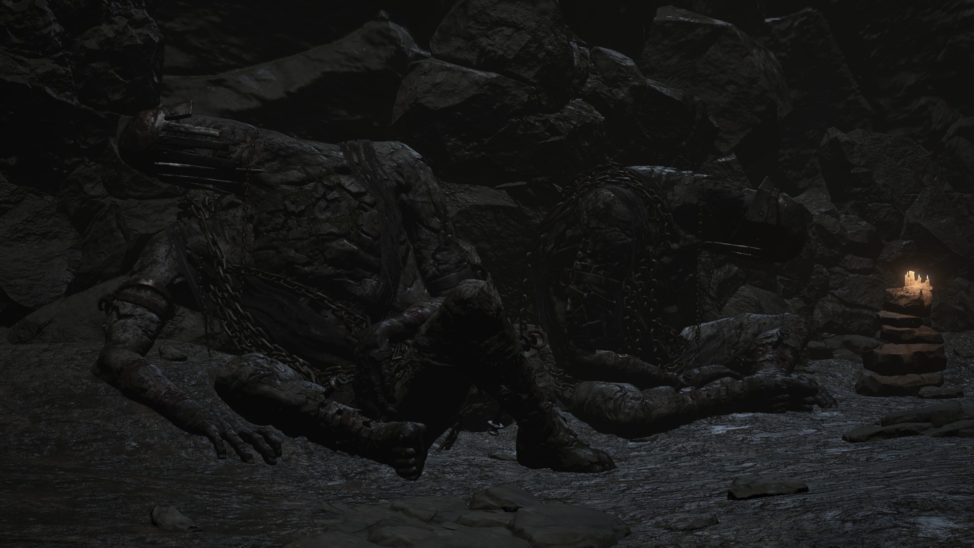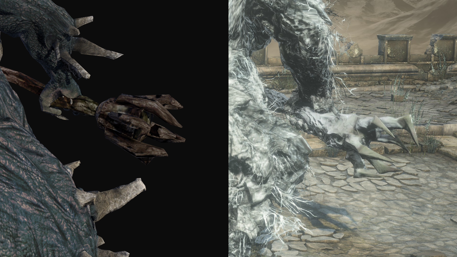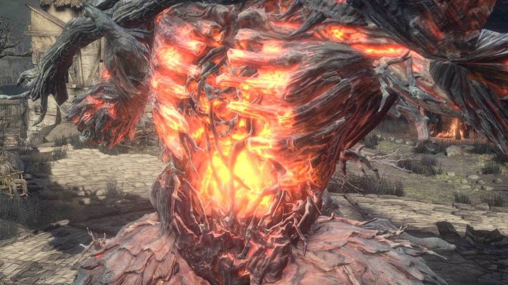 Whatever the cause, the fact remains that the Flame of Chaos met its end, leading to the demons it bore becoming a dying race. While “stray demons” were present in DS1, the Stray Demon of DS3 alone has lost its smolder, and only recently based on the corpses with charred humanity surrounding it on Lothric’s bridge. It is also the only one to spend a prolonged period far from home since the Old Chaos’ destruction, excluding the batwing demons who have long stopped relying on Chaos for power. The Flame of Chaos is the First Flame for the grotesque life spawned from a seedbed, so what we see with the demons parallels what we see with life derived from the First Flame — the text for Chaos Bed Vestige even notes mankind’s similar relationship with fire. And what relationship do we see? As Flame’s effect upon this stagnant world wanes, many human bodies petrify. In this way, the Stray Demon’s form can also be attributed to Chaos going out, bonds between the vestiges of chaos fire that the demons carry naturally weakened. In an environment devoid of its First Flame, the demons’ own fire eventually burned out.