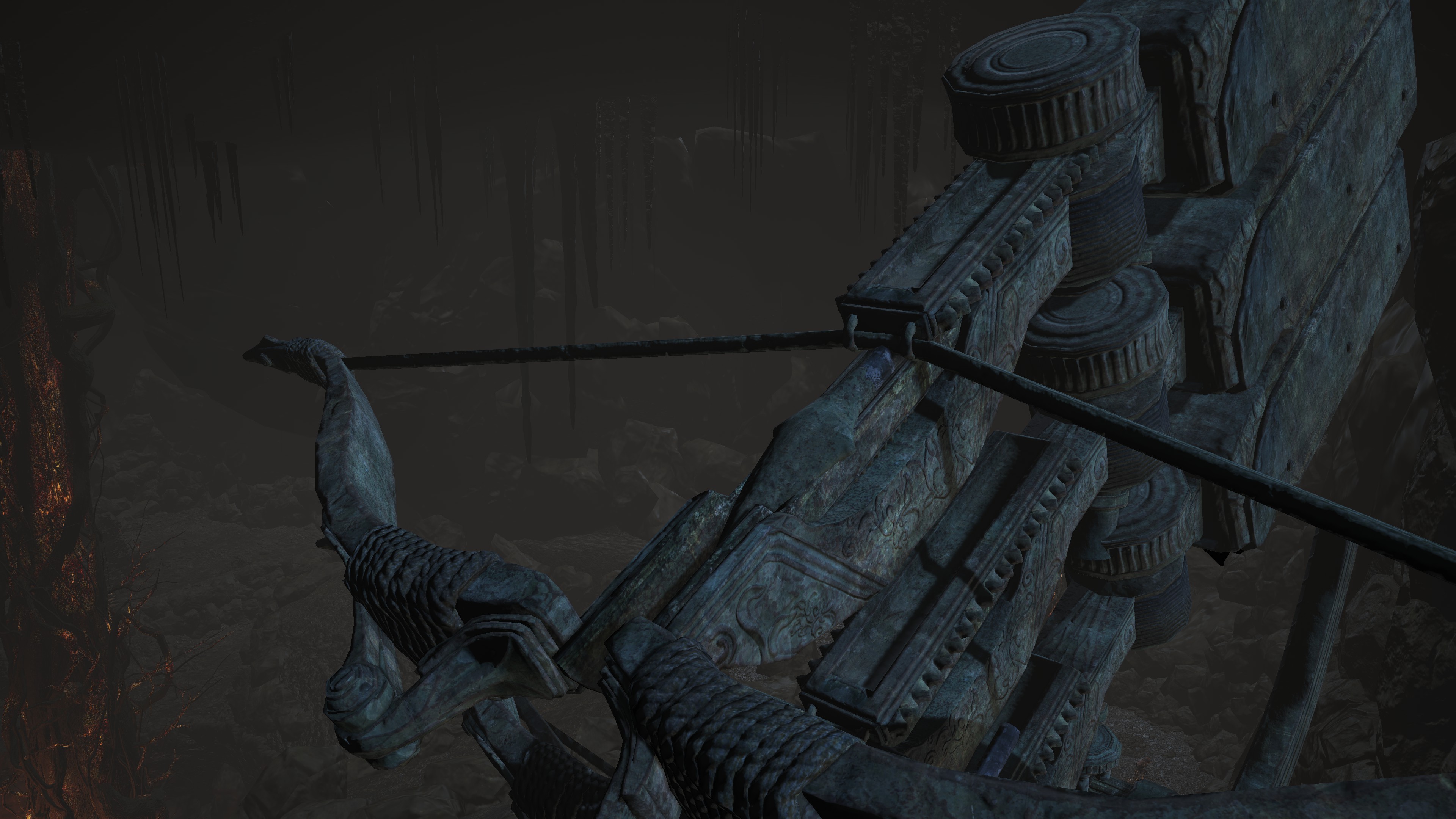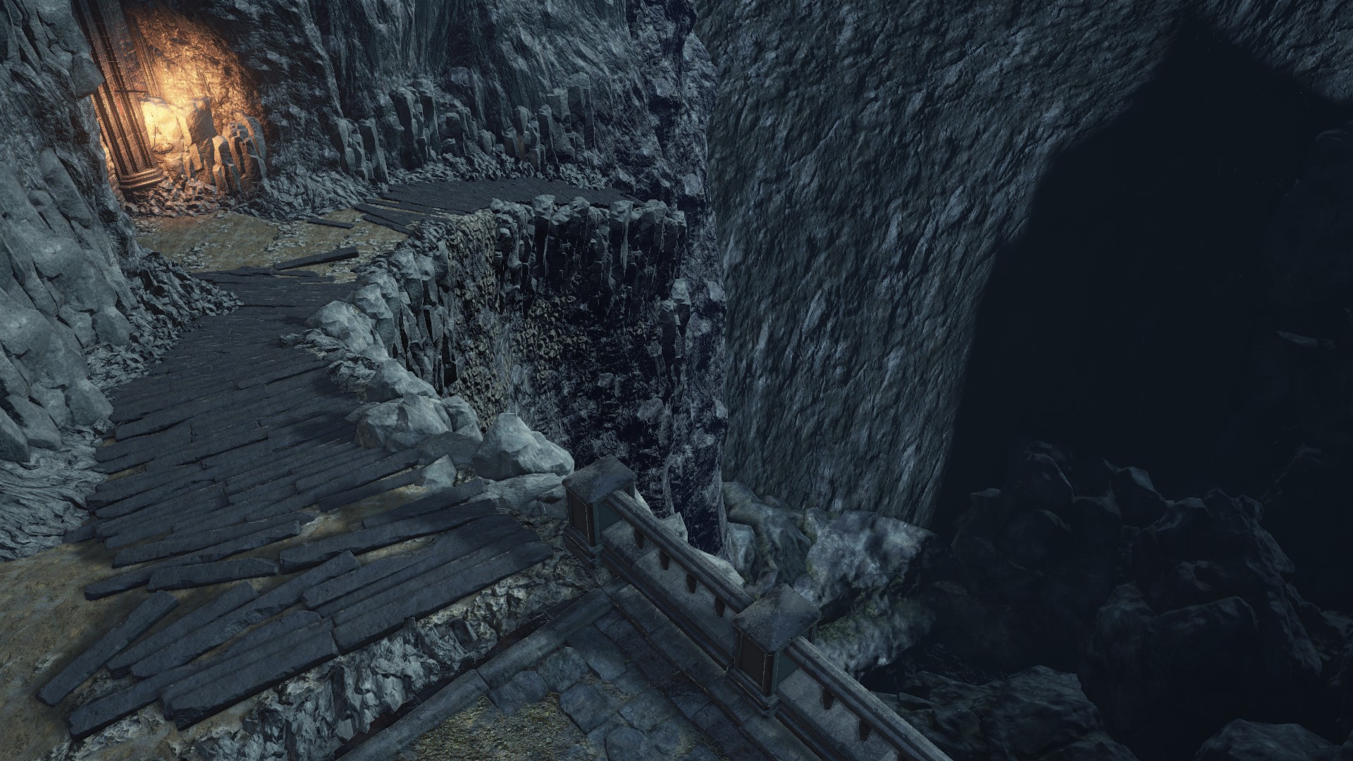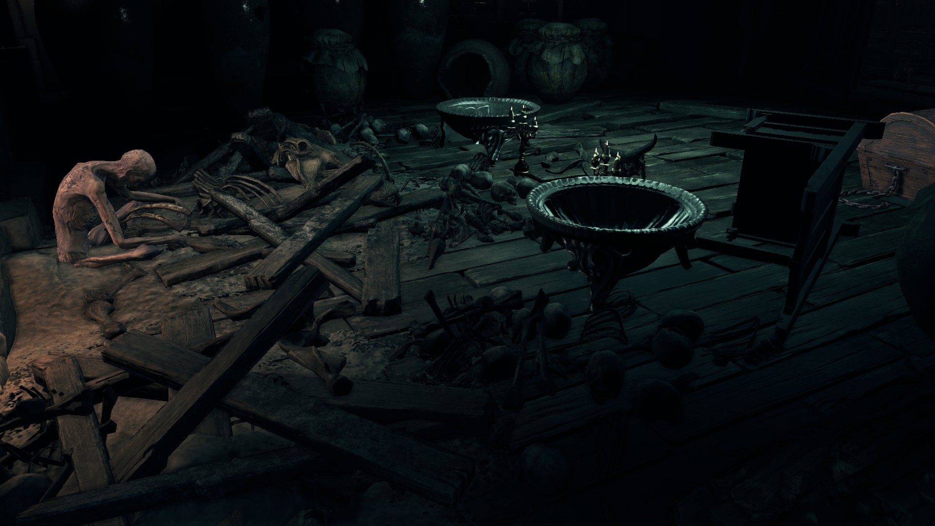 When exploring Smouldering Lake, we find the vast majority of the chaos demons dead. They were recently massacred, and the culprits are easy to identify. On one end of the area, various archtrees try to regrow from suspiciously cut stumps, no debris in sight. This clears the way for an automated ballista to shoot at us from the clifftop. From that vantage, we can find corpses of the giant slaves who once maintained it and spot Irithyll Dungeon through a hole in the cavern’s ceiling behind them. While looking at the hole from the opposite side only reveals darkness, we can assume that the areas were once connected by the staircase leading to the dungeon from the Deserted Manor. Were the stairs not broken, their projected path along the cliff past the dungeon would eventually lead to that same spot. In other words, access to Smouldering Lake from Irithyll was removed after the giants came down and installed the ballista. Pontiff Sulyvahn has clearly mobilized against the chaos demons, and he wasn’t alone.