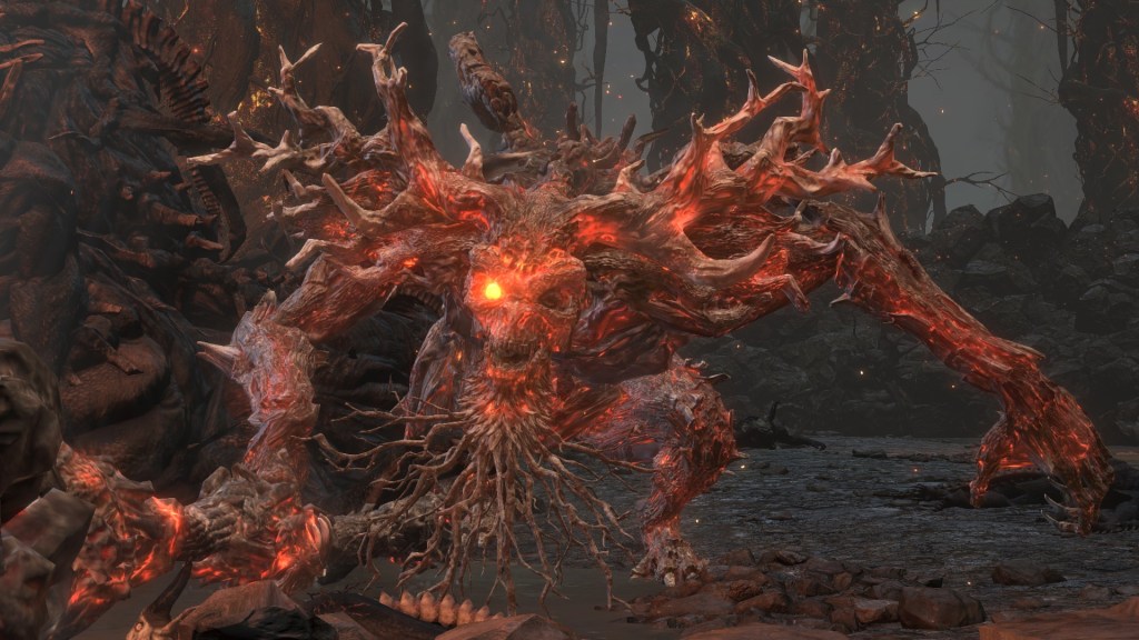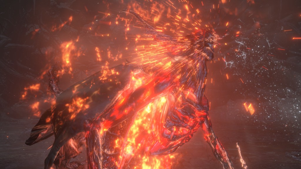 Izalith is my favorite part of Dark Souls (DS1) lore, so there are certainly elements I enjoy in Dark Souls III. (DS3) And while much of it does simply reiterate statements and implications from the original game, there is a fair amount of new content here as well. In fact, you can argue that the latest game in the series has completed the character arcs of the entire civilization, from its demon subjects to its chaos witches. These developments elevate the material from DS1 and do well to integrate the occasional redundant reference into a greater whole. This includes streamlining questionable decisions made concerning Izalith in Dark Souls II (DS2) into a larger narrative concerning the geopolitics of the setting. Admittedly, the attempt to use the chaos demons as a foil for humans in the setting made it hard to keep engaged with some of these more reiterative elements in the game’s themes. But overall, this sometimes mundane continuation of a past civilization’s story contains enough nuance to be worth telling.