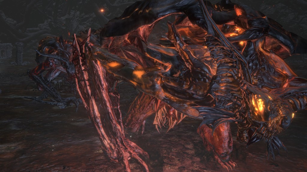 In that case, why would the chaos demons be concerned? There are plenty of vestiges of chaos fire dispersed amongst them and across the land they call home. This is exemplified by the chaos gem, which came from newborn chaos fire crystallizing upon contact with titanite as it first ravaged Izalith. Just by looking at the embers littering the very air we find both of these in, there should be no shortage of fire power. And even if split off into pieces, the power of Chaos can still generate life, like when the Chaos in DS1’s Orange Charred Ring spawned the Centipede Demon. Even if they lost the actual Flame of Chaos, wouldn’t there still be more than enough chaos fire to go around? Perhaps not. The only examples of chaos fire spawning life come from a female bearer acting as a seedbed and said ring. Otherwise, the Flame of Chaos only twisted existing lifeforms. Even the Orange Charred Ring only sparks the one new life, and only as a result of its chaos power reacting to an existing soul overflowing with such fire. It was an entirely unique scenario.