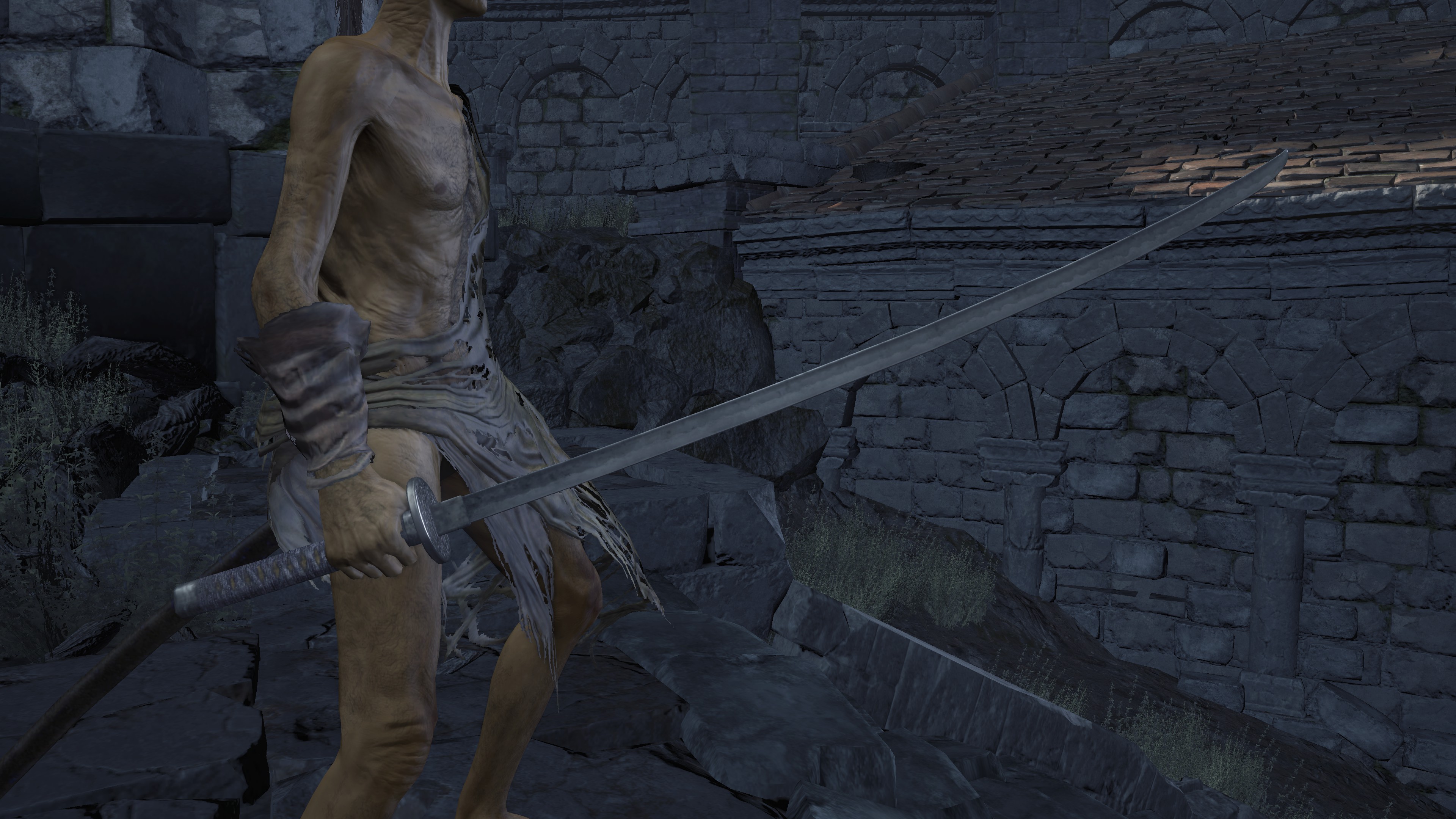 It should come as no surprise, then, that he has become known as a “knight hunter”. (騎士狩り) The Knight Slayer’s Ring was named the Ivory Warrior Ring in DS2. According to its description, Tsorig collected this ring from the knights of Eleum Loyce it originally belonged to, stealing one from each along with their fingers. This implies that the Knight Slayer earned his title brutally killing these knights in Drangleic, hence the fear associated with his name. It may be the only example of him actually hunting knights. Although he wields the Fume Ultra Greatsword from Raime in DS2’s Crown of the Old Iron King DLC, the weapon’s description betrays its past. The sword’s relationship with the traitorous knight who acquired it in service to another Dark spawn is known. And yet, it still found no owner after him due to the incredible weight of the black slab of rock comprising its “blade” and was forgotten by history. Essentially, Raime died long before Tsorig came along with the strength to pick up this ridiculously heavy sword.