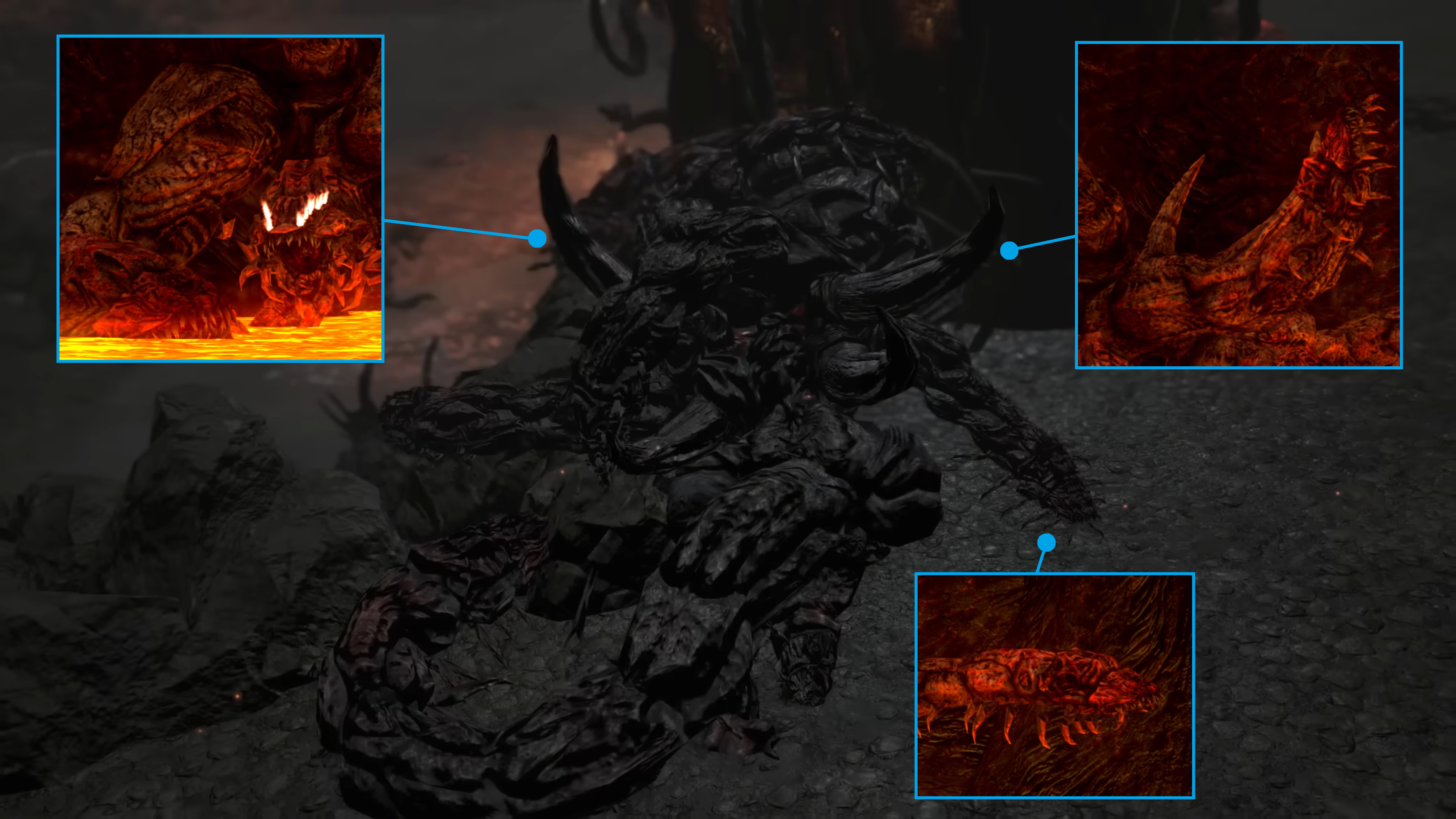 Granted, the Centipede Demon itself proves to not be so unique. Five such demons lie amongst the corpse pile of familiar faces from DS1 in the Old Demon King’s boss room, some more obscured at the fringes than others. Even if we assume that the creature’s battle with the Chosen Undead didn’t occur — which was possible under certain criteria — that still wouldn’t account for the other four. Admittedly, that potentially optional boss never provided a boss soul upon defeat, as its being was diffused across its entire, highly-regenerative body. Cutting off its individual heads likewise allowed each to operate independently, and if the body could regenerate the heads, then the heads could theoretically also regenerate the body. In other words, remnants of the boss may have survived any encounter and eventually reconstituted five separate Centipede Demons. But even if true, it is still exceptional. No other demon, chaos or otherwise, can replicate these qualities, because it required a tremendous amount of Chaos in incredibly specific circumstances to do in the first place.