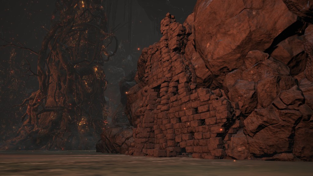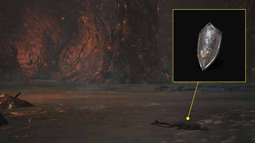 Among the corpses laying around Smouldering Lake, we can loot the Dragonrider Bow and Shield of Want. Both armaments are related to Drangleic, but the country was already in ruins even in Dark Souls II. The shield in particular has lost its black coat of paint in the years since, the face well-worn and battle-scarred. It isn’t a replica like the Kite Shield, since the residual craving of its prior owner, King Vendrick, smolders within; the exposed orange stains netting wielders more souls from slain foes. And if it is the genuine shield of that fire-like soul, then someone took that old relic into many a battle before ending up in Lothric. In that case, the bow and shield most likely belong to the mercenaries who have a penchant for collecting such items — though surprising that one would actually employ a shield. Further supporting this link, another corpse carries the Speckled Stoneplate Ring provided to knights on endless journeys. That comports perfectly with a Drang knight roaming the world, needing to prepare against all manner of threats as a sellsword. No other party justifies this assortment of items.