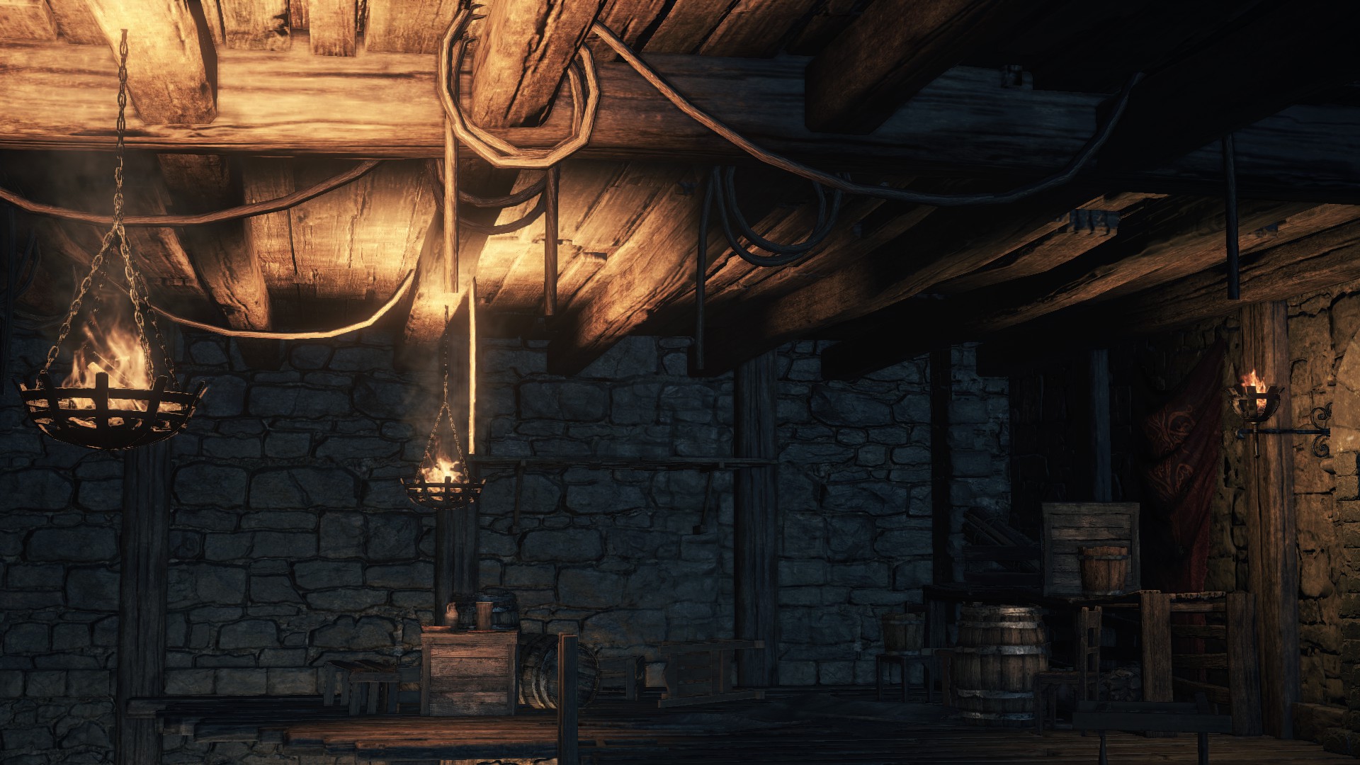 While the knight’s may have received the lion’s share of the attention, this didn’t mean that the kingdom neglected the rest of the army. Instead of dragons, they were provided dogs, though we only see them used to chase down intruders on the city walls. The soldiers also commonly come equipped with firebombs, the black powder used to make them seemingly contained in the numerous explosive barrels found in army storage — the material is presumably also responsible for their crossbows’ fire bolts. On that subject, the castle has still been producing new kinds of ammunition for the troops. Splintering and exploding bolts are experimental inventions of Edmond, a craftsman for the royal government based on the shrine handmaid deriving them from Greirat’s ashes following the thief’s failed pillage of Lothric Castle. This weapons developer innovated for the general army’s benefit, the kingdom wanting their overall military edge constant.