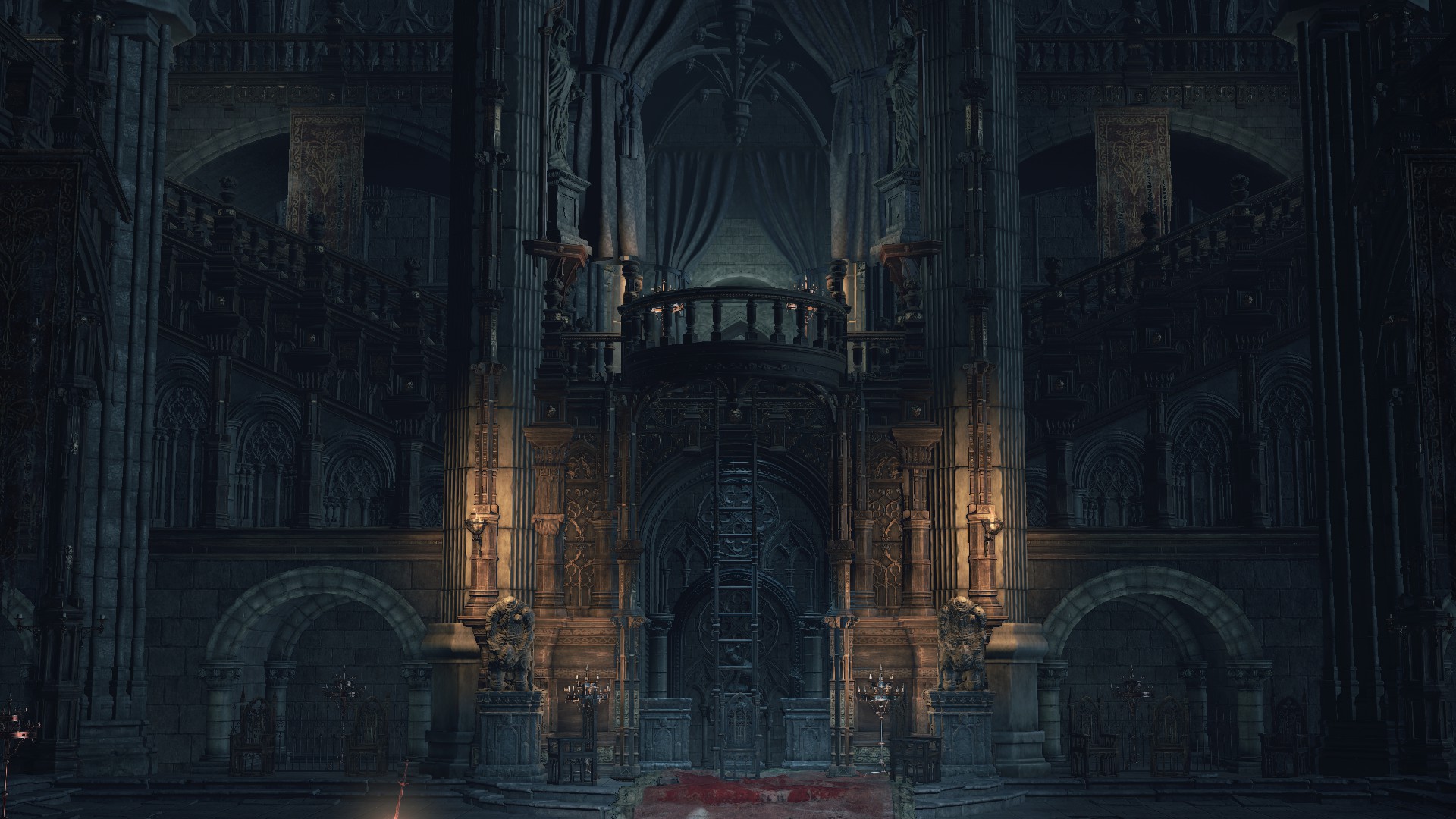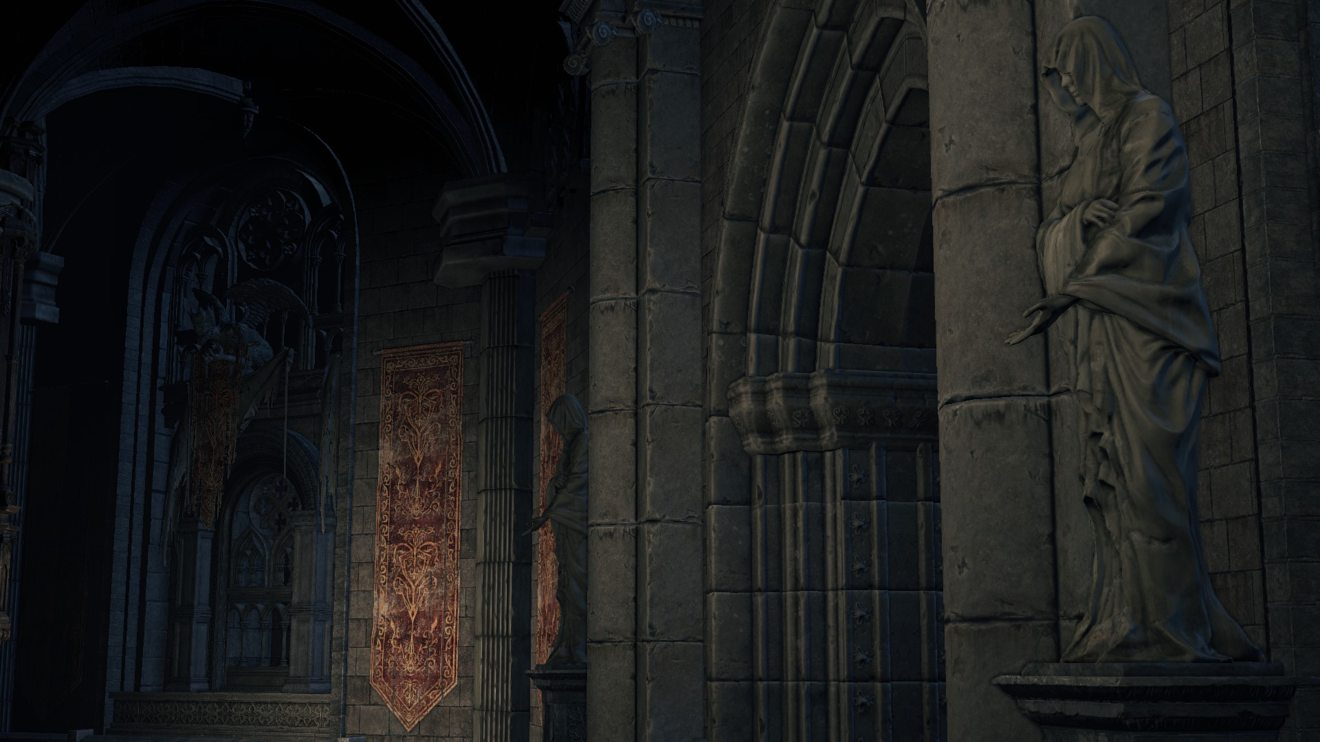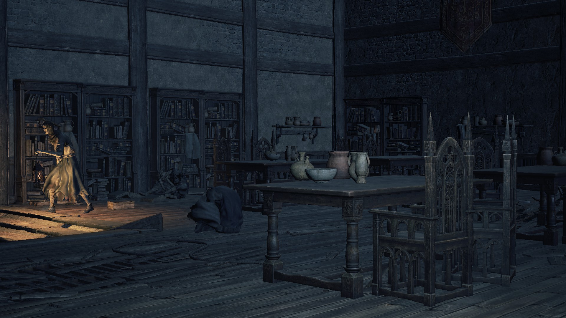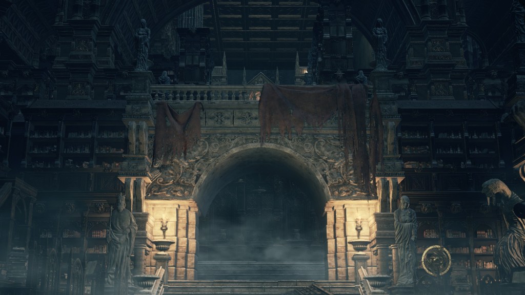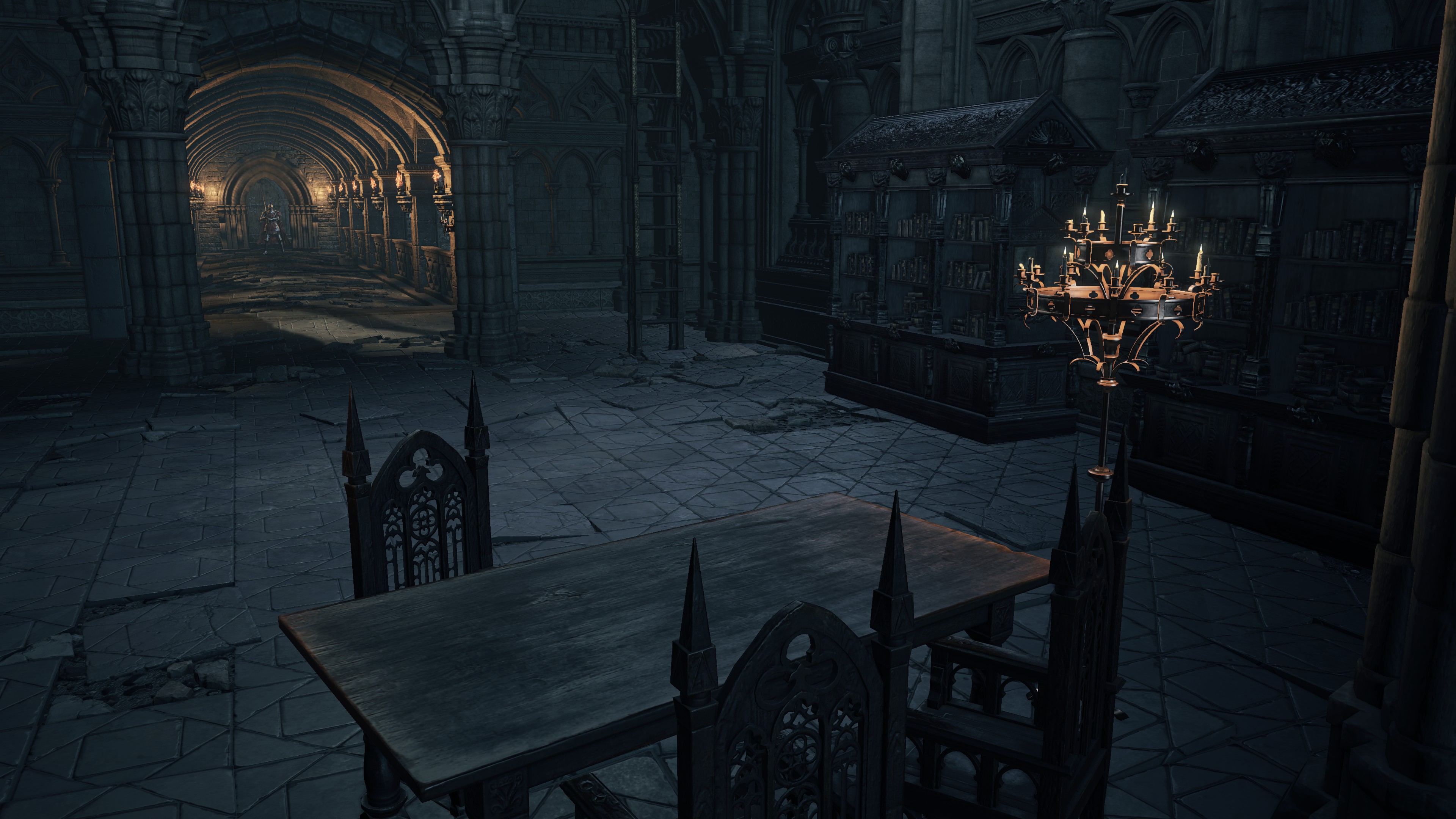 Since the knights strengthened their ties with the ritual chiefs in response to the scholars acquiring the Grand Archives, Lothric Castle was built with the two Pillars’ facilities intertwined. The priests performed final rites for knights entombed at the back of the church or training grounds, elaborate quarters for the High Priestesses spanning between them. Both Pillars have thus intermingled to their mutual benefit from the start. Considering that a shrine to the firstborn immediately precedes the knights’ fancy library, its books probably concerned things like the country’s political and religious history, each text specifically handpicked by the priesthood. By restricting their education to such topics, the High Priestesses could promote their sensibilities and virtues, thereby fostering a sense of national pride and religious fervor in the kingdom’s military arm. This is likely the reason for also locating the Altar of Sunlight at the exit, subtly nudging knights into devoting themselves to the covenant of their heritage they just read about — from the sunlight medals all in the castle carry, it worked.
