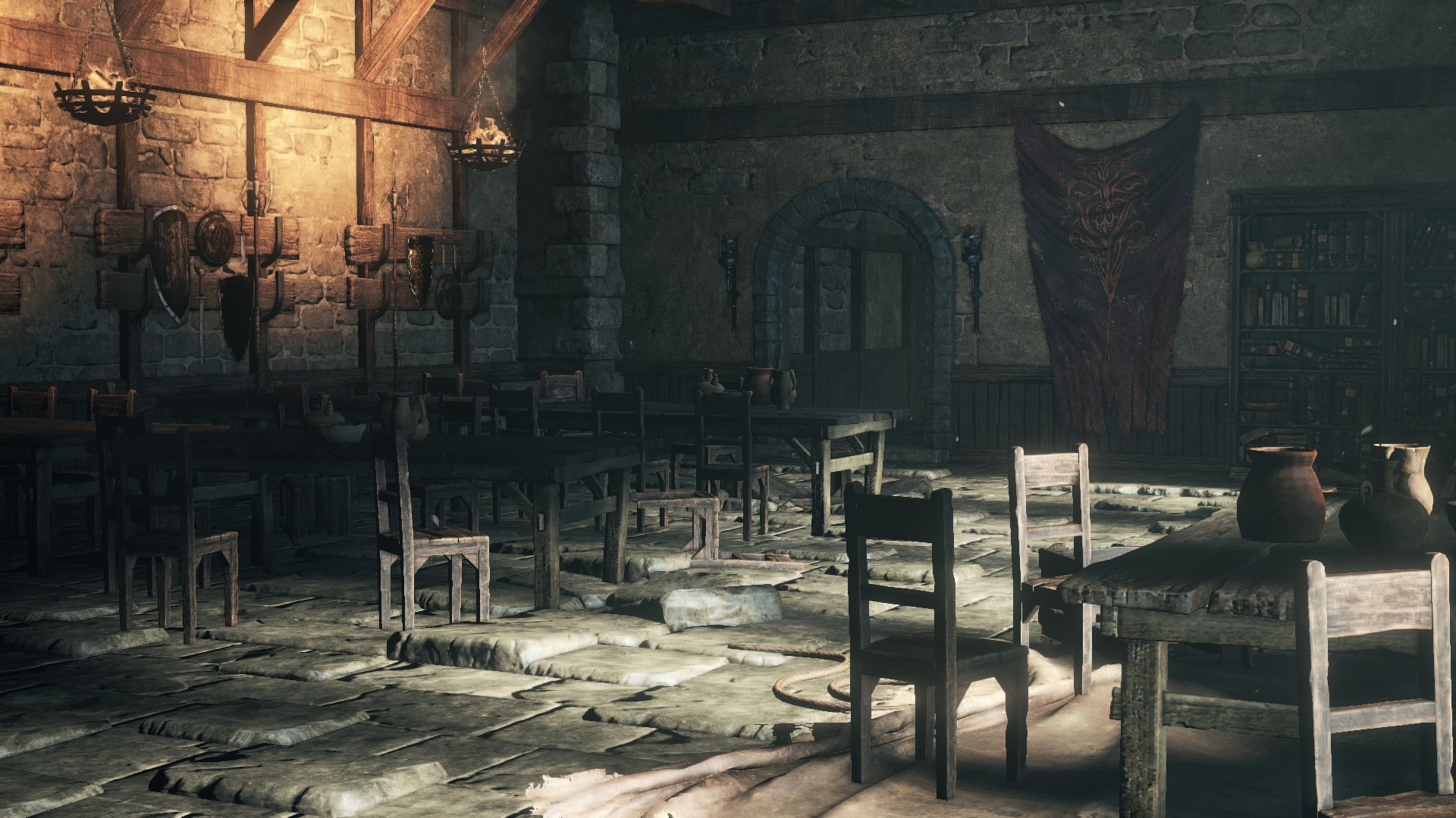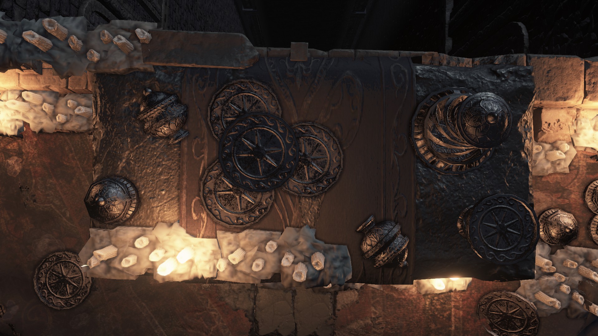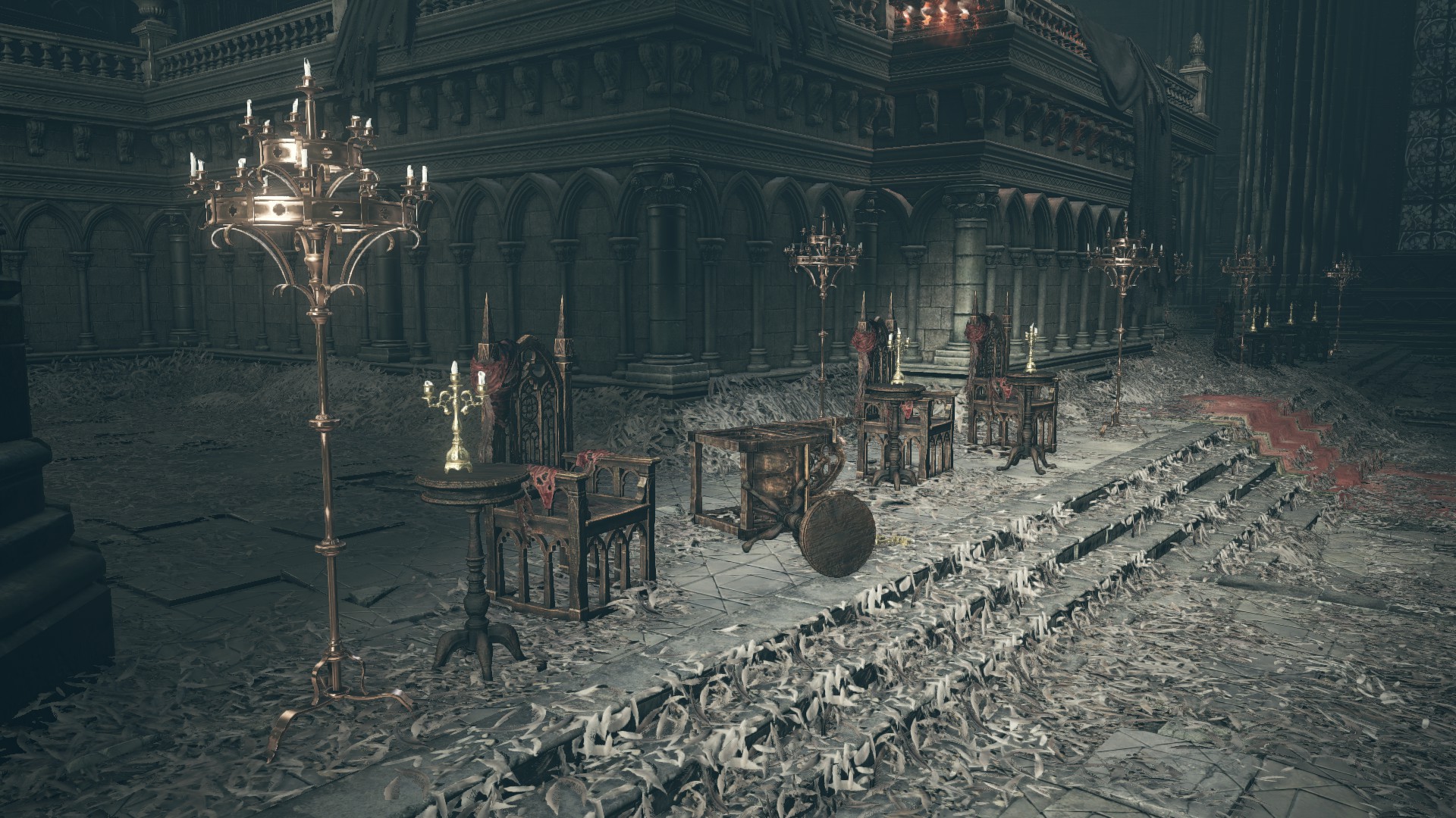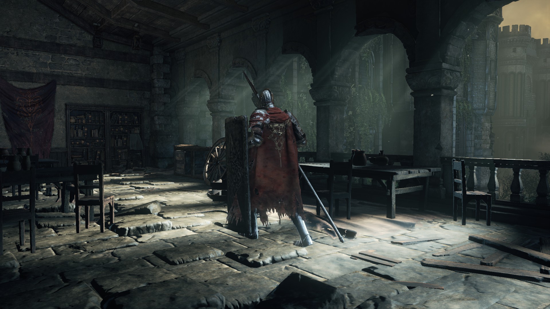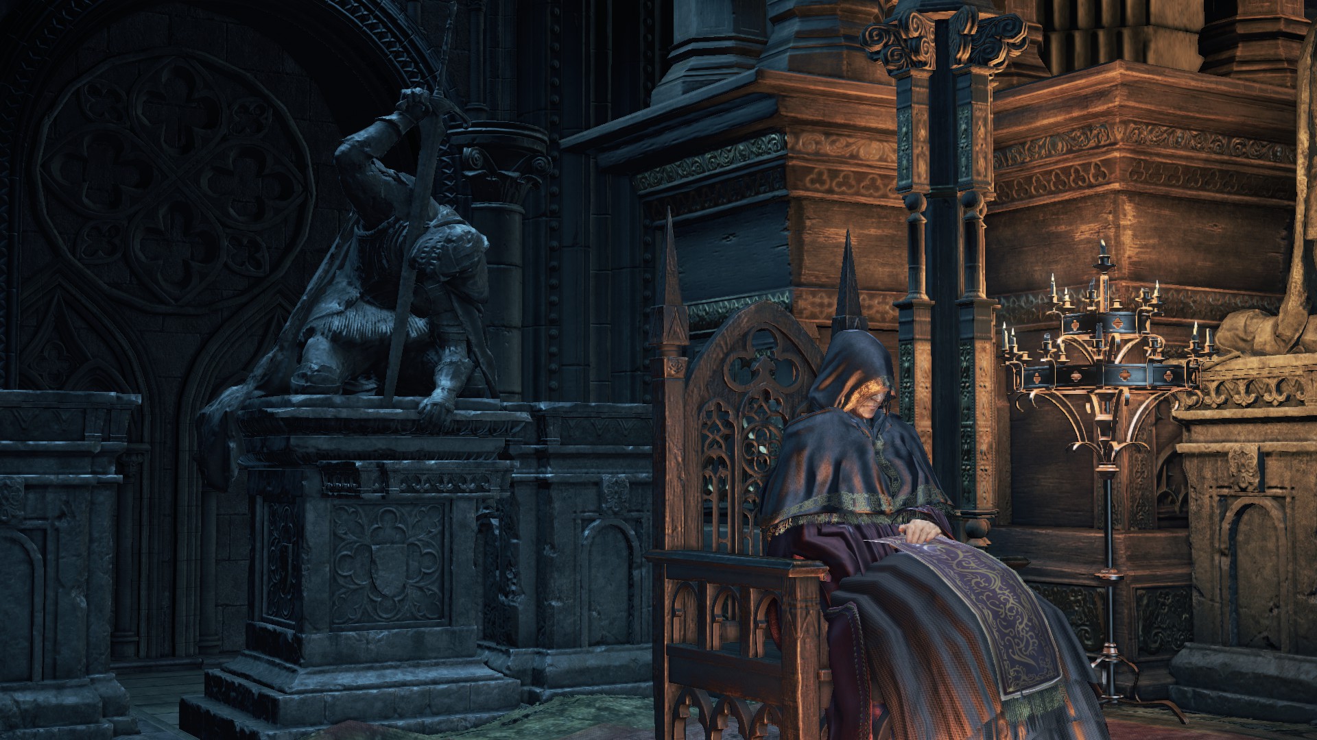 Since the knights strengthened their ties with the ritual chiefs in response to the scholars acquiring the Grand Archives, Lothric Castle was built with the two Pillars’ facilities intertwined. The priests performed final rites for knights entombed at the back of the church or training grounds, elaborate quarters for the High Priestesses spanning between them. Both Pillars have thus intermingled to their mutual benefit from the start. Considering that a shrine to the firstborn immediately precedes the knights’ fancy library, its books probably concerned things like the country’s political and religious history, each text specifically handpicked by the priesthood. By restricting their education to such topics, the High Priestesses could promote their sensibilities and virtues, thereby fostering a sense of national pride and religious fervor in the kingdom’s military arm. This is likely the reason for also locating the Altar of Sunlight at the exit, subtly nudging knights into devoting themselves to the covenant of their heritage they just read about — from the sunlight medals all in the castle carry, it worked.