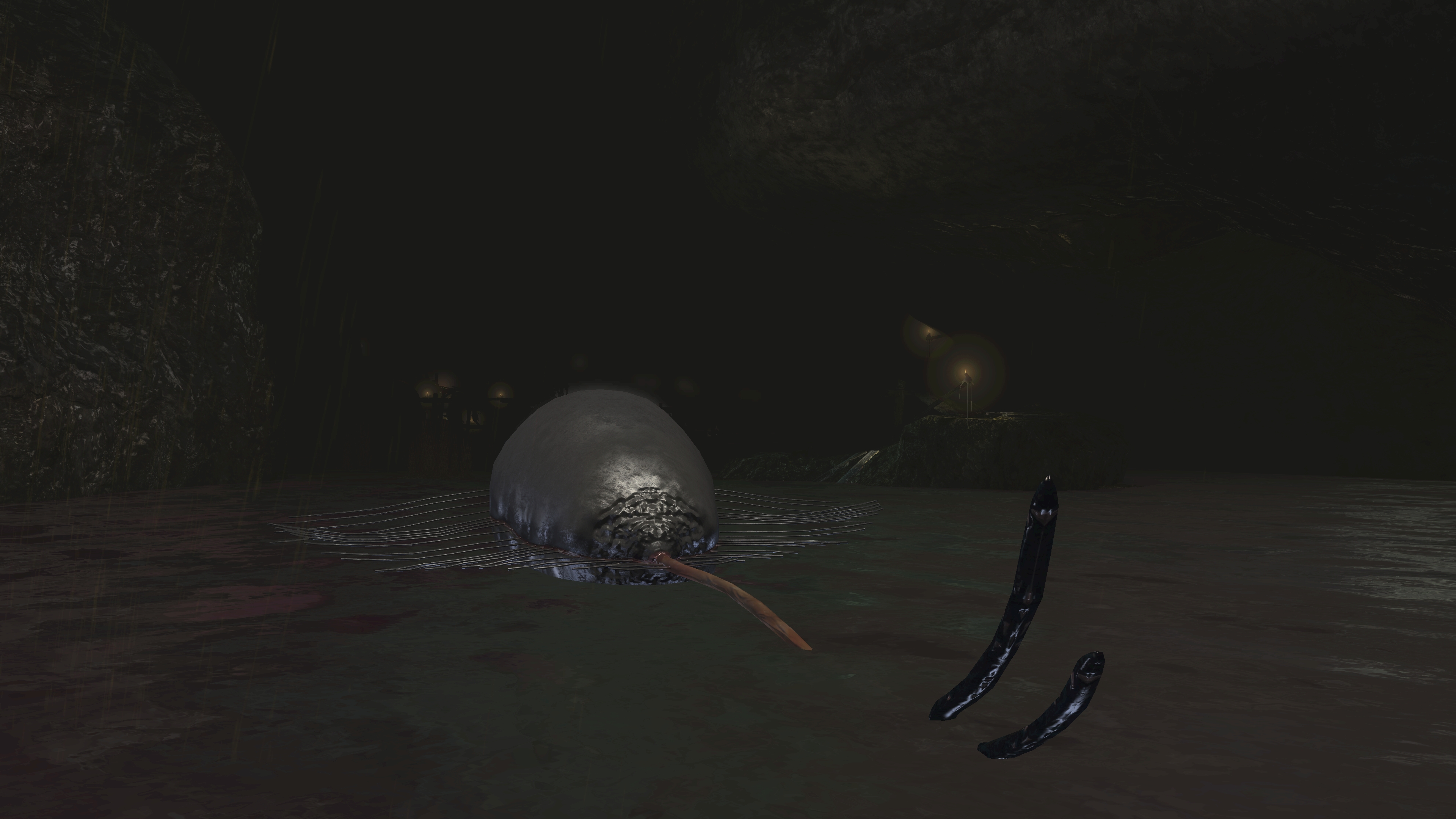 Like its Creator, the Old One may not be bound by the same rules governing living things in this world, which likely also holds true for its demons. Despite the tremendous amount of souls it has amassed, the beast doesn’t exhibit particular intelligence. The hierarchical scheme to collecting souls is ultimately simple, and the demon is easily baited into taking us to its core, never considering that we might be attempting to put it to sleep rather than join its cause. The beast undeniably shares some link with the demons its creates, since it immediately cries for more once they are all gone. And even assuming that it didn’t know who exactly was slaying all of its demons, any being with a modicum of intellect — or at least sense of self-preservation — would be guarded against our convenient arrival. The Old One is undeniably conscious since it can be rendered unconscious, but what constitutes its simple mind must exist independent of the countless souls it harbors. The poison fulfills its singular goal in the most straightforward and efficient means possible, and that is that.
