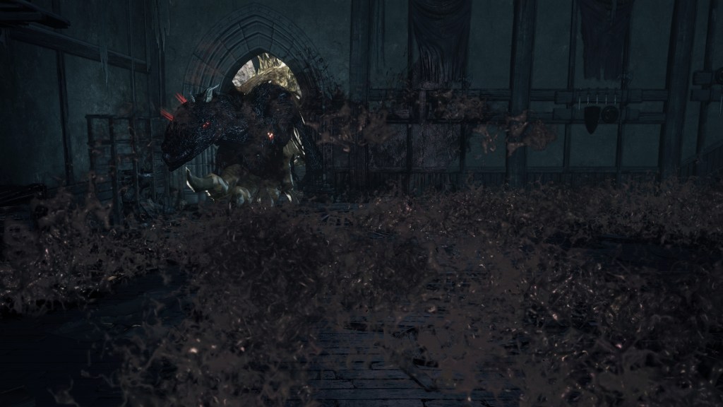 In short, the pus is another symptom of the universe’s stagnation, much like the Dark’s dendrification — explaining why we haven’t seen this particular variant of the Abyss in previous titles. Long has the consequence of fire’s light waited, slowly festering within man generation after generation. And as its power gains with fire’s wane, it all just bursts forth at once in a form so alien and yet so familiar. But if we are to imagine the stagnating Dark as symptoms of an infection, then it proves treatable. Nothing good comes from pus buildup; it must be drained out, one way or another. Like any Abyss, the pus of man fears the return of flame, perhaps especially so given its time spent in limbo. But no matter how we make it exit the body, this cleansing only targets the symptoms. The world’s disease continues to run its course, without a simple cure.