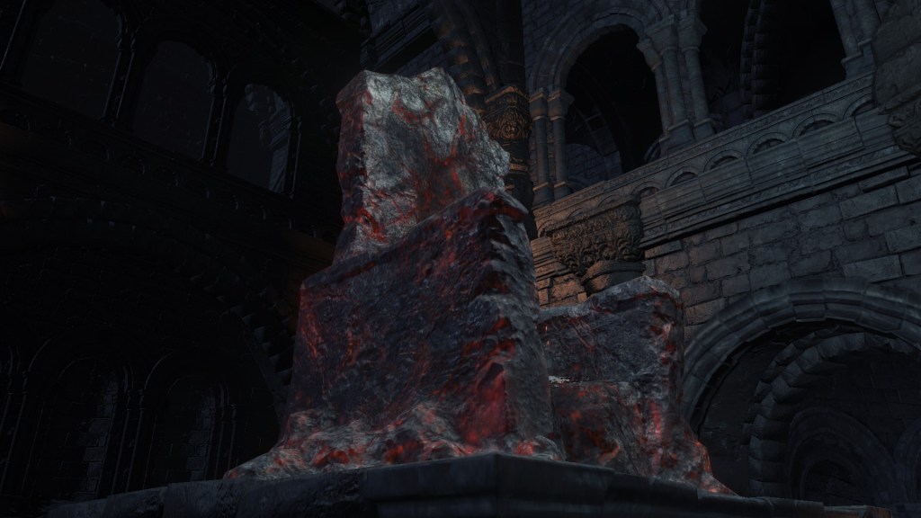 While the English inscription on his throne in Firelink Shrine reads “Holy King Lothric”, it more accurately translates to Holy King of Lothric. (ロスリックの聖王) This emphasis on the kingdom and royalty from which the prince hails betrays the underlying intention behind his name. Prince Lothric wasn’t named to be an individual but to convey an idea: he represented his country, more specifically the Lothric Royal Family. This is evident by how he addresses himself in Japanese dialogue. After initially speaking in first-person, the younger brother immediately shifts his language to third-person, downplaying his individuality in favor of what he represents as a prince for his country and family. For all intents and purposes, there was no him. That would explain why his throne alone lacks any personal touch, the stone appearing only very old and charred with embers. At the center of the pack, the seat stood not for comfort, but to seat a King of Kindling and nothing else.