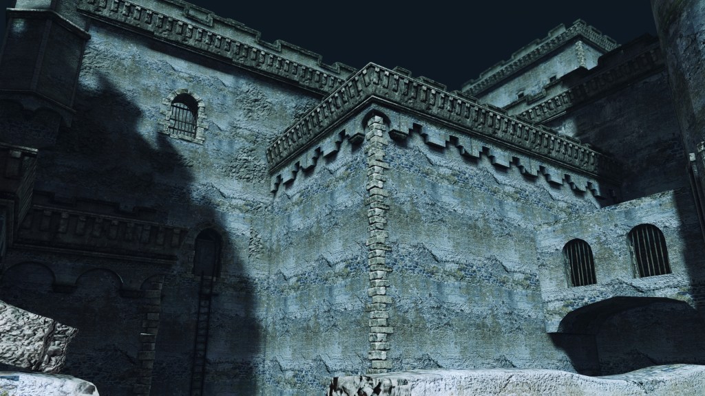 In that case, we can learn much about Olaphis from what it left behind there. Straid confirms that many countries preceded his, but assuming that the nation’s founders had constructed the fortifications, it is among the older civilizations in Drangleic. The Blossom Kite Shield left in Sinner’s Rise depicts a now extinct species of flower, its fleeting beauty nonetheless soothing the bearer and thereby boosted the defender’s endurance against enemy assault. The castle was thus well defended and witness to major changes in the ecology, as expected of an ancient government center. No matter how unrecognizable the land of ages past was, however, the facility must postdate the fall of Heide still, a lone Heide knight loitering in his prison cell to this day. Already, these details establish the curiosity of Olaphis, wanting to learn about the world around them both past and present. Was this because they were descendants of native Heidens, hoping to reclaim their legacy, or maybe outsiders, fascinated with the mystery of their new home? In either case, they had good reason to protect themselves behind castle walls.