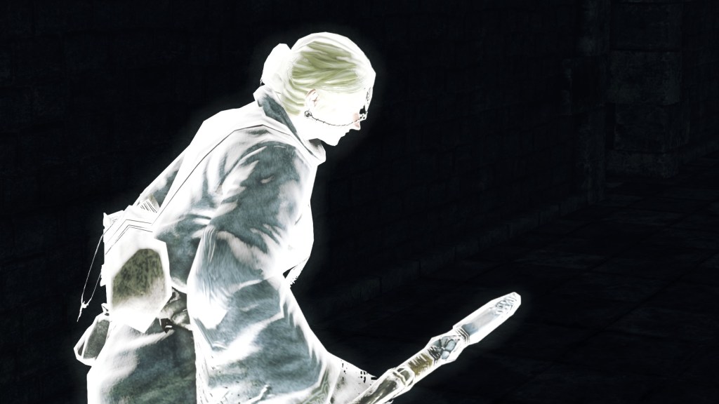Despite the filth from years of neglect, one of the statues in storage is clearly the same that lined the passage to Anor Londo’s archives in DS1. In other words, the part of the divine capital uncovered at the bastille might have included remnants of the gods’ library, which Seath had taken over until the Chosen Undead slew him during the previous game’s events. We are able to obtain the trident wielded by the white dragon god’s evangelists in DS1, but they had been spreading their gospel all around Lordran, not just at the Duke’s Archives. The same cannot be said for the enchanted falcion we find elsewhere in the prison, an exact sword previously acquired from the gods’ library. The Japanese description for Freja’s soul confirms that Seath’s works are sprinkled across lands like Tseldora, thanks to the Great Shift. If the founder of sorcery’s works were among the remnants of Anor Londo’s library, then Olaphis had every incentive to develop in that direction, and their technological advancement proves that this magical fixation paid dividends.