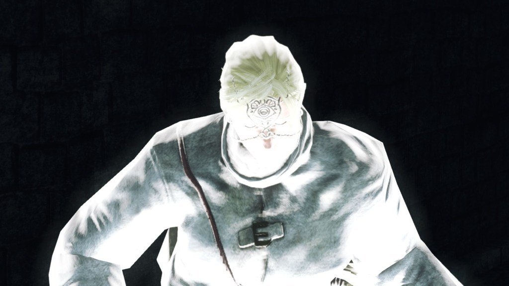As the final nail in the coffin, there is Bellclaire. This woman is called a pilgrim and wields the Priest’s Chime indicating some connection to clergy, yet she doesn’t cast any miracles. Instead, she uses the Staff of Amana to conjure a specific brand of sorceries: Soul Spear, Crystal Soul Spear, Great Soul Arrow, and — most importantly — Homing Soul Arrow. Moreover, she wears the white robes of Drangleic sorcerers despite being a woman. Is it because she is far removed from Drangleic culture, like Straid, or does she have an especially strong affinity with Seath? We do encounter the pilgrim earliest at the Lost Bastille, only offering her summon sign again later at Drangleic Castle — as we invariably make our way to the Shrine of Amana. This is especially suspect when the pilgrim wears the Lion Warrior Helm, the tribalistic chain headpiece featuring an eye on the forehead invoking the mind’s eye. With that added sense of primitive spiritual enlightenment, the sorcerer’s identity couldn’t be any plainer.