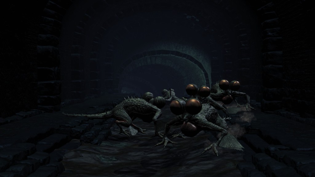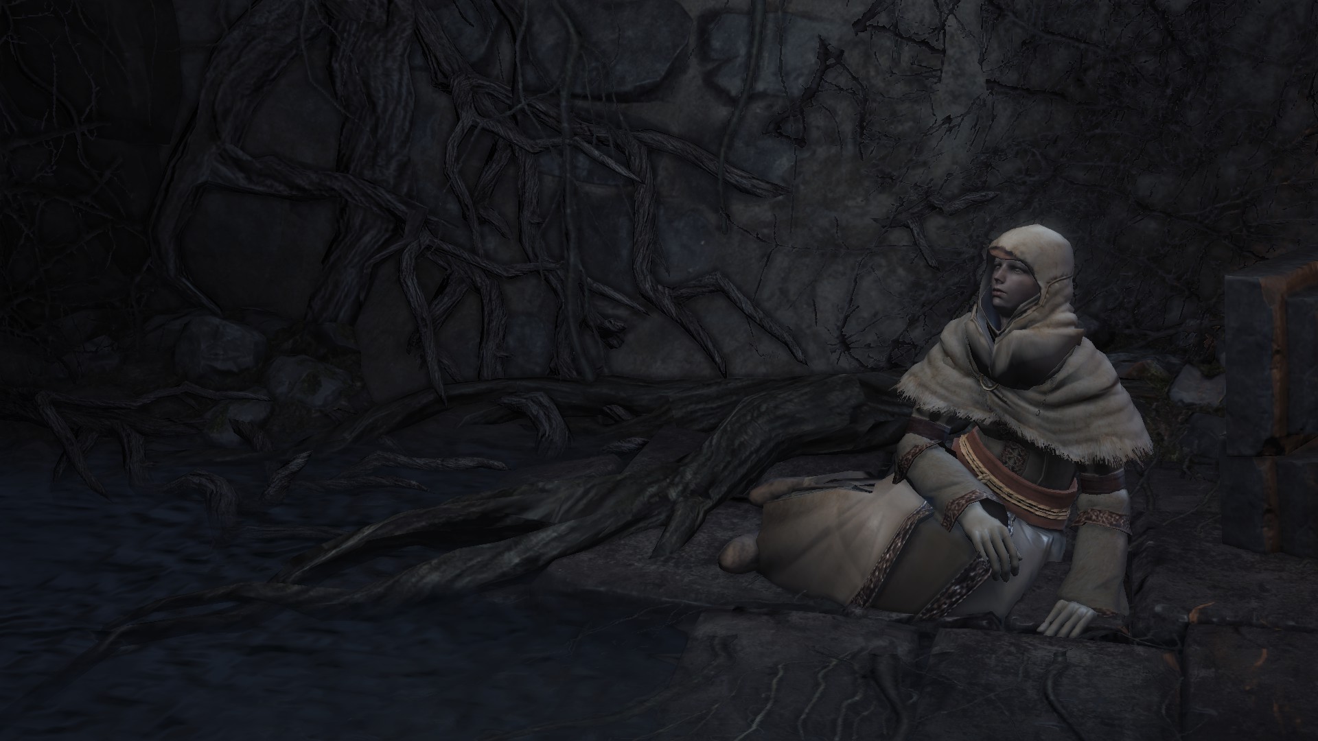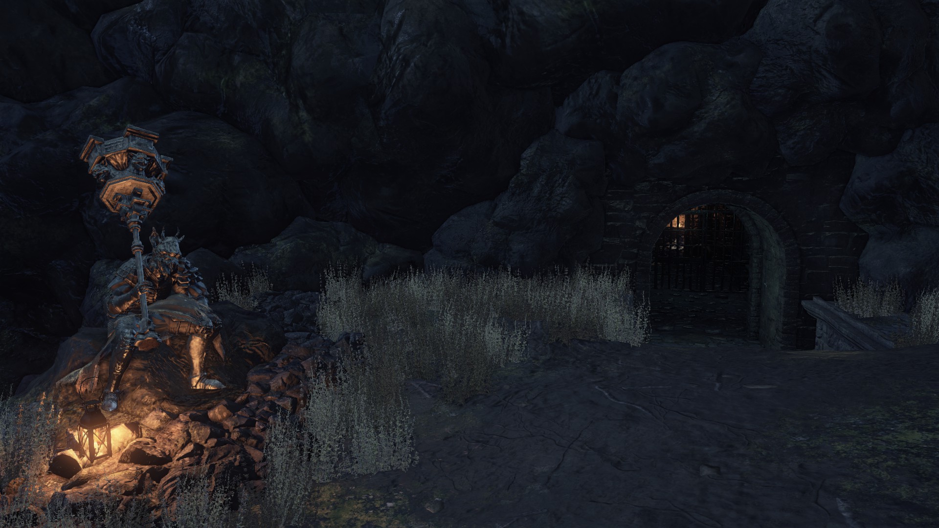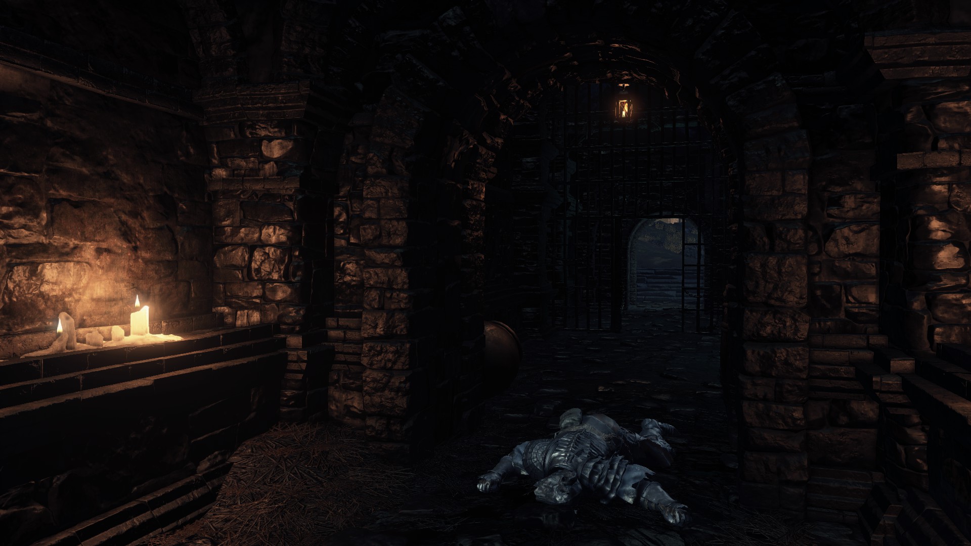 Lying dead in the stream just outside Irithyll is a body with a Ring of Sacrifice, suggesting that one of Velka’s followers recently attempted to infiltrate the city — the surrounding sewer centipedes show how that turned out. Another seems to have had more success. In the sewers of Irithyll Dungeon hides two chests. One contains the key to open the older prison cells; the other is a mimic carrying the Dark Clutch Ring. This location implies that the owner really didn’t want anyone in the dungeon to know about it. Why? The ring increases the power of Dark attacks at the expense of Dark defense, indicating the the owner employs such power. Moreover, the crow foot-shaped item was associated with Velka in DS2. Taken together, and the owner of these chests is likely another servant to the Goddess of Sin. Whatever his plans for nabbing the Old Cell Key, his hiding place was evidently never discovered. Still, the corpse lying face down in the nearby sewage with the Soul of a Weary Warrior suggest that he too might have met his end at the hands of the rats or basilisks infesting the area.
