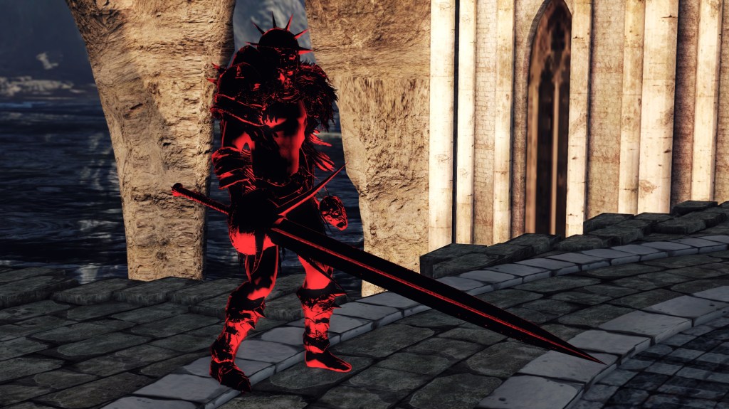 Despite this major departure from the knights of New Londo, the Brotherhood’s dedication to the darker side of our human nature still puts them in bed with the Dark. Aside from their boost to soul absorption when killing, the robes of Nahr Alma’s disciples possess notable resistance to the Dark and curses — fittingly, the set’s unused name was “Dark-dispatcher” (闇送り) with connotations of sending victims along a funerary procession. Indeed, Gren wears these robes and additionally wields a Dark-imbued sickle along with hexes. There is no denying that worshiping the God of Blood bleeds over into studying the taboo Dark arts. After all, if killing your fellow man is acceptable, why not make use of his humanity? While from the opposite angle, the new covenant for invaders has arrived at the same destination as the Darkwraiths.