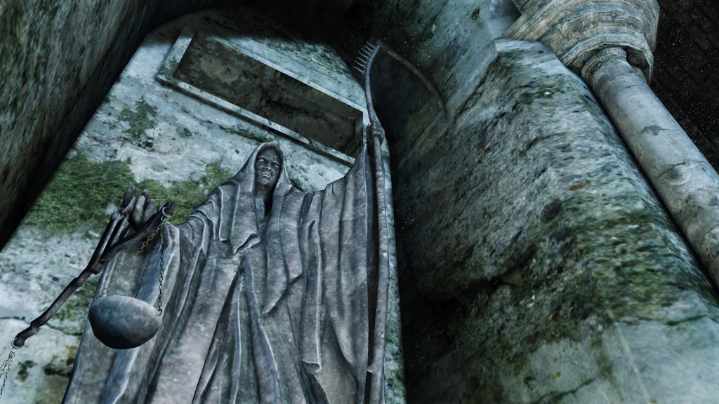 Caitha requires dead to mourn and bloodshed for tears shed. There is no god who benefits from Nahr Alma’s work more than her. Even ignoring that, the goddess’ relatively obscure wicked nature is apparently no secret to the Brotherhood of Blood adopting her bell’s power. Moreover, if she herself is simply an alias for Velka, then what is one more alternate identity? There are no doubt quite a few similarities between Nahr Alma and the Goddess of Sin. Adherents separating themselves from worldly connections? Scythes imbued with the power of magic or the Dark, both requiring intelligence to wield? Secret ceremonies involving the Dark? Festival rituals celebrating iniquity? There is an incredible overlap. The only other parallel are the pyromancies Gren sells, some related to Quelana, but this is likely more to do with fire’s connection to chaos than the gods behind the spell arts — Great Chaos Fireball is the highest reward for ascending the Brotherhood’s ranks, after all. And if there is any god with the eclectic affinity for worshipers using both Dark and flame, it is Velka. Nahr Alma thus seems less of a guise for humans to let loose with their darker passions than for the Goddess of Sin and Tears to.